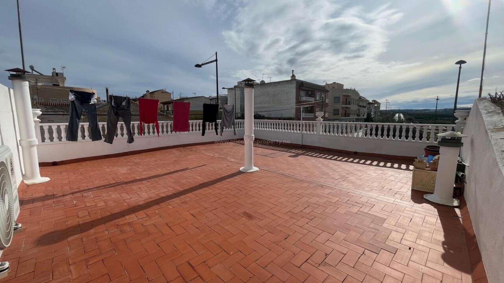 Romslig rekkehus i hjertet av Algorfa. Dette romslige rekkehuset ligger i sentrum av den sjarmerende byen Algorfa, og tilbyr sjenerøs boareal og utmerkede fasiliteter, ideelt for familier eller som et romslig feriehus. Eiendommen har fire velproporsjonerte soverom og tre bad, noe som gir komfort og fleksibilitet for større familier eller gjester. Et stort, fullt utstyrt kjøkken tilbyr god arbeidsplass og lagringsplass, perfekt for hverdagsliv og underholdning. En attraktiv indre terrasse bringer naturlig lys inn i hjemmet og skaper et privat uterom for avslapning eller bespisning. På toppen av eiendommen gir et stort takterrasse et utmerket område for soling, utendørs underholdning eller å nyte åpen utsikt over området rundt. Ytterligere funksjoner inkluderer en separat privat garasje og en egen bod, noe som gir verdifull praktisk og bekvemmelighet. Dette rekkehuset ligger i gangavstand fra lokale butikker, restauranter og fasiliteter, og kombinerer plass, beliggenhet og funksjonalitet i et av Algorfas mest sentrale og attraktive områder.