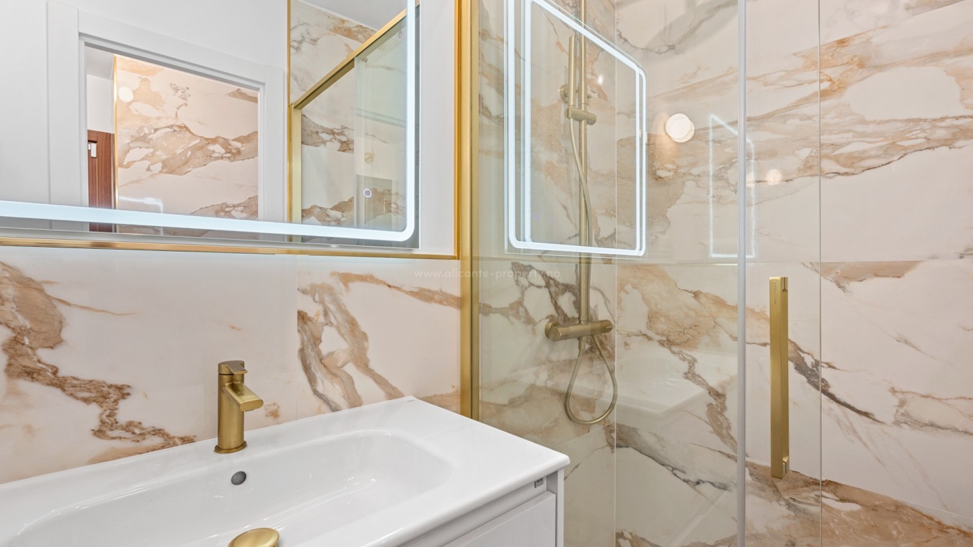 Ny mulighet på markedet: en totalrenovert hjørneleilighet i 6. etasje, bare 500 meter fra havet, beliggende i et av de mest ettertraktede og lovende områdene på Costa Blanca Sør. Et sjeldent funn på grunn av kombinasjonen av høyde, hjørneplassering, privatliv og fullstendig uhindret utsikt – funksjoner som vanligvis finnes i mye dyrere eiendommer. Åpen panoramautsikt Utsikt over Middelhavet Klare soloppganger og solnedganger Panoramautsikt over byen om natten Utsikt over fjell Utsikt over saltsjøene i Torrevieja Siden det er en hjørneleilighet i toppetasjen, tilbyr den maksimalt naturlig lys og kryssventilasjon. Alle rom har direkte tilgang til terrassen, uten innvendige uteplasser, noe som garanterer lys, en romslig følelse og privatliv. Hovedfunksjoner 70 m² bygget2 soverom1 badHjørne-topleilighet – 6. etasjeBygning med heisFelles svømmebassengLydtette panoramavinduerUtmerket lydisolasjonNylig renovert Interiør og overflater Leiligheten leveres fullt utstyrt og møblert med et moderne og funksjonelt design: DesignermøblerNatursteinselementerStorformat porselensfliserIntegrert LED-belysningInverter klimaanlegg med Wi-Fi-kontrollInduksjonstoppOppvaskmaskinDirektedrevet vaskemaskinQLED Smart-TVAlarmsystemProgrammerbar kjele Merverdi for investorer Den har en gyldig turistlisens, som kan overføres til den nye eieren, ettersom lisenser er gitt i denne bygningen. Dette er et område med høy etterspørsel for både nasjonale og internasjonale ferieboliger. Videre gjennomgår bygningen en fullstendig fasaderenovering, et prosjekt som allerede er fullt betalt, uten ytterligere vurderinger for den nye eieren. Parkering Lukket og overbygd fellesparkering innenfor boligkomplekset. Valgfri underjordisk parkeringsplass for €10 000. Klar til innflytting eller begynne å generere inntekter fra dag én!
