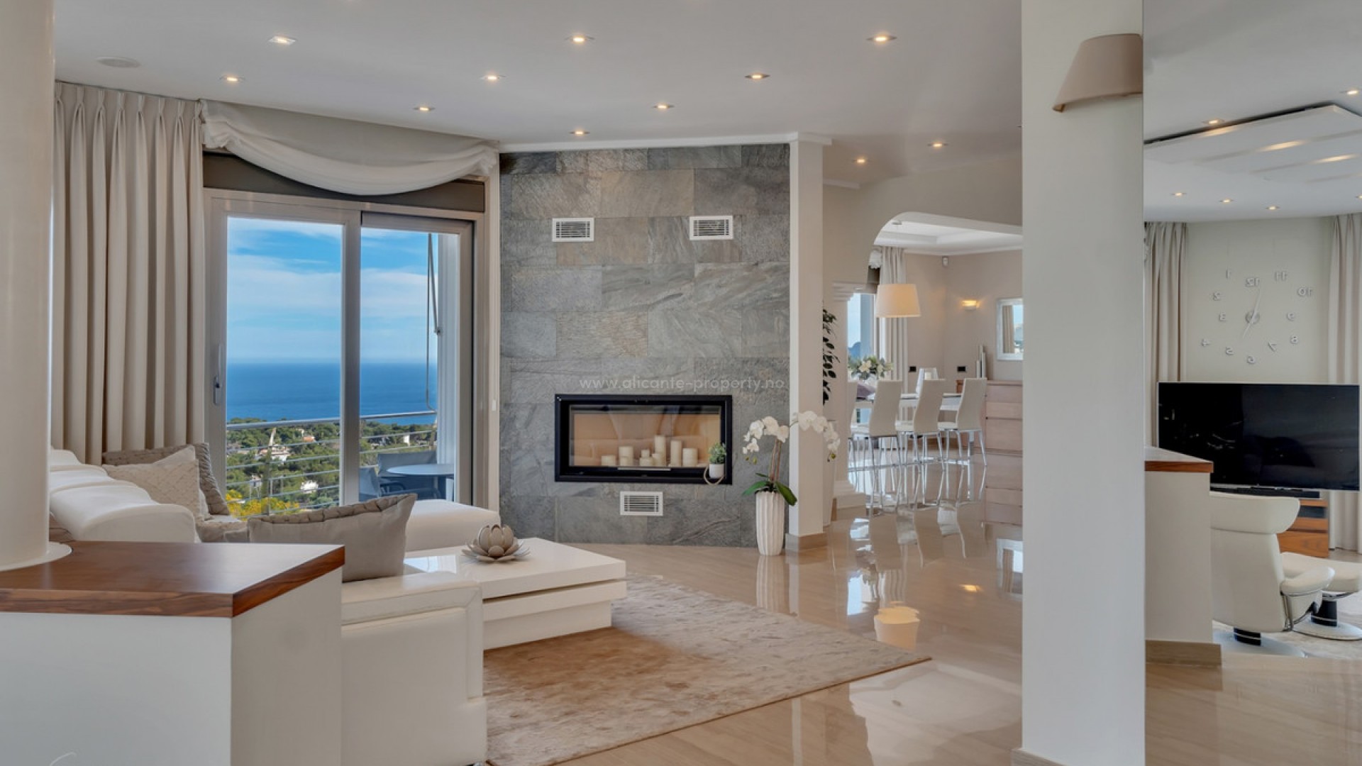 Nyt denne fantastiske luksusvillaen på Benissa-kysten, som tilbyr fantastisk havutsikt, store terrasser og førsteklasses fasiliteter. Inngangen til denne moderne villaen er via en inngjerdet innkjørsel med parkering for to biler, som fører til et romslig uteområde med et vakkert basseng, avslappende boblebad, fullt utstyrt utekjøkken med grill, gjestetoalett og utendørs dusj for enkel tilgang til bassenget. Det er også solcellepaneler. Innvendig tilbyr villaen en lys og luftig stue med to romslige stuer, en med en koselig vedovn og atmosfære med levende lys. Det moderne kjøkkenet, utstyrt med Bosch, en kjøkkenøy og skyvedører for ekstra privatliv, er knyttet til et funksjonelt vaskerom. Den åpne spisestuen tilbyr fantastisk havutsikt gjennom skyvedører til terrassen. Underetasjen inneholder også et separat bad, et gjestesoverom med tilgang til terrassen og en luksuriøs hovedsuite med garderobe, eget bad med dusjkabinett og boblebad. Ovenpå er det to flotte hovedsoverom, hvert med king-size-seng, eget bad, garderobe og direkte tilgang til store private terrasser med panoramautsikt over havet, fjellene og den ikoniske Peñón de Ifach. Rundt villaen er det fire store terrasser som tilbyr ideelle omgivelser for avslapning og ro.