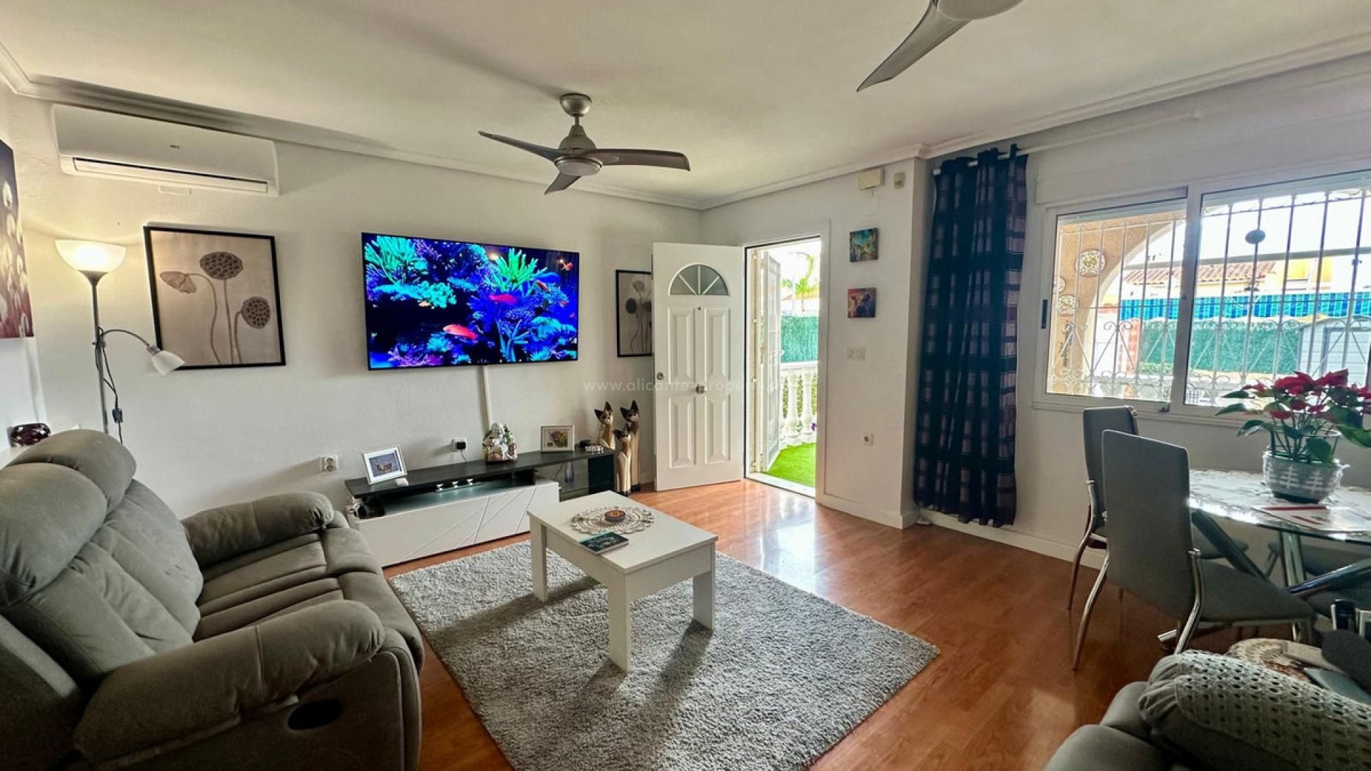 Sjarmerende og velpresentert villa i ett plan, beliggende i rolige omgivelser i den ettertraktede urbanisasjonen La Siesta. Denne sørvendte villaen med lite vedlikehold har blitt renovert innvendig til en moderne og høy standard, og er vakkert presentert. Denne boligen ligger på en svært romslig tomt og tilbyr unik tilgang fra både for- og baksiden fra rolige boliggater, med gangtilgang foran og innkjørsel bakfra. Innkjørselen gir for tiden parkering for ett stort kjøretøy, men det er mulighet for å få plass til et andre kjøretøy. Enten foran eller bak gir god plass til et privat basseng. Den flislagte hagen foran byr på høye murer og privatliv, med passasjetilgang bak og en hageport for separat inndeling. Utvendig trapp fører til takterrassen med utsikt mot Rosasjøen. En romslig overbygd terrasse gir et ideelt område for avslapning eller utendørs servering. Villaen tilbyr en stor, lys stue/spisestue med en herlig velværefaktor. Hjørnepeis med elektrisk peis med ekte flamme og fungerende pipe for valgfri ekte peis. Velutstyrt kjøkken med separat oppvaskområde og stort kjøleskap/fryser. Dørtilgang til gangen med moderne dusjkabinett med servant og separat toalett med liten håndvask. Stort og romslig hovedsoverom med innebygde garderober og terrassedør til bakhagen. Soverom med to enkeltsenger og innebygde garderober som er store nok til å kunne brukes som dobbeltseng. Ideell beliggenhet i gangavstand til et stort utvalg av barer og restauranter, og The Oasis med tilgang til basseng. Gangavstand til stort supermarked og bussholdeplasser med regelmessig avgang. Habaneras kjøpesenter og strender innen kort kjøretur. Varmt og kaldt klimaanlegg overalt. Selges møblert.