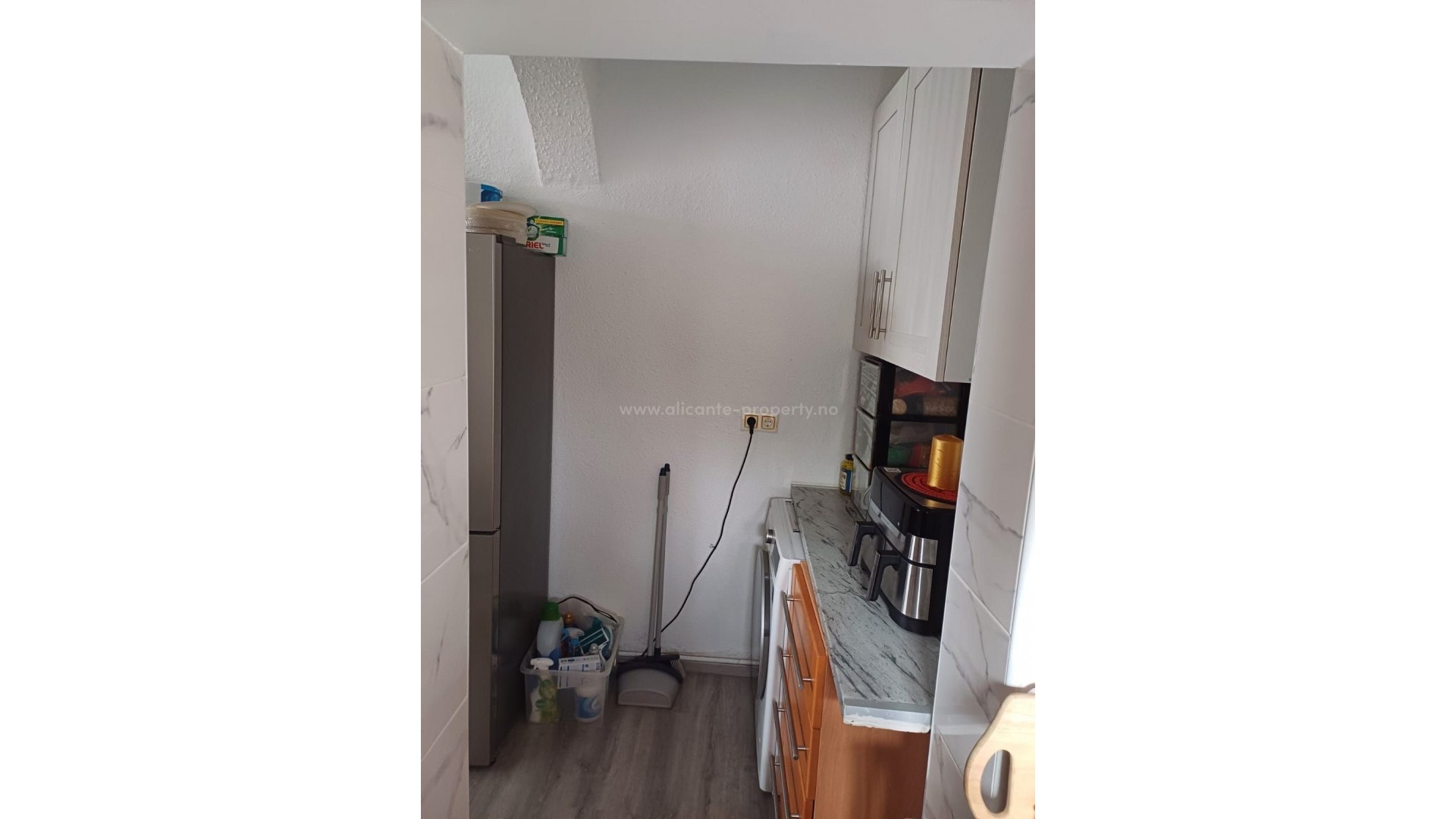 Nydelig hjørnerekkehus med 2 soverom og 2 bad ved saltsjøene – Torrevieja – Stig inn i ditt drømmehjem i Spania med dette vakkert presenterte rekkehuset, bare noen skritt fra de fantastiske saltsjøene i Torrevieja. ✨ Viktige funksjoner: Romslig privat terrasse, perfekt for utendørsliv Separat, fullt utstyrt kjøkken Klimaanlegg overalt for komfort året rundt Romslige soverom med uforstyrret utsikt over innsjøene og fjellene Beboerne har tilgang til et kommunalt svømmebasseng og en praktisk garderobe, noe som bidrar til den daglige komforten og livskvaliteten i disse sjarmerende omgivelsene. Stemningsbelysning og takvifter for stil og komfort Praktisk bod for ekstra bekvemmelighet Nyt en kort spasertur til et pulserende utvalg av barer, restauranter, skoler og offentlig transport – alt i et flatt, familievennlig område med utmerkede fasiliteter. Ligger på en direkte bussrute og ideelt for helårsbolig eller som et feriested. Pris: €144 000 – Gi et bud i dag og gjør din spanske drøm til virkelighet! Rekkehus, Torrevieja, Costa Blanca. 2 soverom, 2 bad, Bygget areal 80 m², Terrasse 20 m². Beliggenhet: By, Nær golf, Nær butikker, Nær sjøen, Nær byen, Nær skoler. Tilstand: Utmerket. Basseng: Felles. Klimaanlegg: Klimaanlegg. Utsikt: Fjell, Innsjø. Funksjoner: Privat terrasse. Møbler: Fullt møblert.