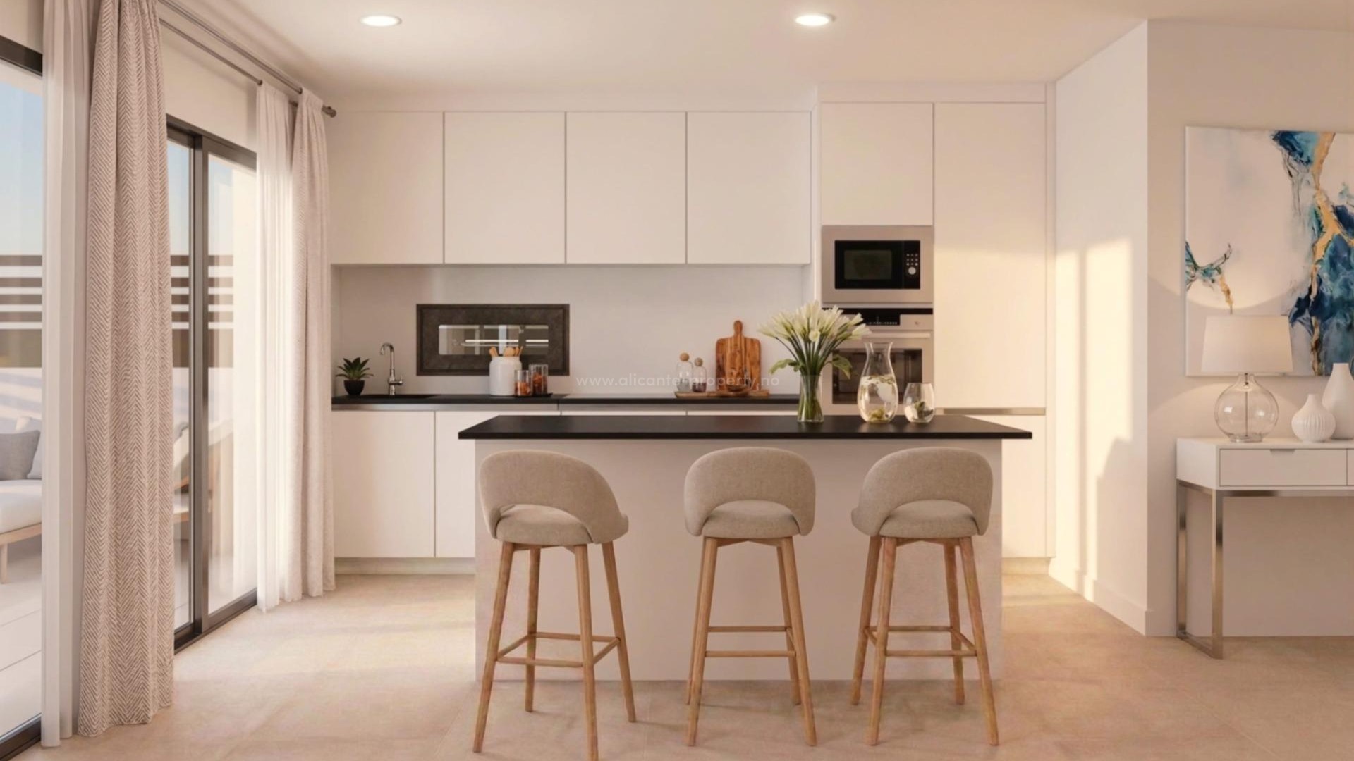 Nybyggede villaer i Camposol Golf (Mazarron-Murcia) med privat solterrasse og kjeller Eksklusive villaer i Camposol Golf Oppdag dette private boligkomplekset med 69 frittliggende villaer, beliggende på en tomt i første linje mot Camposol Golf i Mazarron, Murcia. Anlegget er utformet rundt en stor, sentral grønn oase med felles svømmebasseng og anlagte hager, og tilbyr et fredelig og trygt miljø som er ideelt for å nyte den middelhavsinspirerte livsstilen. Beliggenheten kombinerer ro med bekvemmelighet, da den nærliggende landsbyen El Saladillo tilbyr daglige tjenester, butikker og lokale fasiliteter i kort avstand. De vakre strendene i Puerto de Mazarron ligger bare 14 km unna, noe som gjør dette til et utmerket valg både for fast bolig og fritidsbolig. Moderne villaer i ett plan med fleksible planløsninger Utbyggingen tilbyr et utvalg av moderne villaer bygget i ett plan, tilgjengelige med to eller tre soverom. Alle boligene har to bad, hvorav det ene er en suite, designet med tanke på funksjonalitet og komfort. Hver villa ligger på en privat tomt fra 300 m², noe som gir utendørsarealer for avslapning og underholdning. Eiendommene har også et privat solarium, som gir ekstra utendørs oppholdsareal med åpen utsikt over den omkringliggende golfbanen og landskapet. Kjeller og muligheter for tilpasning Et sentralt trekk ved disse villaene er den romslige kjelleren, som gir eierne mulighet til å tilpasse rommet etter egne behov. Dette området kan gjøres om til treningsrom, bod, hjemmekino eller ekstra oppholdsrom, noe som gir stor fleksibilitet og merverdi. Villaene er utformet med innvendige trapper som forbinder alle etasjer, noe som sikrer enkel tilgang mellom kjelleren, hovedoppholdsrommet og solterrassen på taket. Kvalitetsdetaljer og komfortabel livsstil Disse nybyggene leveres med høykvalitets finish og moderne funksjoner. Kjøkkenene er fullt møblerte og utstyrt med hvitevarer, mens badene er ferdig utstyrt med dusjvegger og armaturer. Ytterligere funksjoner inkluderer forberedelse for klimaanlegg, innebygde garderober, elektriske persienner og et komplett LED-belysningspakke, noe som sikrer komfort og bekvemmelighet fra første dag. Førsteklasses beliggenhet i Mazarron nær golf og kyst Camposol er et veletablert boligområde kjent for sin golfbane, avslappede atmosfære og internasjonale samfunn. Mazarron tilbyr et bredt utvalg av tjenester, restauranter og fritidsaktiviteter, mens den nærliggende kysten er kjent for sine sandstrender og krystallklare vann. Viktige avstander inkluderer Camposol Golf rett utenfor døren, landsbyen El Saladillo 2 km unna, strendene i Puerto de Mazarron 14 km unna, Mazarron sentrum 10 km unna, Murcia Corvera lufthavn 35 km unna og byen Cartagena 40 km unna. Ideell investerings- og livsstilsmulighet i Murcia Dette prosjektet tilbyr en utmerket mulighet til å eie en moderne villa i en beliggenhet rett ved golfbanen, med stort potensial for tilpasning og høy leieattraktivitet. Kontakt oss i dag for å få mer informasjon eller for å avtale en visning og sikre deg din nye villa i Camposol-Mazarron.