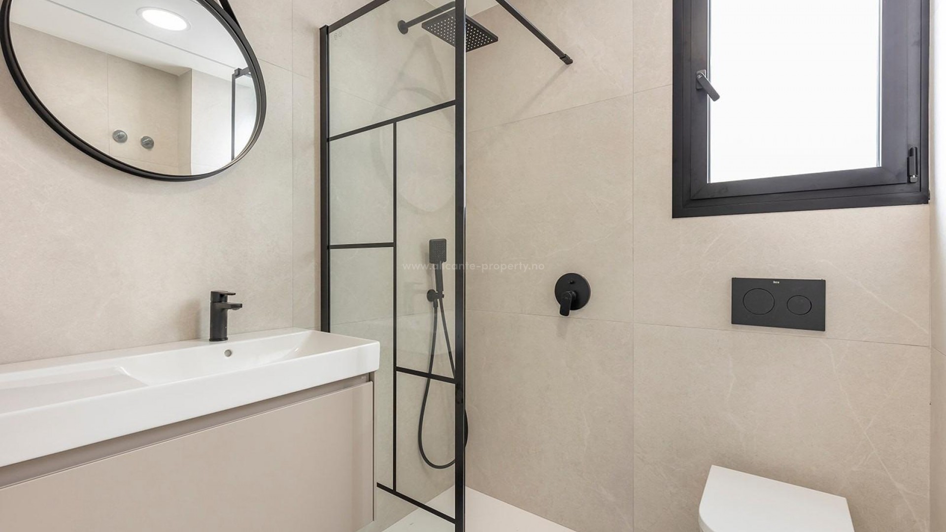 Nybygde villaer med privat basseng nær La Serena Golf i Los Alcazares Eksklusivt boutique-boligprosjekt nær golfbane og strand Oppdag dette eksklusive boligprosjektet med kun åtte frittliggende nybygde villaer, ideelt plassert mellom La Serena Golf og den sjarmerende kystbyen Los Alcazares. Med en beliggenhet bare 1500 meter fra strendene ved Mar Menor tilbyr disse boligene den perfekte kombinasjonen av golf, hav og middelhavsliv. Beliggenheten gjør at beboerne kan nyte gangavstand til både golfbanen og sentrum, hvor det finnes et bredt utvalg av restauranter, butikker, kafeer og nødvendige tjenester. Los Alcazares er kjent for sin avslappede atmosfære, lange strandpromenade og grunne, varme vann, noe som gjør det til et populært reisemål for både ferierende og fastboende. Moderne villaer med fleksible planløsninger Disse moderne villaene er tilgjengelige med to eller tre soverom, med valg mellom planløsninger i ett eller to plan. Bygget på private tomter fra 200 m², er hvert hjem designet for å maksimere plass, komfort og naturlig lys. Alle villaene har privat svømmebasseng og parkering på tomten, noe som skaper et privat og funksjonelt uteområde som er ideelt for å nyte det solrike klimaet hele året. Villaer i ett plan har et privat solarium på taket, perfekt for soling eller avslapning med åpen utsikt. Villaer i to plan har romslige terrasser i øverste etasje, noe som gir ekstra utearealer. Åpen planløsning og forbindelse til utearealene Interiøret fokuserer på en åpen planløsning, med lyse stue- og spisestueområder som er sømløst forbundet med moderne kjøkken. Store vinduer lar naturlig lys fylle rommene samtidig som de gir direkte tilgang til terrasser og bassengområder. Denne utformingen forsterker den innendørs-utendørs livsstilen som kjennetegner livet på Costa Calida, noe som gjør disse villaene ideelle både for hverdagsliv og for å ta imot gjester. Høykvalitets finish og moderne funksjoner Villaene er bygget etter høye standarder med kvalitetsmaterialer og pålitelige merker. Funksjonene inkluderer en forsterket sikkerhetsinngangsdør fra DIERRE, fullt utstyrte garderober og moderne kjøkken utstyrt med BOSCH-apparater. Ytterligere spesifikasjoner inkluderer et aerotermisk system for varmt vann, motoriserte persienner og en automatisert innkjøringsport. Hver detalj er nøye gjennomtenkt for å gi komfort, effektivitet og bekvemmelighet. Førsteklasses beliggenhet på Costa Calida Los Alcazares tilbyr en utmerket beliggenhet med enkel tilgang til strender, golfbaner og transportforbindelser. Mar Menor-strendene ligger bare 1,5 km unna, mens La Serena Golf ligger innen gangavstand. Andre viktige avstander inkluderer Murcia Corvera lufthavn 35 km, Cartagena 25 km, Murcia by 50 km og Alicante lufthavn 90 km. Ideell mulighet for investering eller feriebolig Disse nybygde villaene tilbyr en sjelden mulighet til å eie en moderne eiendom i en førsteklasses beliggenhet nær både sjøen og golfbanen. Kontakt oss i dag for mer informasjon eller for å avtale en visning og sikre deg din nye villa i Los Alcazares.