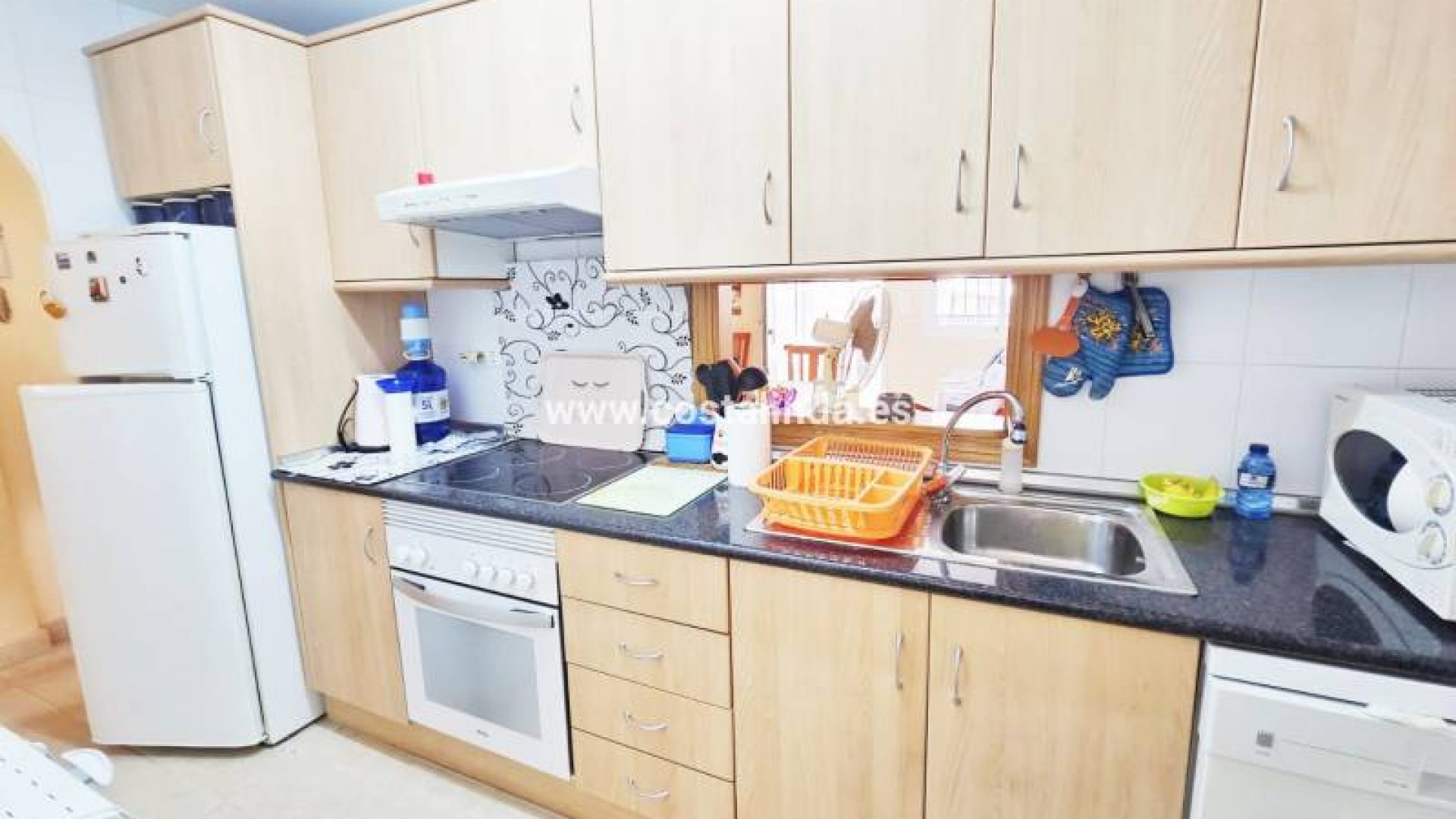 Denne romslige leiligheten i første etasje ligger kun 3 minutters gange fra stranden og i et veldig kjent område i Los Alcázares, kun 5 minutter fra det populære 525 Square. Når du kommer inn på eiendommen vil du bli mottatt av en komfortabel veranda perfekt for sommeren. Innvendig har du en stor stue, kjøkken, 2 store soverom, 1 bad og en liten innvendig uteplass. I garasjen ved siden av parkeringsplassen har du god bod for ekstra plass.