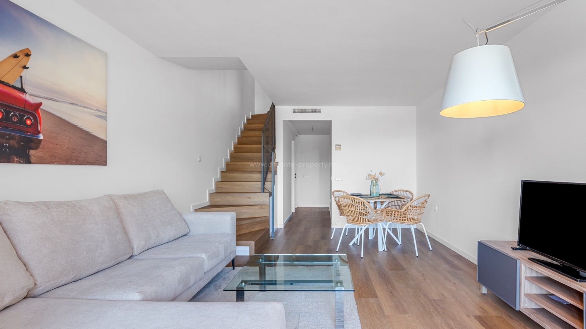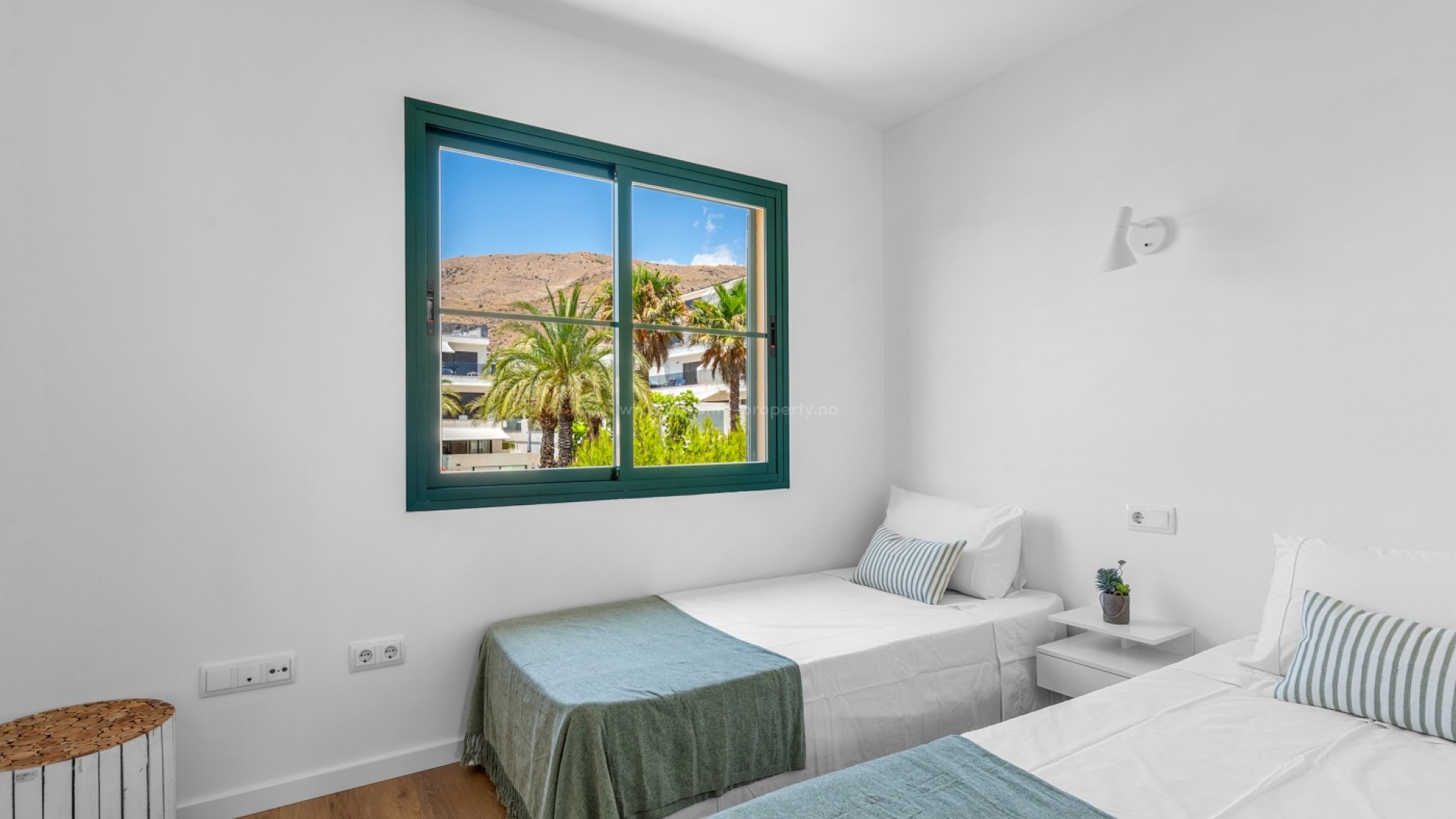 Dette sjarmerende rekkehuset tilbyr 102 m² bygget areal fordelt over to etasjer, med to soverom og tre bad. Boligen inkluderer en romslig stue, et separat kjøkken, et vaskerom, en hageterrasse og en balkong. Urbanisasjonen tilbyr to felles svømmebassenger og store anlagte områder omgitt av trær og naturlig gress, noe som skaper et rolig og grønt miljø. Prisen inkluderer én parkeringsplass. Eiendommen er i god stand og har innebygde garderober. Den drar nytte av en sør- og østvendt beliggenhet, noe som sikrer rikelig med naturlig lys. Ytterligere fasiliteter inkluderer klimaanlegg og vakkert vedlikeholdte hager.