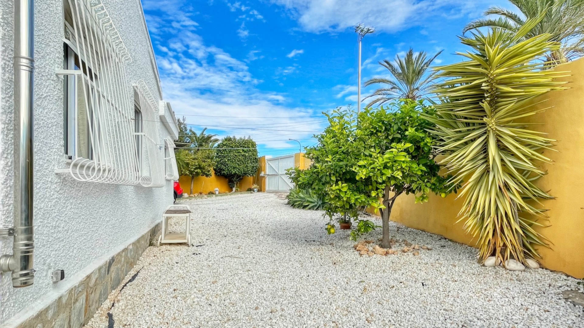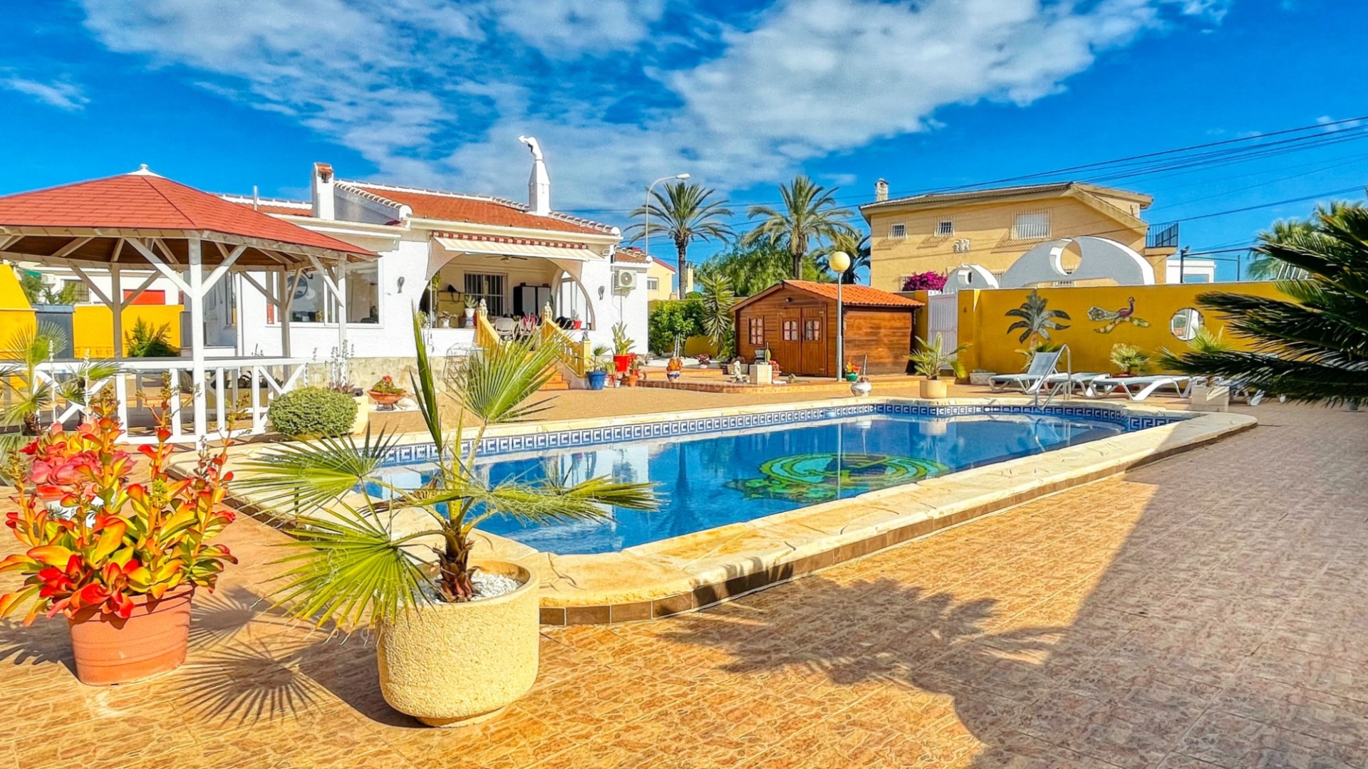 Vi har gleden av å presentere denne vakre villaen på 175 m², som ligger i det populære boligområdet Ciudad Quesada i Rojales. Beliggenheten garanterer utmerket solskinn hele dagen, mens de romslige rommene og det store svømmebassenget tilbyr fantastisk utsikt, perfekt for å nyte middelhavsklimaet. Alt dette er trygt, nær restauranter og en kort kjøretur fra stranden. Husets interiør har en romslig stue, et fullt utstyrt kjøkken og en spisestue. Det er tre soverom i hovedhuset og ett i en tilstøtende studioleilighet med to komplette bad. Utenfor har eiendommen et stort svømmebasseng og en grillplass – perfekt for familiesammenkomster! Det er også tre boder, en tomt som egner seg for en toppleilighet og en privat parkeringsplass. Den førsteklasses beliggenheten, ideell for å nyte solen og uteområdene, gjør hvert hjørne av hagen til det perfekte stedet å slappe av og koble av. Funksjoner - Villa på 175 m² i Ciudad Quesada, Rojales, i et populært område - Tomt på 864 m² med god orientering og utmerket solplassering. - Stort svømmebasseng, grillområde og boulebane. - 4 soverom (tre i huset og ett i et separat studio) - 2 bad - Fullt utstyrt kjøkken i nærheten av spisestuen. - Lys og luftig stue - 3 stuer - 10 minutters kjøretur til stranden - 30 minutter fra Alicante flyplass Ta gjerne kontakt med oss for ditt besøk!