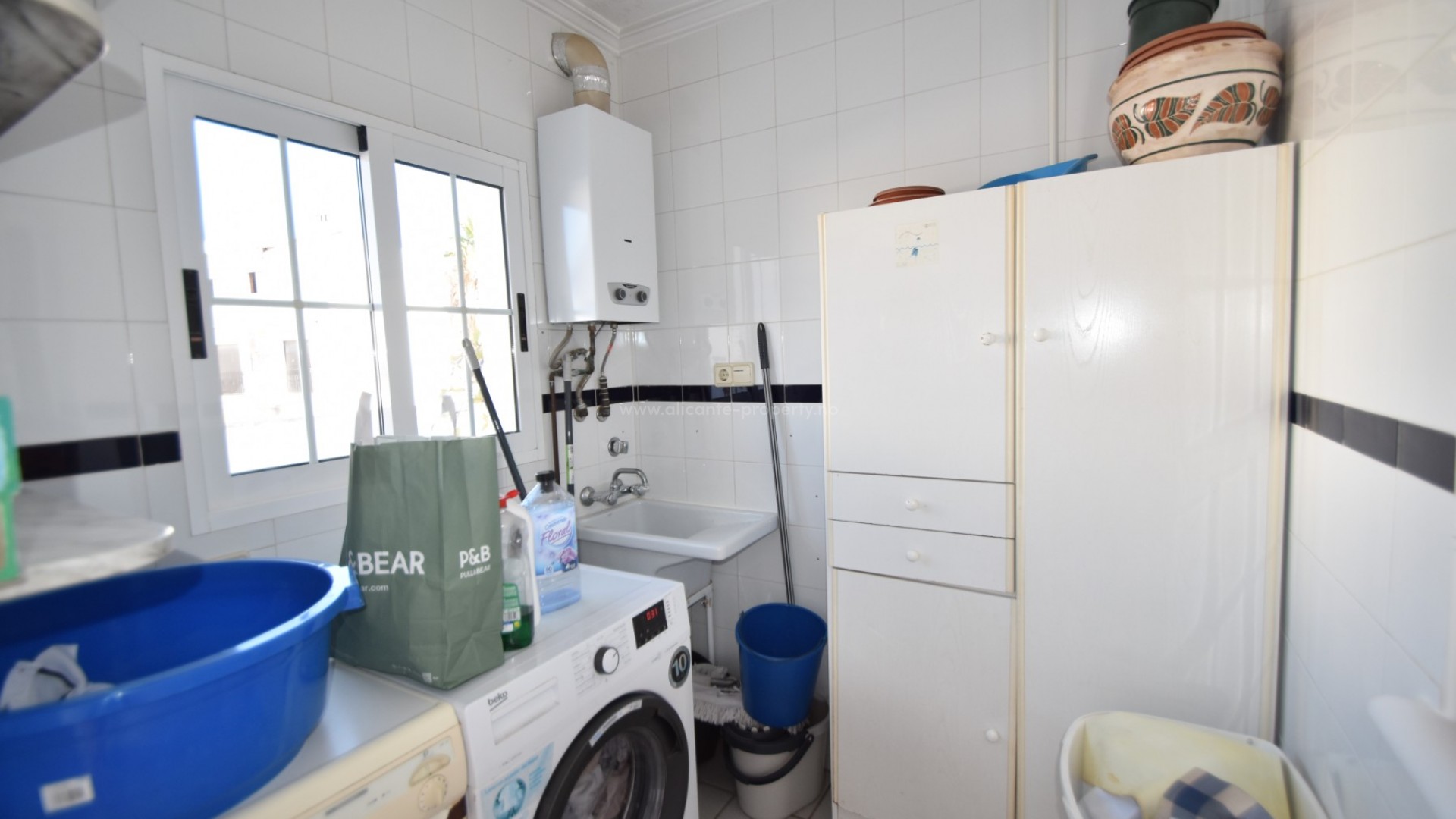Vi har gleden av å presentere dette vakre og romslige familiehjemmet, som ligger i hjertet av den populære landsbyen Los Montesinos på den solfylte Costa Blanca. Landsbyen tilbyr alle nødvendige fasiliteter, ligger en kort kjøretur fra strendene og har utmerkede forbindelser til motorveien og Alicante flyplass. Eiendommen er fordelt over tre etasjer. I første etasje fører en sjarmerende gang til garasjen og den nedre delen av villaen på venstre side. Det er parkeringsplass for flere biler, og de nåværende eierne bruker også plassen som ekstra boareal: den inkluderer en stue, et kjøkken, tre soverom, et bad og til og med et innendørsbasseng. Det er det perfekte stedet for familier som søker privatliv eller foretrekker å bo i første etasje. Fra gangen oppe kommer du inn i hovedhuset. Her finner du en romslig stue med peis og en balkong med utsikt over landskapet og innsjøene. Det er et stort separat kjøkken med spisebord og tilgang til den romslige bakterrassen, ideell for å underholde venner og familie. Denne etasjen huser også fire doble soverom og to felles familiebad. Opp trappen er det en annen stue eller et potensielt soverom, som for tiden brukes som treningsrom. Fra stuen har du tilgang til et vakkert, stort takterrasse, hvor du kan nyte utsikten over naturparken, innsjøene og havet. Denne eiendommen er i perfekt stand og klar til innflytting. Den har klimaanlegg, peis, god lagringsplass og innebygde garderober. Eiendommen tilbys delvis møblert (avhengig av tilgjengelighet). Kontakt oss i dag for et besøk!