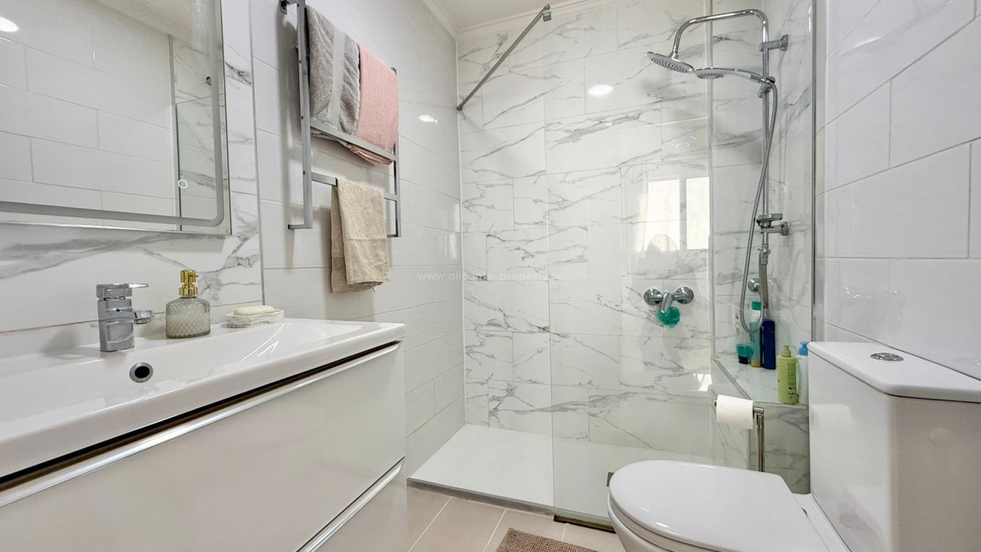Dette vakkert renoverte rekkehus med to soverom i enden av huset legges ut for salg i hjertet av Ciudad Quesada, et pulserende og ettertraktet boligområde på Costa Blanca. Denne eiendommen ligger nær sentrum og kombinerer klassisk spansk sjarm med moderne oppgraderinger. Med vidstrakt havutsikt fra den forhøyede takterrassen og fellesbassenget, gir den en eksepsjonell mulighet for både heltidsbolig og feriebruk. Innvendig ønsker boligen deg velkommen med en gjennomtenkt designet planløsning som maksimerer plass og lys. To velproporsjonerte soverom og stilige oppholdsrom kompletteres av et fullt utstyrt kjøkken og moderne finish overalt. Interiøret flyter uanstrengt over i uteområdene – perfekt for avslapning eller underholdning. Den forhøyede takterrassen tilbyr panoramautsikt og solskinn året rundt, noe som gjør den til et fremtredende trekk ved denne eiendommen. Denne boligen tilbyr også praktiske bekvemmeligheter og livsstilsbekvemmeligheter som dagens kjøpere søker. Nyt privat utendørsaktivitet med fellesbasseng og terrasse, og enkel tilgang til lokale fasiliteter, kafeer, butikker og tjenester bare noen få minutter unna. I tillegg til sin boligappell, gjør eiendommens beliggenhet den til et attraktivt alternativ for utleieinvestering eller sesongopphold på Middelhavskysten. Renovert rekkehus med 2 soverom i Ciudad Quesada, Costa Blanca Nærhet til fasiliteter, restauranter og tjenester i sentrum Felles svømmebasseng og sjenerøst uteområde for avslapning og underholdning Solarium med havutsikt – ideelt for solfylte opphold Moderne interiør med åpne oppholdsrom og oppgraderte overflater Godt planlagt planløsning med to soverom og praktiske oppholdsrom Perfekt som permanent hjem, feriested eller feriebolig I gangavstand til lokale butikker, kafeer og fellesfasiliteter