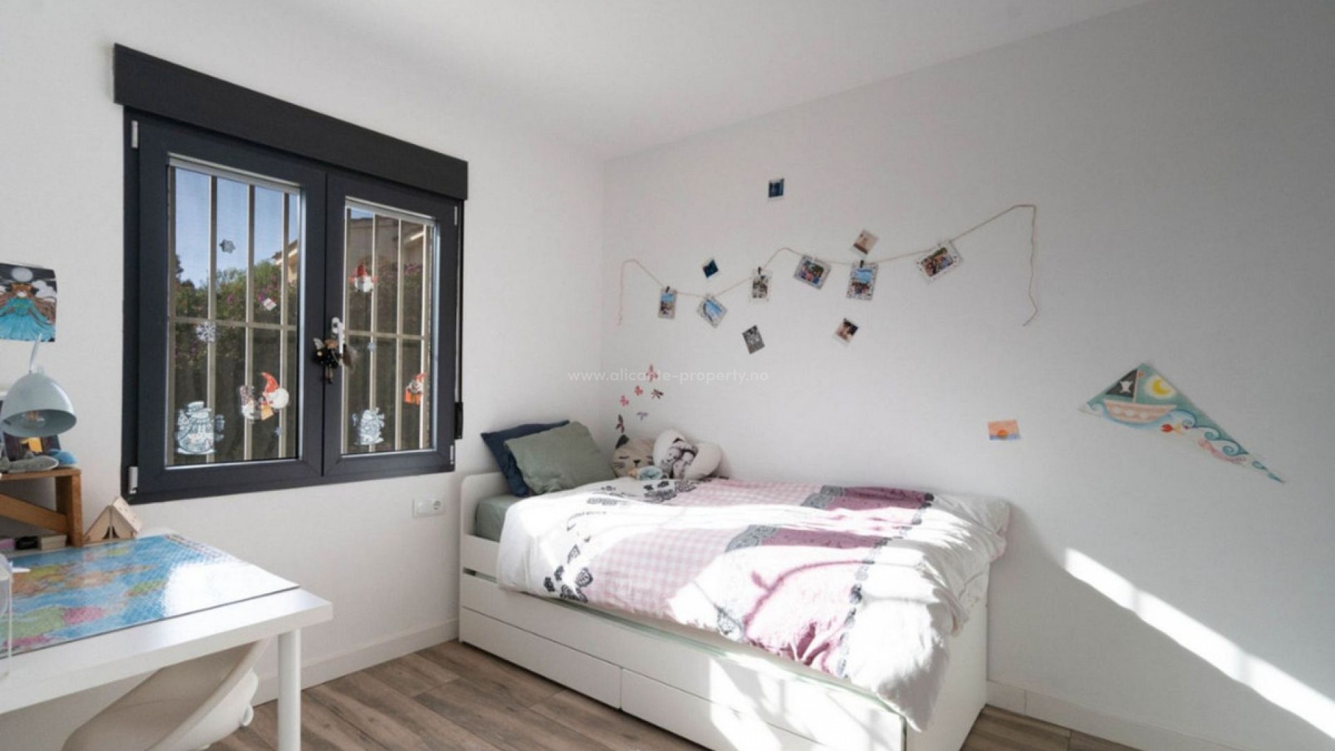 We are pleased to present to you this Fabulous Detached Villa with exceptional views, The property is located in a prime location, just steps from the center of Ciudad Quesada and La Marquesa Golf Course. The property consists of two completely independent apartments with a total constructed area of 335 m2 and a plot of just under 1,000 m2. In total you will find 5 bedrooms and 3 bathrooms, including 1 en-suite bathroom, The upstairs apartment has stunning views, and the living and dining areas are seamlessly connected to the modern kitchen. There are two bedroom areas, one comprising the spacious master bedroom with an en-suite bathroom and a wonderful view of the salt lake, the other consisting of two bedrooms with a bathroom. All bedrooms have thermally insulated windows and central air conditioning, an internet distribution system in all rooms, an alarm system with two cameras connected to all windows, and a security door. The ground floor apartment features an open-plan kitchen and living room with large windows overlooking the beautiful private garden, two bedrooms, and a spacious bathroom. Strategically located, it's close to shops, public transportation, restaurants, and within walking distance of the beach and the city center. In short, this luxury villa is the perfect choice for those seeking a sophisticated property in a prime location. A true haven of tranquility! A private driveway, accessed from the street, leads to the electric gates with remote opening system. A spacious entrance courtyard welcomes you, comfortably parking four cars. This wonderful courtyard divides the garage from a covered parking area located just below the stairs leading to the main floor. The property sits on a plot with well-kept gardens surrounding the house. A private pool measuring approximately 10 x 5 m enhances the appeal of the outdoor space, as do the numerous chill-out areas. Residents can also enjoy an outdoor kitchen with a barbecue, ideal for entertaining guests or simply enjoying a meal al fresco.
