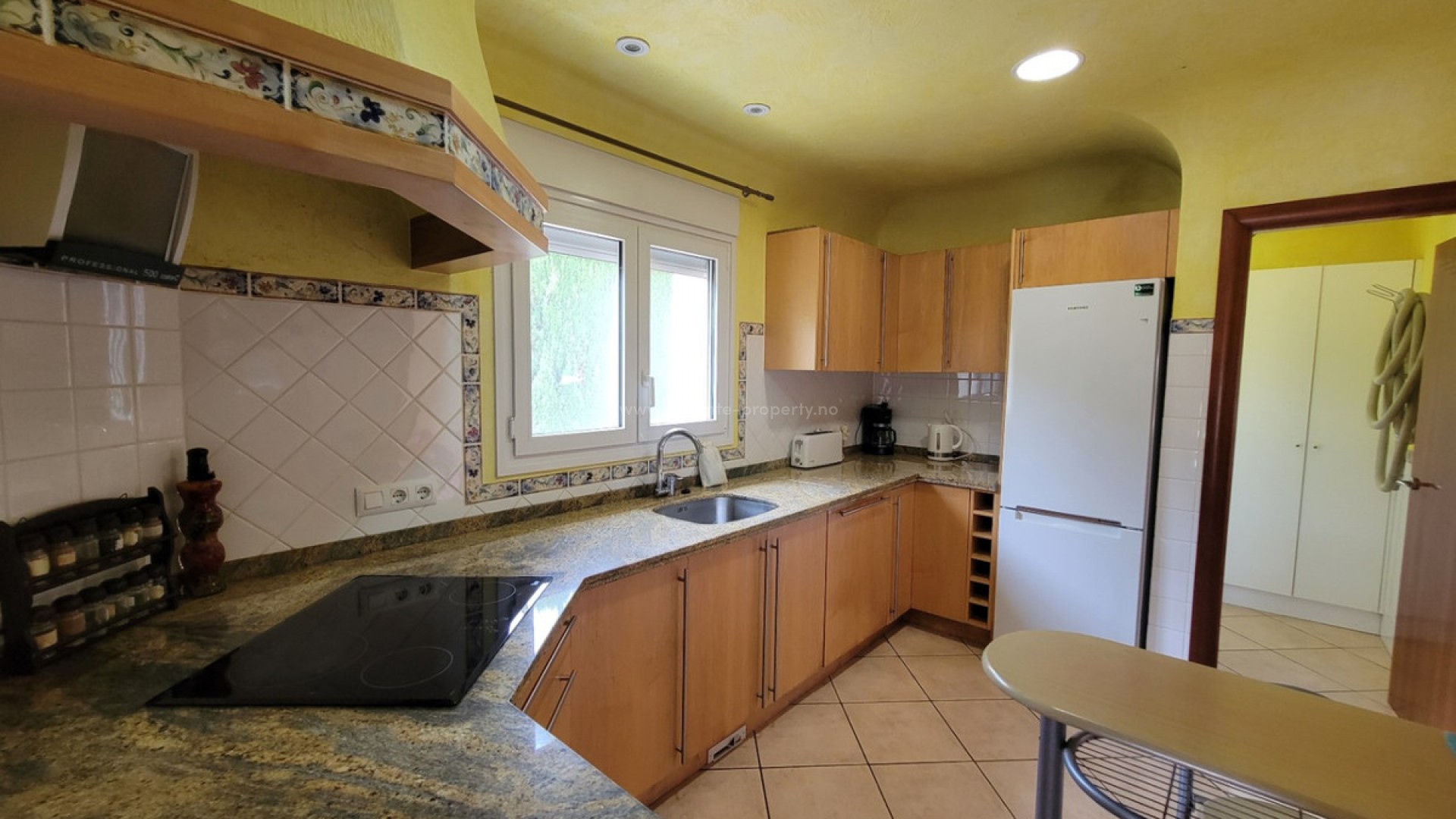 Charming Chalet in Benissa Located in the beautiful town of Benissa, in the province of Alicante, this chalet stands out for its impressive construction and the quality of its finishes. Surrounded by an extensive plot of 920 m², it offers a private retreat where tranquility and comfort are the stars. Spacious Layout With a generous built area of 190 m², this villa features: 3 cozy bedrooms that guarantee privacy and rest. 4 elegant bathrooms, equipped to provide comfort to residents and guests. Highlighted Features The property is equipped with air conditioning for hot/cold, ensuring a pleasant environment throughout the year. The southern exposure of the chalet allows for bright and warm days to be enjoyed. The private pool is the perfect place to cool off on hot summer days or simply relax under the Mediterranean sun. Furthermore, the garden surrounding the property provides a green space inviting residents to enjoy nature and the peace of the surroundings. Amenities and Equipment The chalet is in good condition, ready to be inhabited and enjoyed. Some of the amenities it offers include: A fully equipped kitchen that meets the culinary needs of any home chef. A garage and parking options that provide security and convenience. Terraces, both covered and outdoor, perfect for enjoying alfresco dining or moments of relaxation. A cozy living room with a fireplace, ideal for creating a homely atmosphere on cool nights. Satellite connection, ensuring quality entertainment. An outdoor barbecue to enjoy delicious meals outside with family and friends. Outdoor showers to cool off after a swim in the pool, and security with double doors and restricted access to the property. Living in Benissa This villa is situated in one of the most privileged areas of the coast, where natural beauty and vibrant culture blend together. Benissa is known for its beautiful beaches, quiet coves, and a welcoming atmosphere that invites a relaxed Mediterranean lifestyle. Proximity to local services, restaurants, and leisure areas makes this chalet not just a residence but a true gem for living or vacationing. This chalet in Benissa is not just a home; it is an icon of lifestyle, comfort, and beauty. With all these features, it is the perfect opportunity for those looking for a home where every day feels like a vacation.