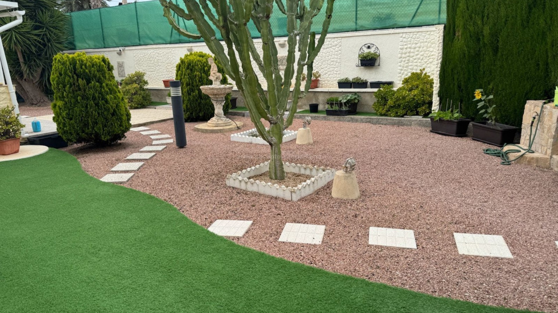 Detached Villa, La Marina, Costa Blanca. 3 Bedrooms, 3 Bathrooms, Built 298 m², Terrace 1700 m², Garden/Plot 2028 m². Setting : Country. Condition : Excellent. Pool : Private. Climate Control : Air Conditioning, Central Heating, Fireplace, U/F Heating. Views : Mountain, Country. Features : Fitted Wardrobes, Private Terrace, Guest Apartment, Storage Room, Utility Room, Barbeque. Furniture : Fully Furnished. Garden : Private. Security : Alarm System. Parking : Private. Utilities : Electricity, Drinkable Water, Photovoltaic solar panels.