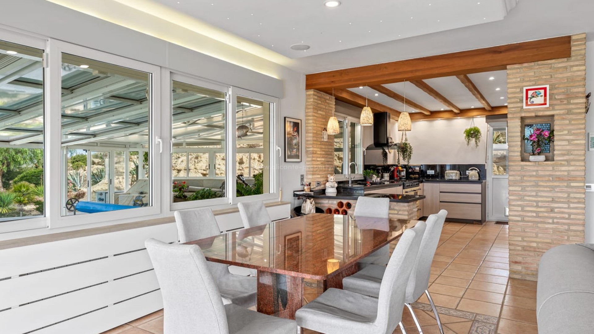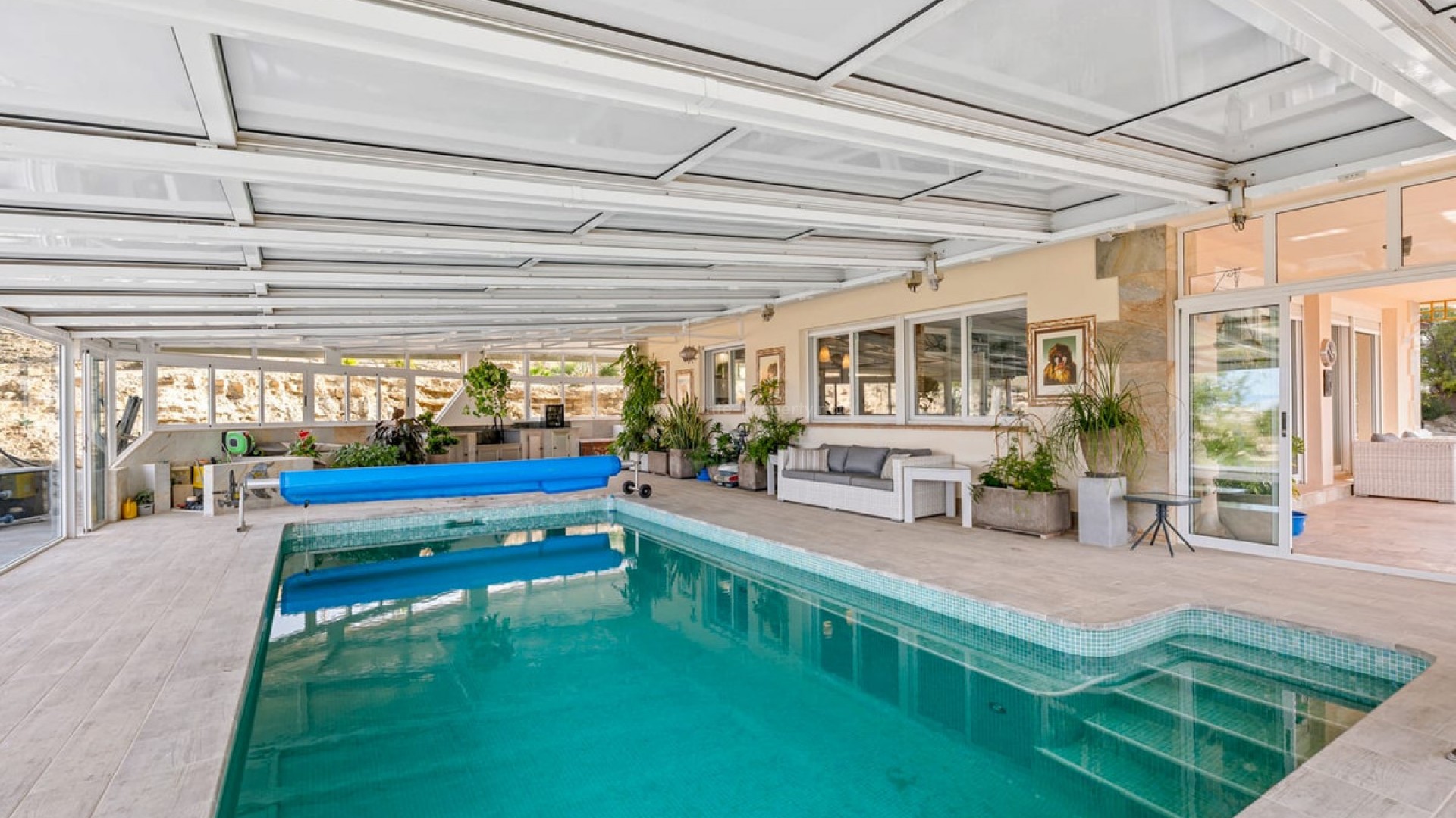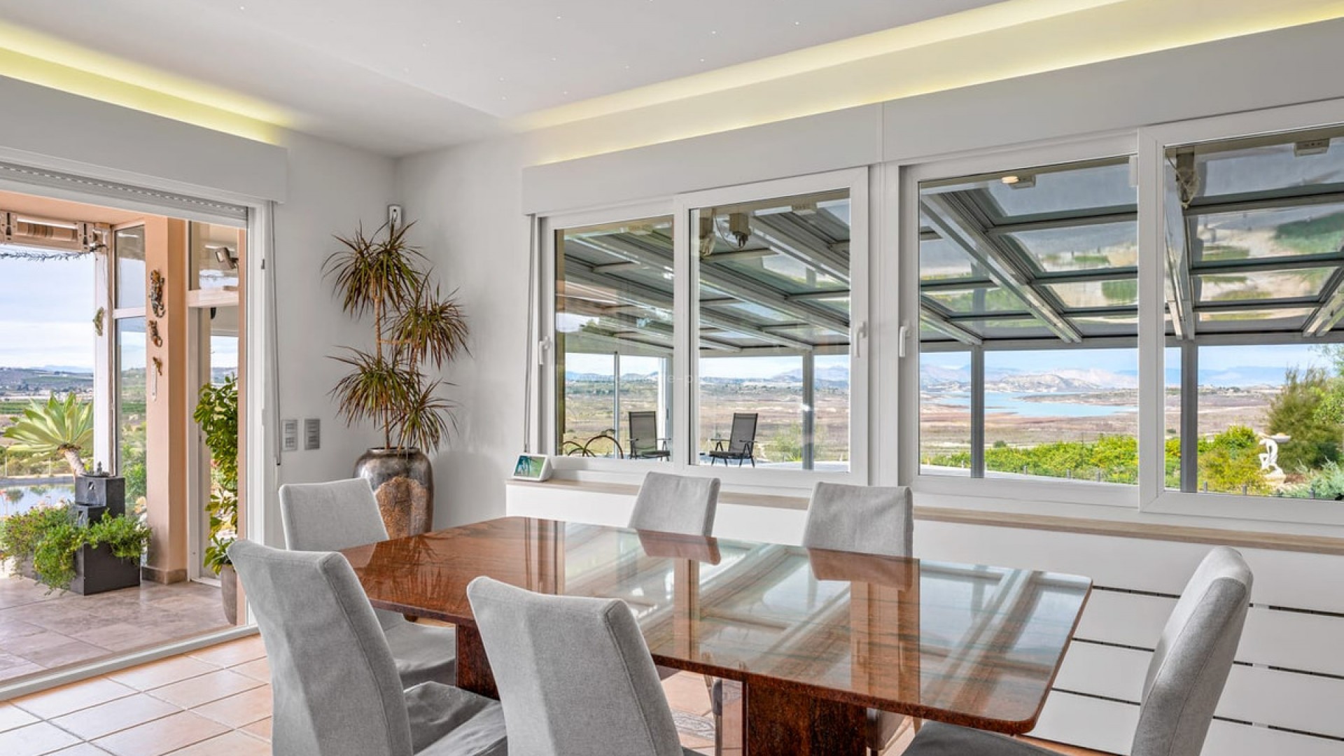 Stunning Country Villa with Indoor pool and Lake Views in Torremendo Set on an impressive 11,000m² plot, this exceptional country villa enjoys breathtaking views over Torremendo Lake and the surrounding countryside, offering privacy, space, and endless possibilities. The main residence features four spacious bedrooms, including an impressive master suite complete with a dressing room, en-suite bathroom, and its own private terrace—the perfect place to wake up to the sounds of the countryside. At the heart of the home is a large living and dining area with a charming log burner, creating a warm and inviting atmosphere. This space opens directly onto a beautiful terrace fitted with electric sun-shade blinds, ideal for both summer living and year-round entertaining. The fully fitted modern kitchen complements the home perfectly, offering both style and functionality. One of the standout features of this property is the heated indoor swimming pool, complete with a retractable roof and stunning lake views. The pool area also benefits from additional storage and an outdoor kitchen, making it an exceptional space for relaxation and entertaining. Outside, this stunning country villa is surrounded by beautifully landscaped gardens, providing a tranquil setting that blends seamlessly with the natural surroundings. For those needing additional space, the property includes a double garage with storage room, plus a smaller additional garage. As well as this the whole plot is fenced and entered via electric gates. Ideal for equestrian enthusiasts or those seeking a rural lifestyle, the property also offers four stables, a tack room, holding room, and a paddock, along with a charming summer house. Further benefits include: Sold mostly furnished Air-conditioning throughout Oil central heating Electric transformer Solar panels This remarkable villa offers an array of possibilities—whether as a luxurious family home, an equestrian retreat, or a unique lifestyle investment—all set in one of the most scenic locations in Torremendo. If you would like to view this stunning villa with indoor pool and lake views in Torremendo, get in touch now!