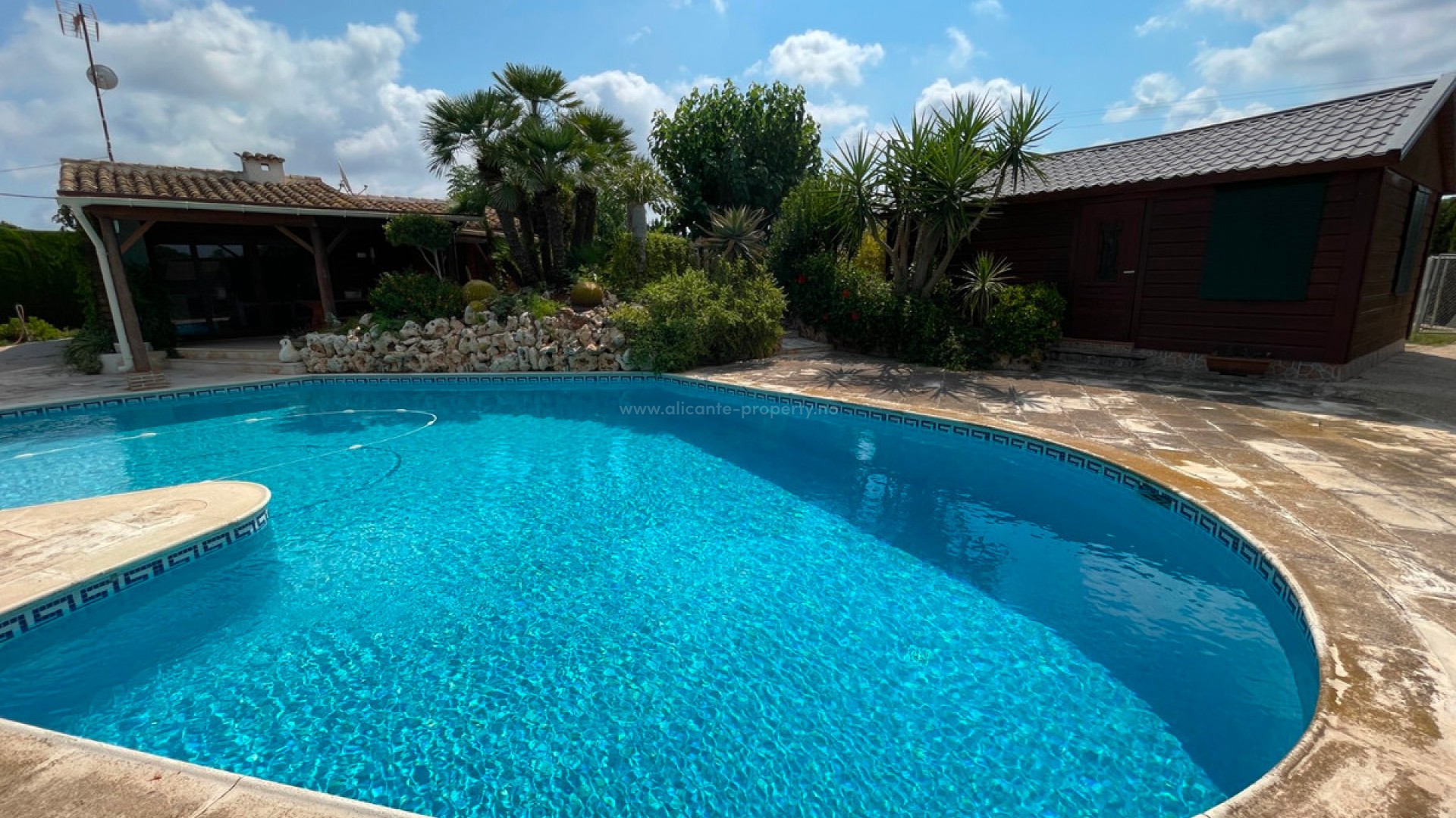 Exclusive Property with Swedish Wooden House, Pool, and Large Plot – San Fulgencio We present a unique and fully legalized property, located just a few kilometers from the beaches, ideal for those seeking privacy, space, and quality of life in a well-maintained natural setting. Set on a plot of over 3,400 m², this estate features a main Swedish wooden house of 165 m², in perfect condition. The house includes: 3 spacious bedrooms, 2 full bathrooms, A bright living-dining room with open-plan kitchen, And a large covered terrace of over 60 m², perfect for year-round outdoor enjoyment. Additionally, the property includes a charming separate wooden guesthouse with: 1 bedroom and 1 full bathroom, making it ideal for guests or even as a rental for additional income. ???? Auxiliary spaces and outdoors A 68 m² enclosed garage for two cars, A second 27 m² garage for additional parking, A 22 m² storage or workshop shed, A private 64 m² swimming pool in excellent condition, And various animal areas, including land prepared for horses and a fenced area currently housing geese and chickens. The property is fully fenced and surrounded by cypress trees, ensuring complete privacy and peace. In summary: This property is much more than just a house – it's an exclusive home, designed to enjoy every corner, with unique features that set it apart in the market. Ideal for families, nature lovers, rustic charm enthusiasts, or those seeking a private retreat with all amenities. A secure investment, move-in ready, with great potential as a tourist accommodation or multigenerational home.
