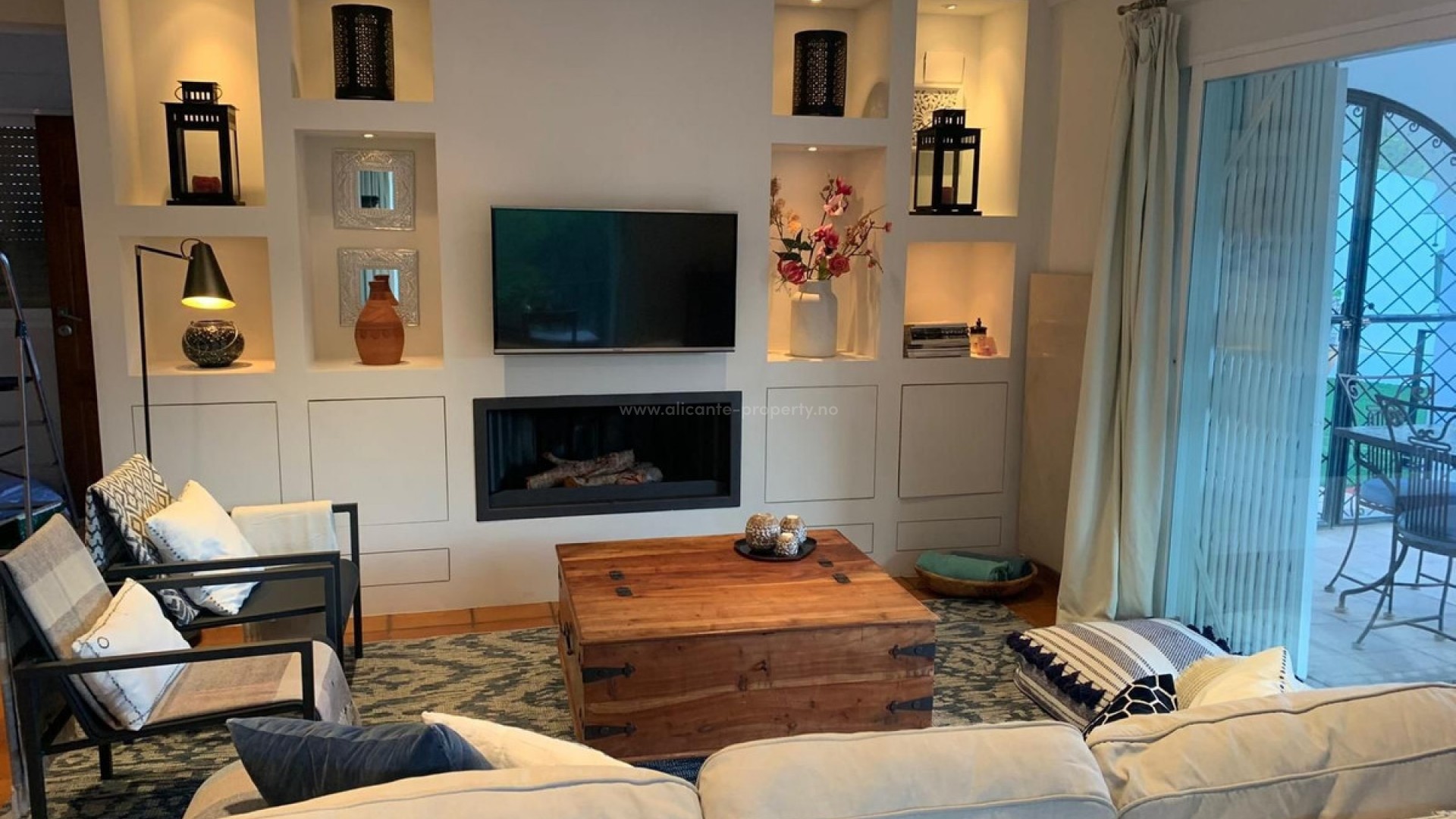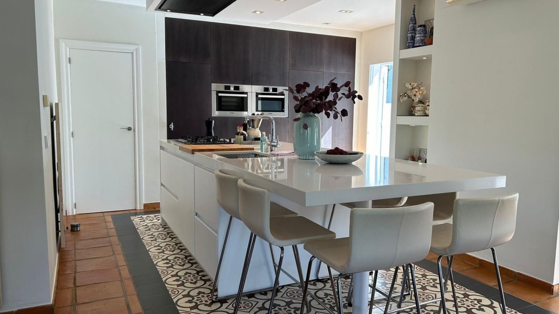 Tucked away at the end of a quiet cul-de-sac in one of Altea la Vella's most serene residential areas, this elegant Mediterranean villa strikes the perfect balance between privacy, natural surroundings, and modern comfort. With panoramic views of the mountains and forest from multiple terraces, the setting exudes tranquility while remaining just 15 minutes from the beach and Altea's picturesque old town. The main residence has been tastefully renovated, offering a spacious open-plan living and dining area with a cozy fireplace. Large windows and a seamless connection to a stylish semi-glazed terrace make it an inviting space to enjoy all year round. The fully equipped open kitchen, fitted with top-quality appliances, combines functionality with contemporary style. On this level, you'll find three bright bedrooms and two bathrooms, including a comfortable master suite with a private en-suite. On the lower floor, with its own independent entrance, a complete two-bedroom guest apartment offers excellent rental potential or an ideal setup for multi-generational living. It features an open-plan kitchen, a comfortable living and dining space, a full bathroom, and two private terraces—one shaded by mature trees for moments of calm. From here, direct access leads to the private pool area, designed for complete privacy and relaxation. The property also boasts a rooftop solarium of over 20 m², offering breathtaking panoramic views—a perfect spot to unwind or entertain. Modern comforts include air conditioning upstairs, electric radiators throughout, and ample on-site parking for several vehicles. Whether you are seeking a versatile family home with space to grow or a smart investment with immediate income potential, this villa delivers both. Its turnkey condition, high-quality finishes, and peaceful yet accessible location make it a rare find in one of Altea la Vella's most desirable neighborhoods.