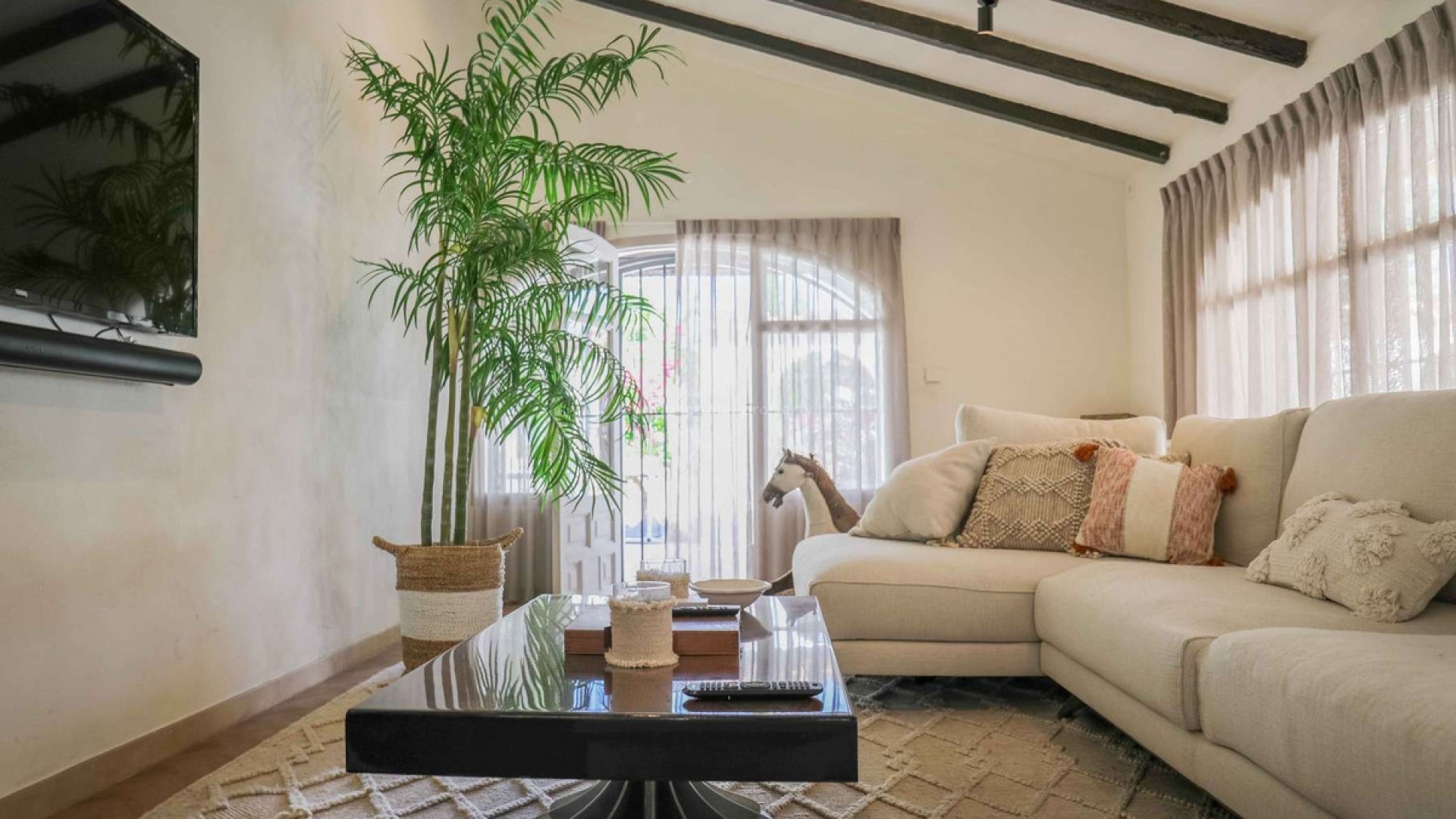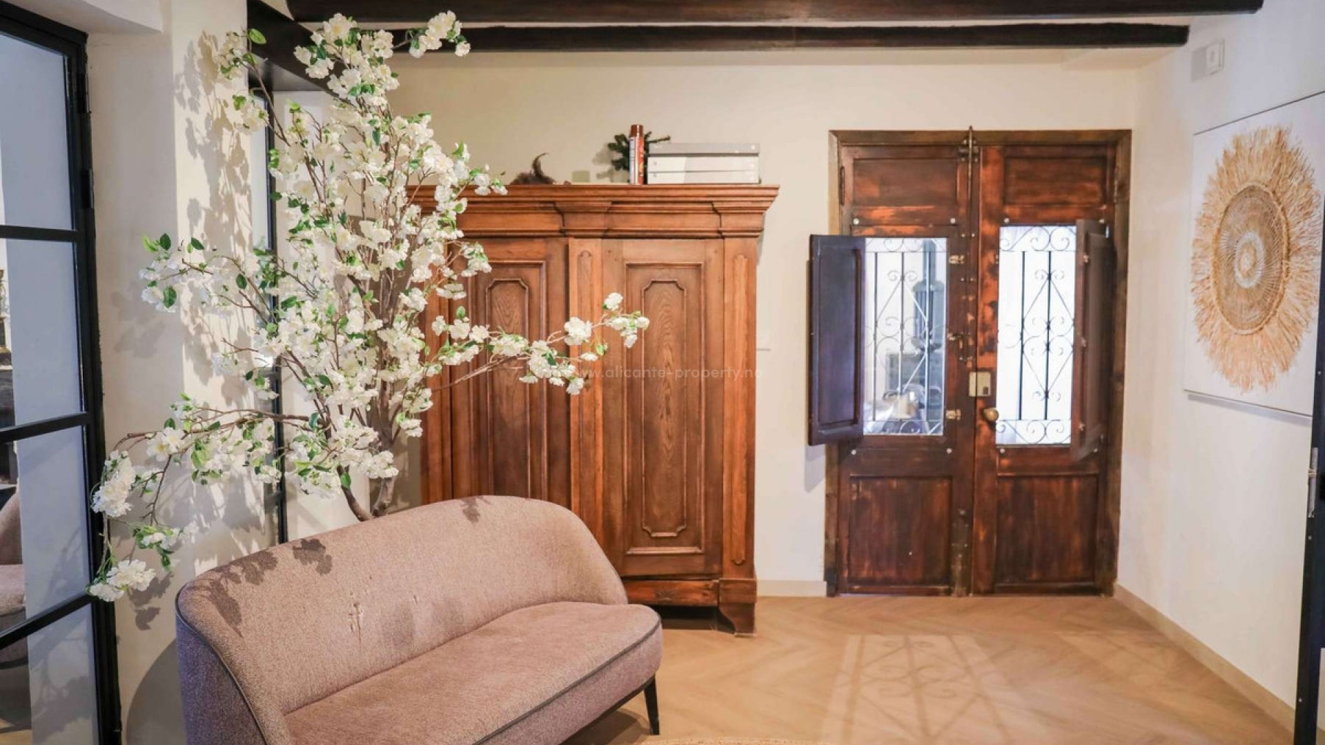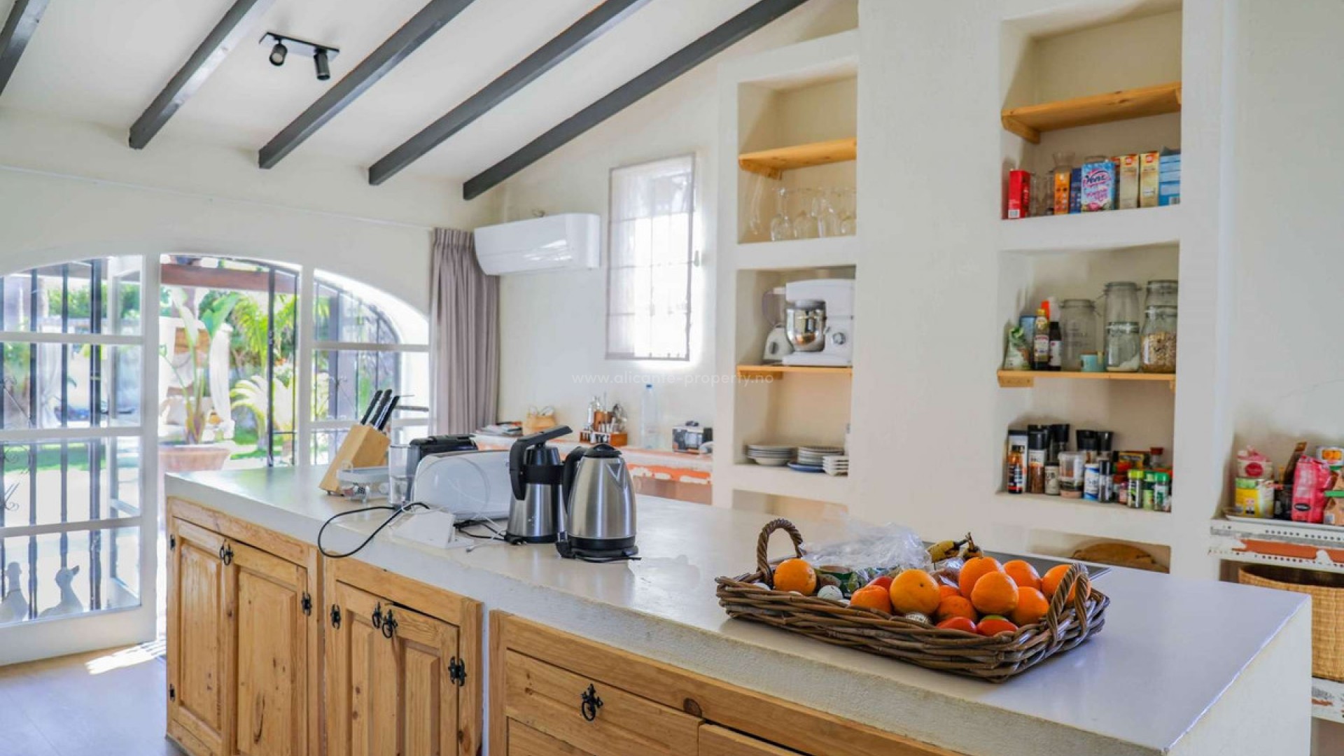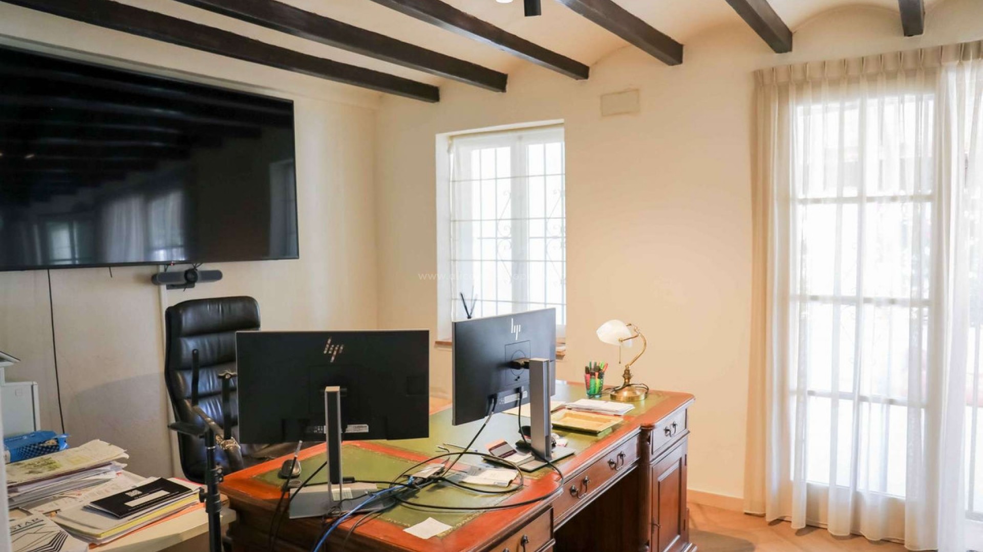 Thoughtfully restored with impeccable attention to detail, this remarkable home offers a serene and secluded haven, all while keeping essential amenities within easy reach, situated on a plot of 11.637 sqm with a constructed area of 548 sqm- Situated on a level plot, the residence unfolds across two expansive floors. The main level boasts a sleek, modern kitchen featuring a bold central island, ideal for shared meals and gatherings. Adjacent, a refined dining area with a cozy fireplace sets a welcoming tone, while a corridor opens to a flexible room currently serving as a study but easily adaptable as an extra bedroom. The airy living space, flooded with light through oversized windows, beckons for moments of relaxation. Ascend the elegant staircase to the upper level, where the opulent primary suite awaits, complete with a walk-in closet and private bathroom. Step onto the suite's exclusive terrace to savor stunning, uninterrupted views of the iconic Montgó mountain. The property also includes two self-contained guest suites, each with two bedrooms and a bathroom, offering comfort and independence for visitors. A well-appointed laundry area enhances the home's practicality. Outside, the grounds are a true retreat. Vast terraces, a generous pool, and inviting lounge spaces create an idyllic backdrop for outdoor enjoyment. A fully equipped outdoor kitchen is perfect for hosting memorable gatherings, and a forthcoming sauna will soon elevate the estate's wellness appeal. Additional highlights include zoned air conditioning, plentiful parking, and a spacious garage accommodating three cars.Located 10 km from Javea and its beach, 105 km from Alicante Airport and 113 km from the Alicante Airport.