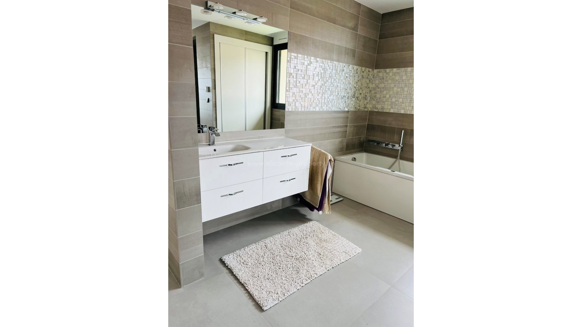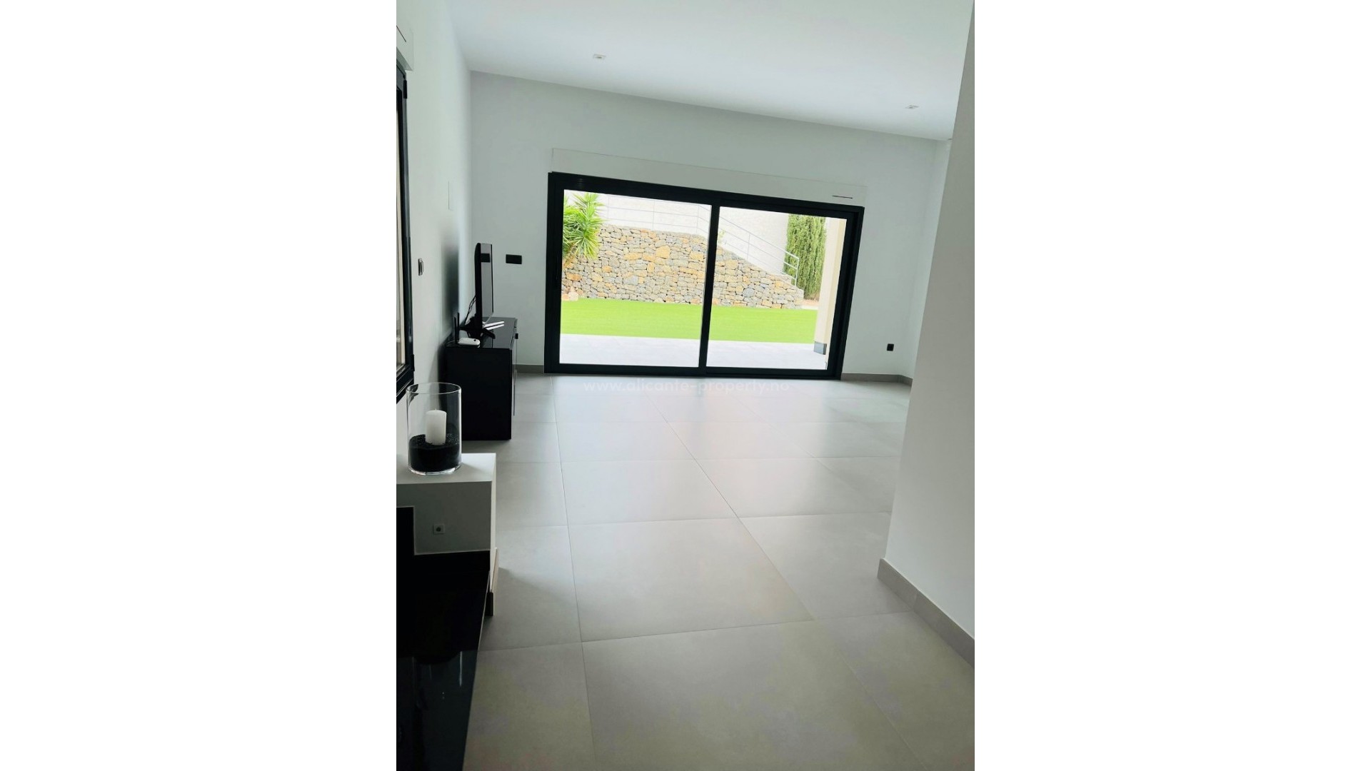 The Villa is built on a plot of 1680m2 and the property consists of 1120m2 of which 680m2 are usable and are distributed over two floors. On the first floor there is a very big living-dining room of 190m2 with an open kitchen of 80m2 giving a feeling of hugh amplitude. Also there is a laundry area 16m2 and toilet. On this same floor we can also find the master bedroom 32m2 with a complete dressing room 12m2 the bathroom en suite 22m2 with bath and shower. This bedroom has also direct access to the terrace of 240m2 where we can find an area for the jacuzzi, the large outdoor pool of 10mx4m with beautiful views and the outdoor kitchen 16m2. On the ground floor we find a 30m2 living room, 4 bedrooms and 2 bathrooms, a games room with ping-pong, cinema room, wine cellar, cold room and a very big garage for 5 big cars. Outside we have an artificial grass area, fruit trees and 4 parking spaces next to the entrance to the house. This Villa is located in an exclusive area and at very close to the town, Altea la Vella and the golf course, Don cayo golfclub. 10 min drive away from the beach and highway.
