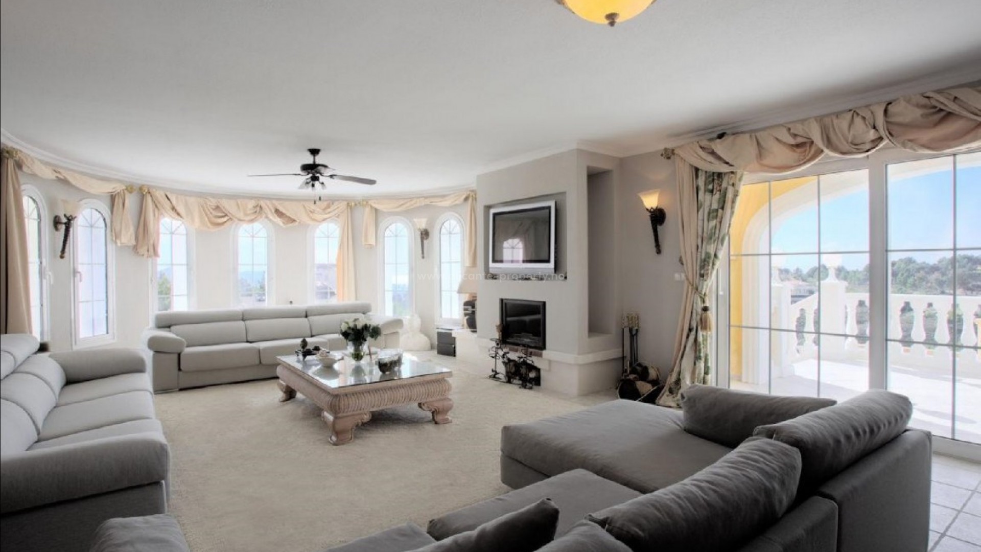 Stunning Luxury Villa/Mansion in La Nucía. Stunning Luxury Villa-Mansion with Panoramic Views in Altea This extraordinary villa-mansion offers approximately 2,000 m² of luxurious living space, set on a generous 17,823 m² plot with breathtaking 360-degree views of the sea, mountains, and the entire Bay of Altea. Designed and built to the highest standards, the property features Tecnal windows with armored glass, elegant marble bathrooms, Venetian stucco finishes, and premium-quality fixtures throughout. The estate includes: 8 spacious bedrooms (4 en-suite) 5 Living/Dining Rooms 6 bathrooms and 4 guest toilets 5 fully equipped kitchens 6 garages with automatic gates Wine cellar Fitness Studio/gym Laundry Room 3 Storage Rooms 2 Machine Rooms 2 Large Multipurpose Rooms or Party Or Games Rooms 177 m² swimming pool with waterfalls, fountains, and jacuzzi A 400 m² party room and a conference room The mansion comprises four independent living areas—three within the main residence and one separate guest apartment—providing privacy and versatility for family and guests. Comfort is assured with underfloor heating powered by hot water and other state-of-the-art amenities. Contact us today for more detailed information and to request a brochure with floor plans. Don't miss this rare opportunity to own a true masterpiece in one of the most desirable locations on the Costa Blanca.