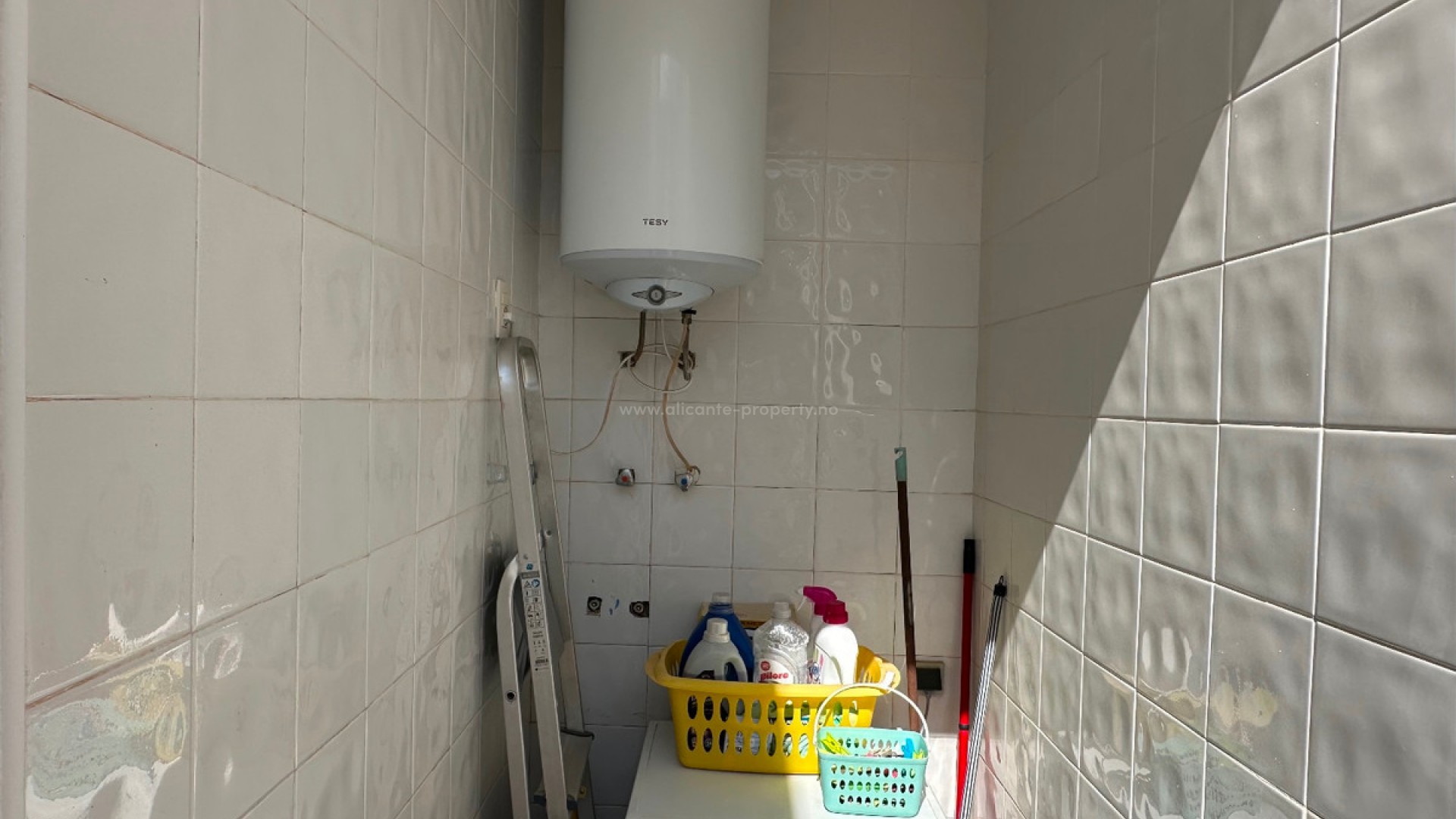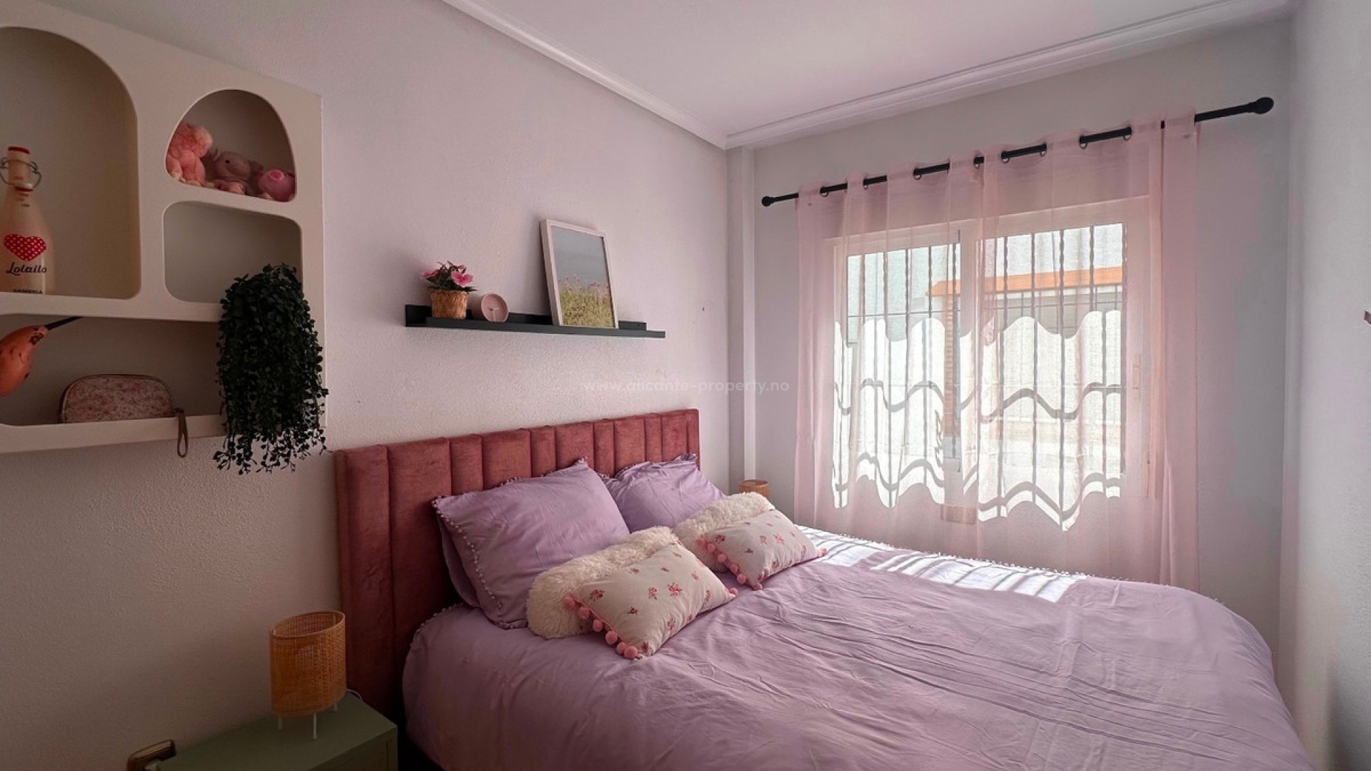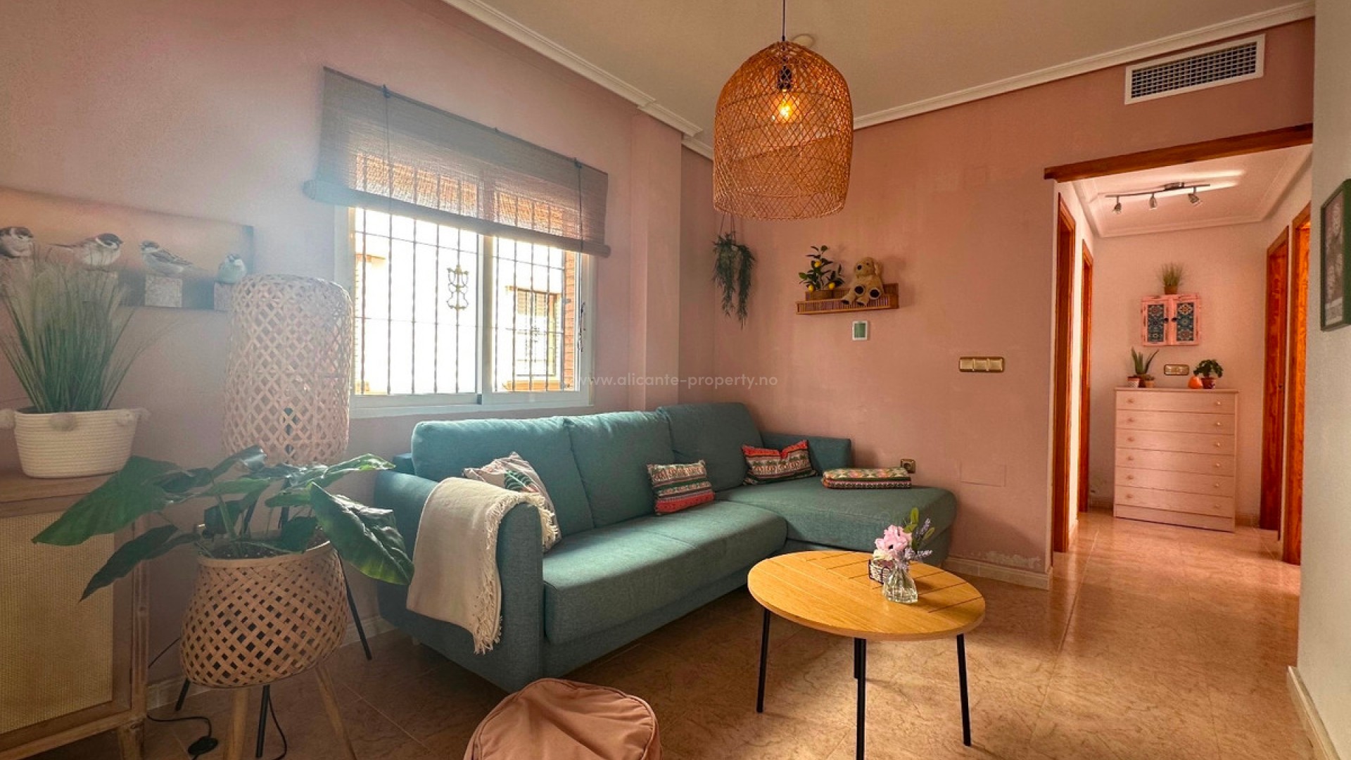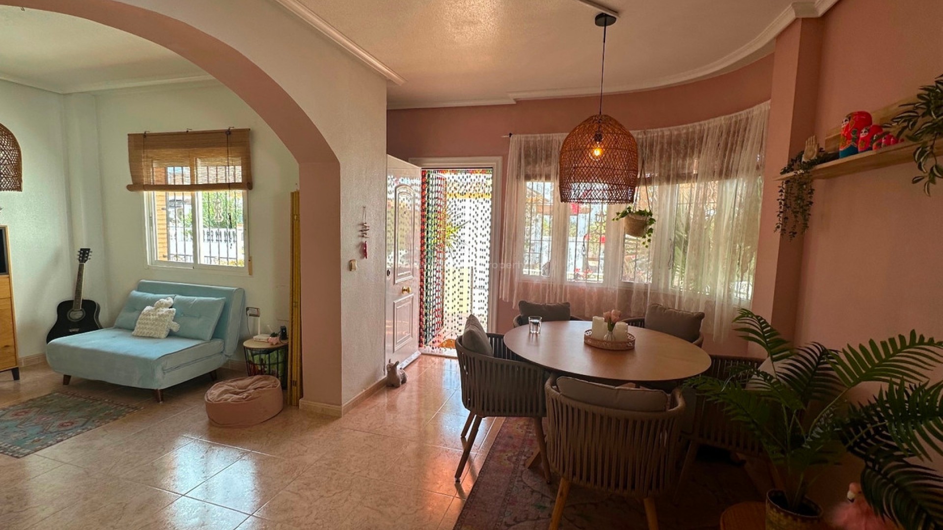We are delighted to present this charming tower villa in the charming village of El Raso, Guardamar . The property features two bedrooms and two bathrooms , plus a tower room currently used as a guest house . On the ground floor, you'll find a spacious living room (which could originally be converted back into three bedrooms on the ground floor) with an adjoining fully equipped kitchen . The kitchen leads to the covered laundry room where the boiler is located. Outside, you'll enjoy off-road parking and a sunny south-facing terrace at the front . Stairs lead to the solarium , which offers stunning views of the Torrevieja salt lakes . In addition, there is a very well-maintained communal swimming pool that is never too busy — ideal for relaxing in peace. El Raso offers a variety of bars and restaurants, as well as a range of amenities within walking distance . Just a few minutes' drive away, you'll find yourself at the famous Blue Flag beaches , or in the charming town of Guardamar with its boulevard and excellent restaurants. Ciudad Quesada is also easily accessible, and La Marquesa Golf Course (Rojales) is about 10 minutes away.