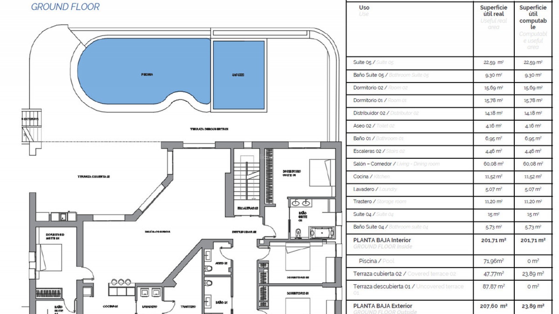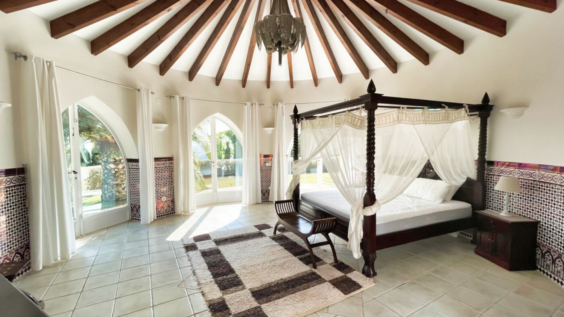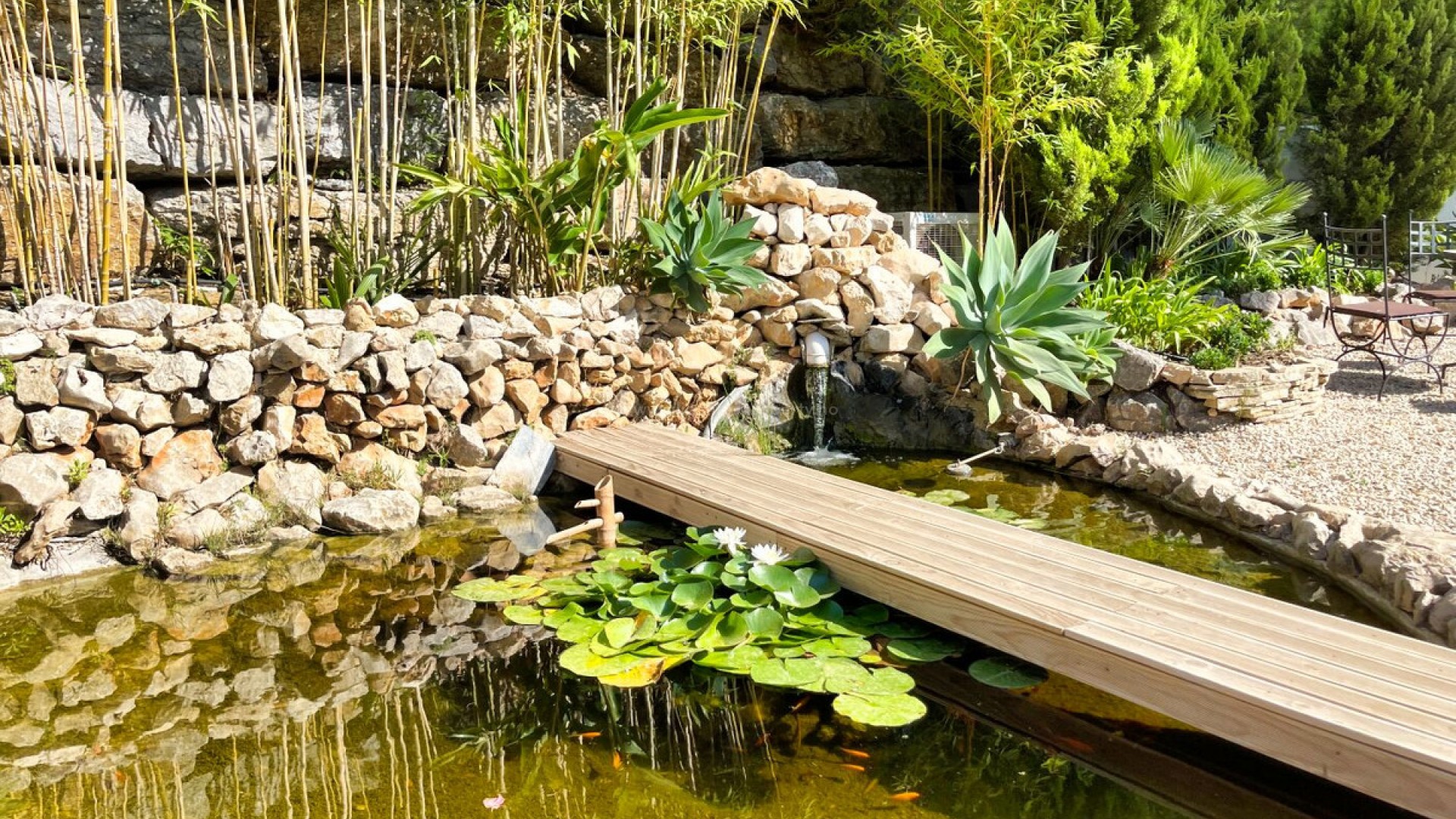 Luxury villa located in the Sierra de Altea, with seven bedrooms, a guest house, panoramic sea and mountain views, tranquillity and privacy. Ideally located close to the centre of Altea and 6 minutes from the beaches and the golf course, this Mediterranean style property with a contemporary design offers around 920 m2 of living space. It was refurbished in 2017 using high quality materials and with an elegant style and a modern exterior divided over three levels. The luxury villa is surrounded by a 2440 m2 plot of land, landscaped, enclosed and perfectly manicured, with a variety of flowers, mature plants and spectacular views. A magnificent entrance hall with an attractive wooden door welcomes you to this exceptional property and leads you into a large open space where you will find a living room with fireplace, dining room and fully equipped designer kitchen with island, ideal for entertaining in company. Thanks to the large windows, you will be amazed by the exceptional sea views of the Bay of Altea and Sierra Helada. There are also two en-suite bedrooms, each with its own bathroom. On the lower floor, accessed via an ornate interior staircase, you will find another bright and spacious open-plan area with a TV room, a dining room and an attractive open-plan kitchen. For added convenience, both the laundry room and storage room are located on this level. On the ground floor of this luxury villa, there is a gym area, utility room, additional storage and a closed garage for three vehicles. Thanks to the optimised layout, this property is ideal for hosting a large number of guests and suitable for large families, where everyone can maintain their privacy and enjoy the many relaxing indoor and outdoor corners. As you stroll through the garden and right in front of a pond with exotic fish, you will see the independent guest house with Moroccan design and wonderful views of the sea and its private garden. This house includes all possible comforts, as well as air conditioning. In addition, there is a connected security alarm, cable TV and fibre optic internet.