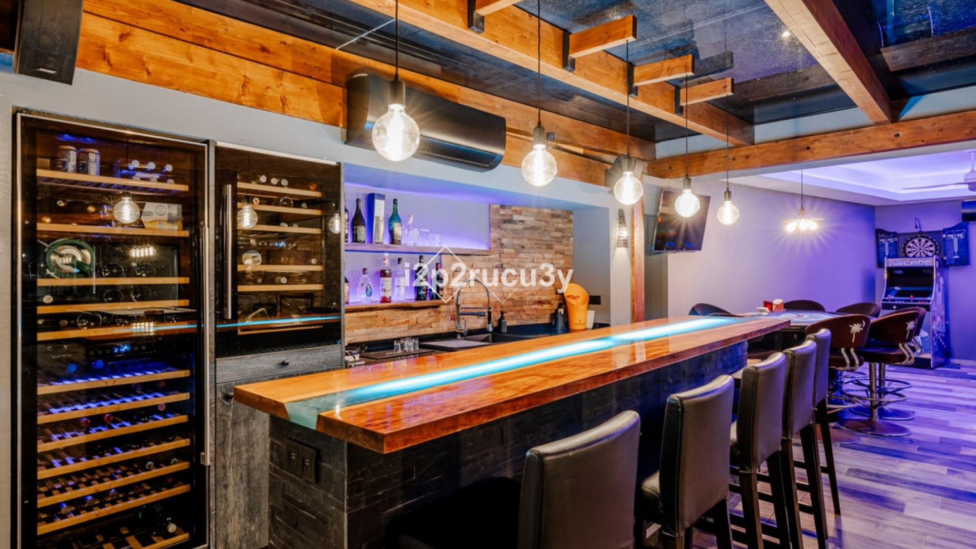A Private Luxury Retreat in a Prime Location Welcome to this luxurious dream villa, located in a privileged position that ensures the utmost privacy, offering extraordinary features, exquisite design, and thoughtful amenities that leave nothing to be desired. Completely renovated in 2022, this spacious estate features 8 elegant en-suite bedrooms, 5 additional modern bathrooms, and a wealth of premium comforts. Surrounded by a vast garden, an impressive infinity pool, and multiple entertainment areas, this villa presents a truly unique opportunity. Unmatched Panoramic Mediterranean Views This exceptional estate boasts one of the most exclusive and far-reaching sea views on the Costa Blanca, enjoyed from a spectacular main terrace with an infinity pool, Jacuzzi, and a fully equipped outdoor kitchen with bar. Inside, a grand entrance flows into an open-plan living and kitchen area framed by panoramic floor-to-ceiling windows, ensuring the view remains a constant masterpiece. Elegant Living Spaces & Luxurious Suites The villa offers four elegant en-suite bedrooms on the main level, including a master suite with a walk-in closet, private lounge area, and a frameless glass panel that perfectly showcases the uninterrupted, world-class panorama. Every detail is crafted to create an ambiance of sophistication and relaxation. Versatile Lower Level & Independent Guest Apartment The lower floor includes a versatile leisure area, a second kitchen, three additional en-suite bedrooms, and a separate entrance ensuring complete privacy. A self-contained guest apartment provides full independence with its own kitchen, living room, en-suite bedroom, and veranda access — perfect for guests or extended stays. Exclusive Underground Sports & Fitness Hall A standout feature is the private underground sports hall equipped with basketball hoops, a gym, and a guest toilet. Over 15,000 liters of water support the automated irrigation system for the beautifully terraced garden. Sustainable Technology & All-Day Sun Exposure The property's south-southwest orientation ensures sunlight throughout the day, fully harnessed by 45 rooftop solar panels that contribute to exceptional energy efficiency. A stylish bar area with a trampoline is perfectly positioned to catch the last sunbeams at sunset. Entertainment Lounge Designed for Lifestyle & Leisure The full entertainment lounge — featuring a poker table, SEGA arcade machines, a surround sound system, and floor-to-ceiling glazed walls — blurs the boundaries between indoor and outdoor living while framing extraordinary sea views from almost every angle. A dedicated equipment room with a new pump ensures optimal pool maintenance. A Unique Fusion of Luxury, Sustainability & Recreation This property seamlessly combines luxury, sustainability, and recreation in one of Costa Blanca's most desirable locations. Whether for living, entertaining, or relaxing, this villa delivers an unparalleled lifestyle experience.