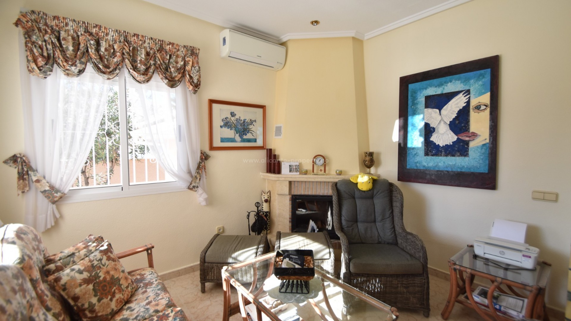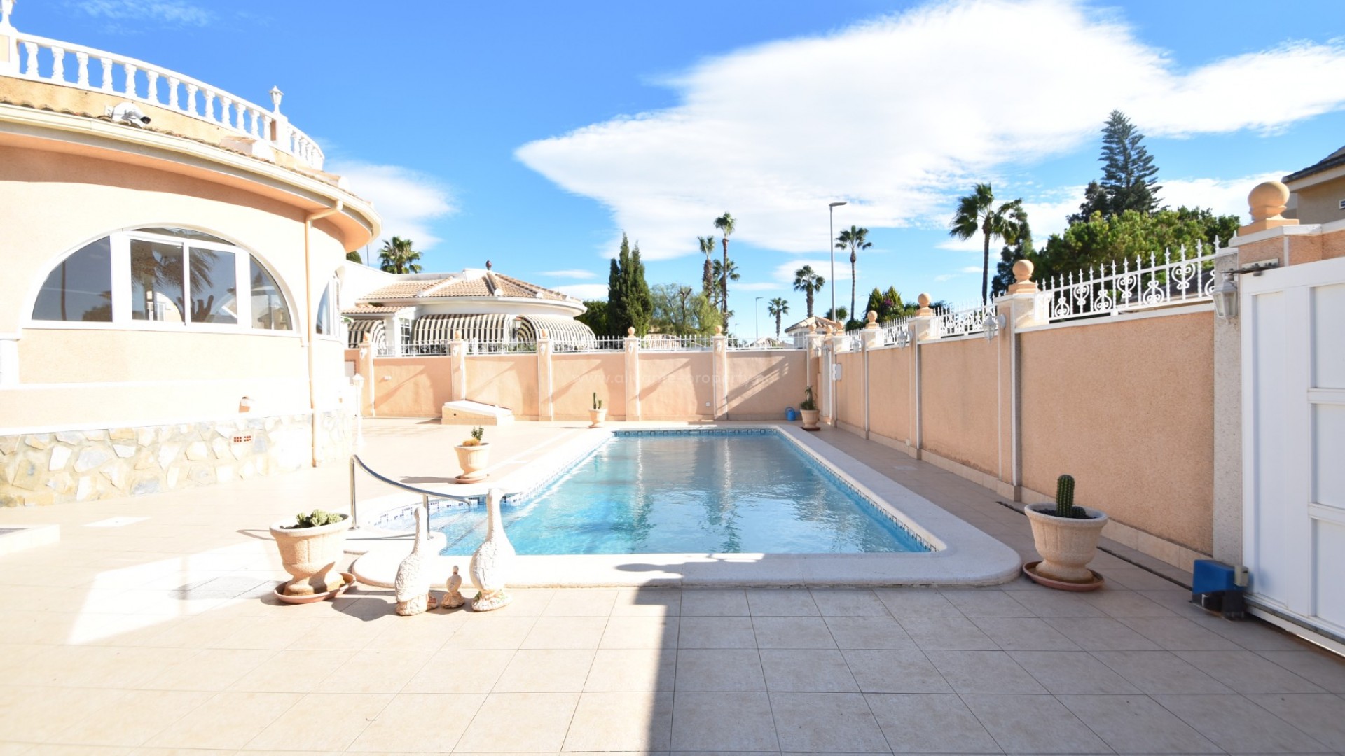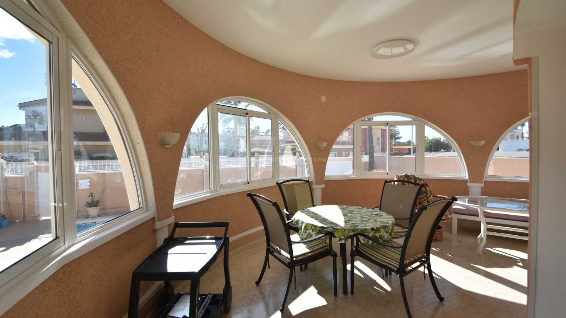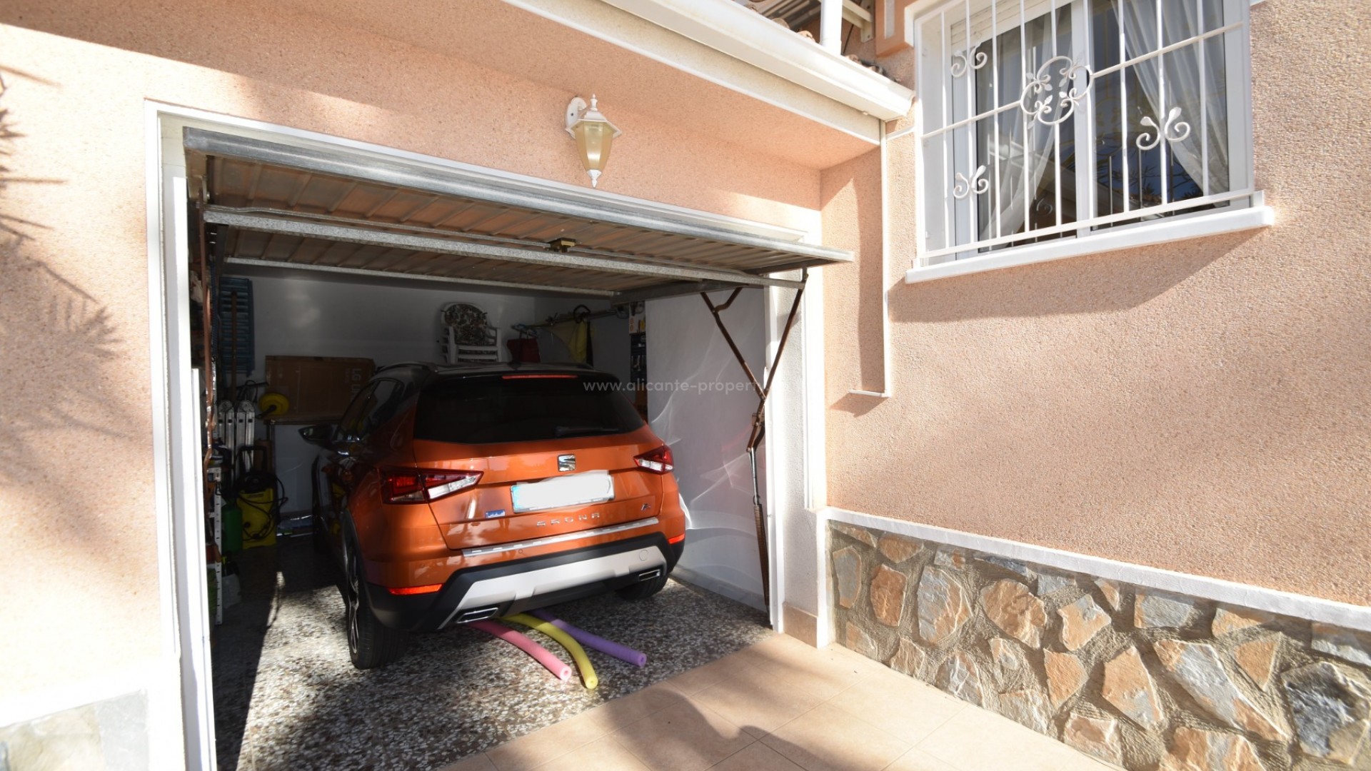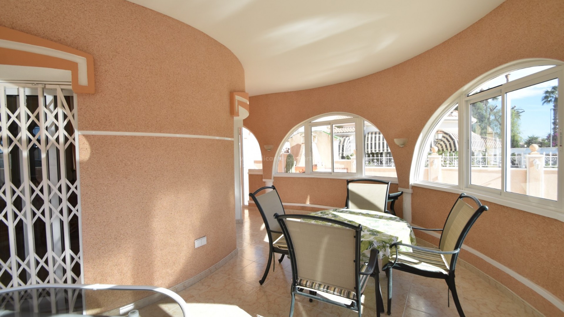 We are delighted to present to you this great property, located in the prestigious area of Doña Pepa, Ciudad Quesada, just a few steps from the La Laguna Spa Hotel and many bars and restaurants to enjoy! A short 10 minute drive finds you at the blue flag beaches of Guardamar del Segura and the centre of Ciudad Quesada is a 2 minute drive away. The villa sits on a generous plot, where outside you have a newly renovated swimming pool area, large 8 x 4 m swimming pool, outdoor shower, utility room, a full size garage for your car, various fruit trees and easy maintenance plants, and upstairs you have a large solarium with lovely views of the area and all day sun. The south facing villa has a large wraparound terrace, which has been glazed in, perfect for the winter and summer months alike. Inside there is a spacious living room with a seperate dining area, and a fully fitted kitchen. There are two double bedrooms with wardrobes and a family bathroom. The property has air conditioning and is sold partially furnished. Contact us today and do not miss your chance to own this wonderful villa in the sun!