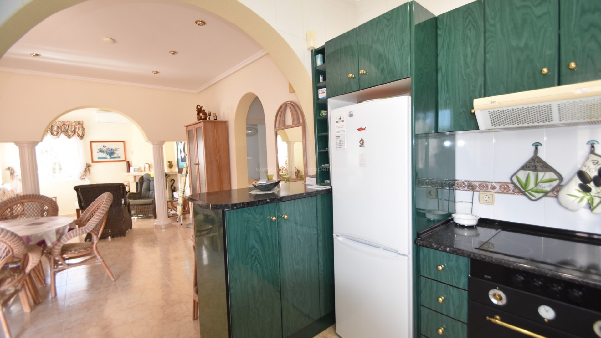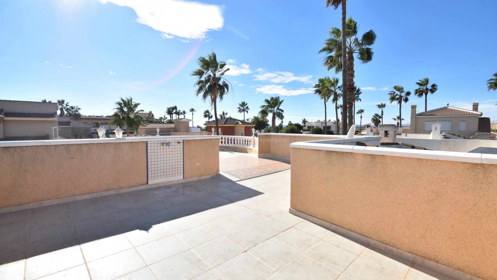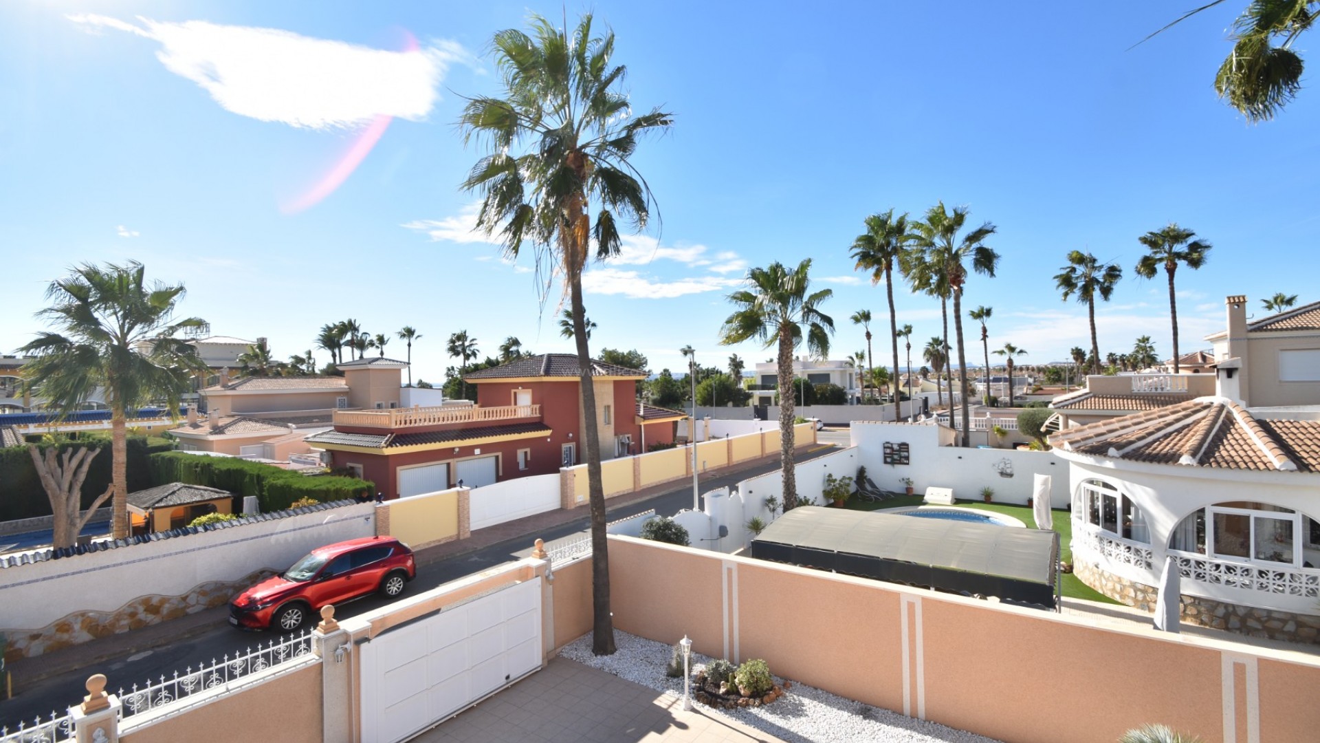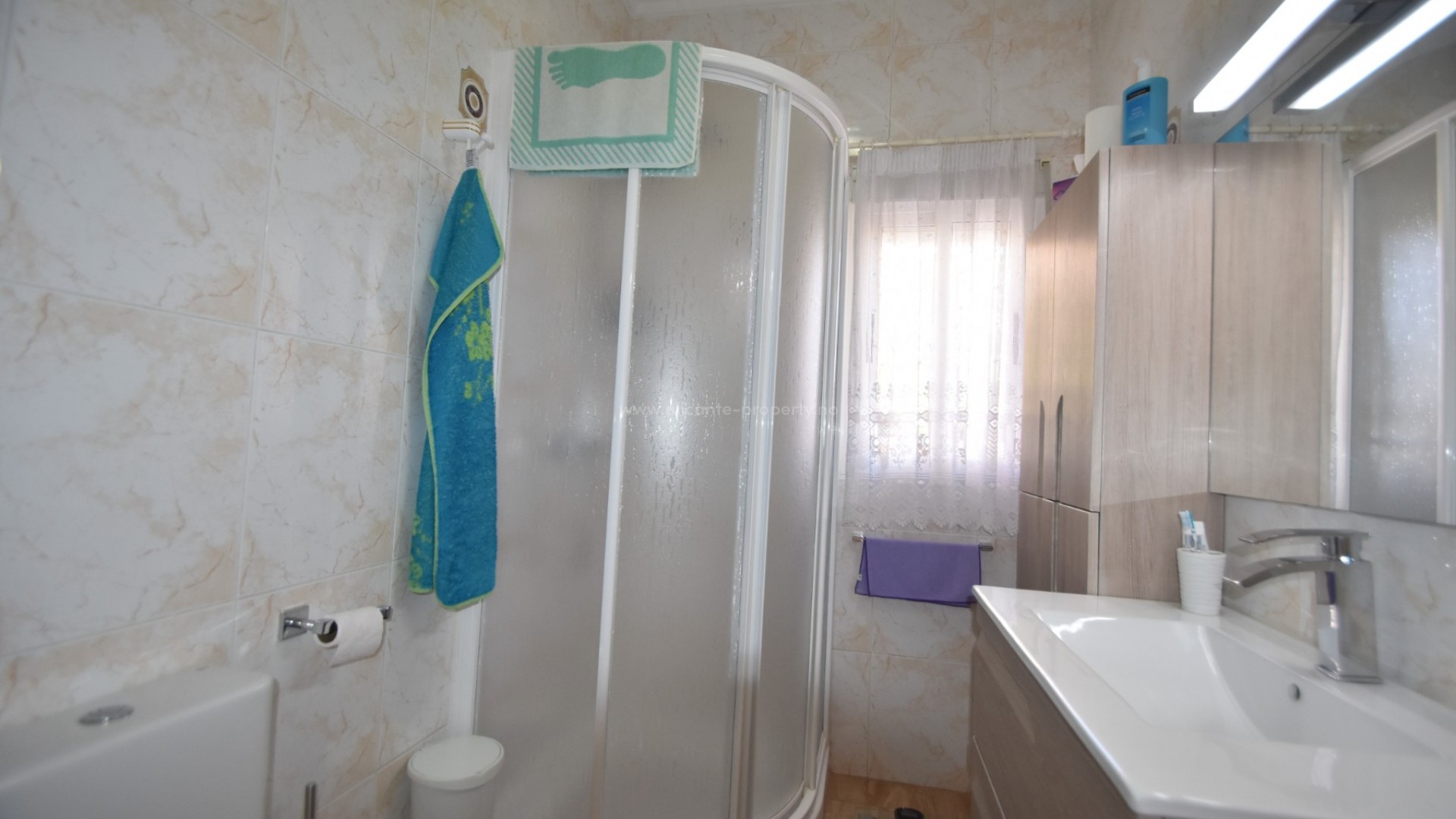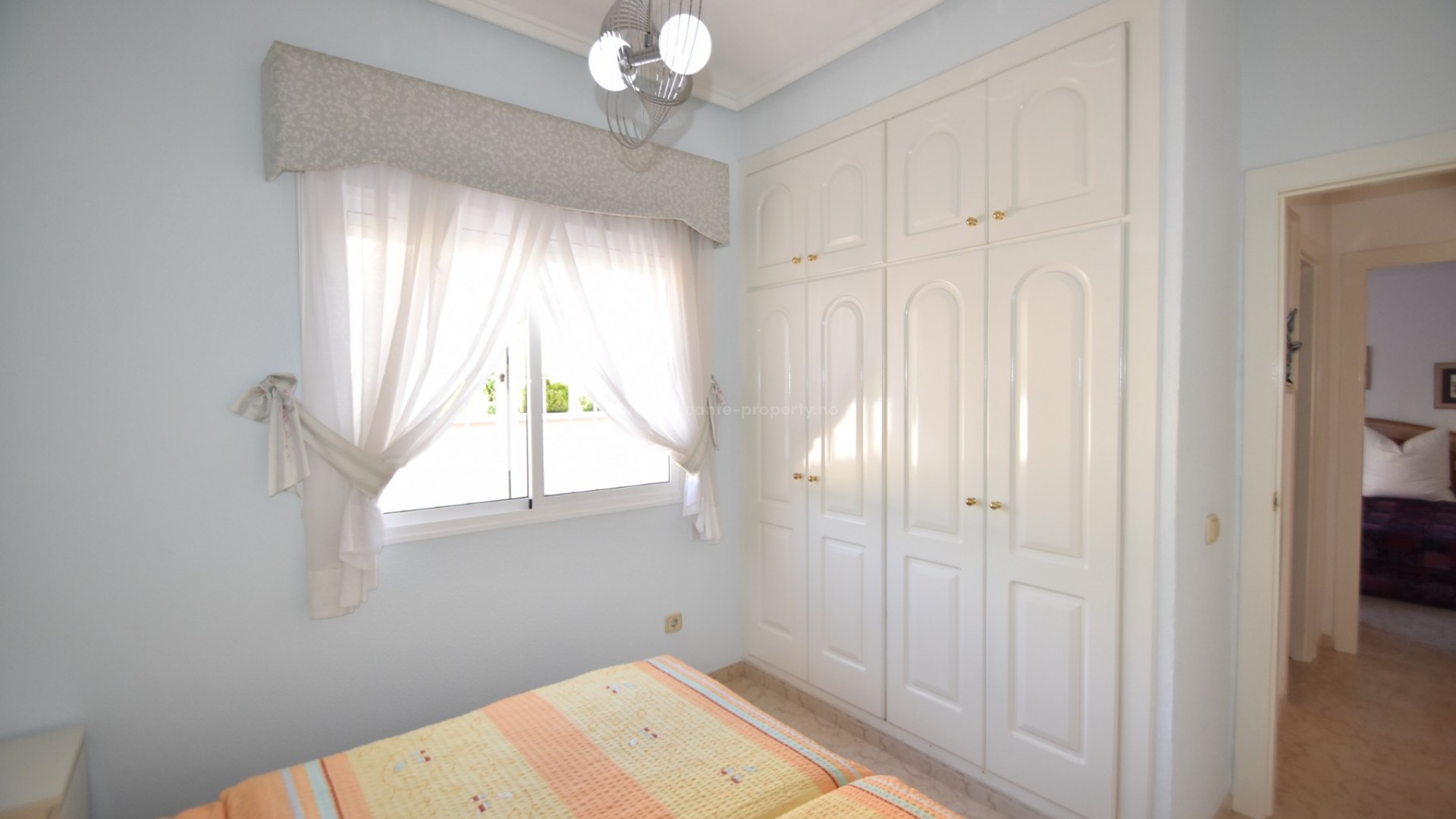 We are delighted to present to you this great property, located in the prestigious area of Doña Pepa, Ciudad Quesada, just a few steps from the La Laguna Spa Hotel and many bars and restaurants to enjoy! A short 10 minute drive finds you at the blue flag beaches of Guardamar del Segura and the centre of Ciudad Quesada is a 2 minute drive away. The villa sits on a generous plot, where outside you have a newly renovated swimming pool area, large 8 x 4 m swimming pool, outdoor shower, utility room, a full size garage for your car, various fruit trees and easy maintenance plants, and upstairs you have a large solarium with lovely views of the area and all day sun. The south facing villa has a large wraparound terrace, which has been glazed in, perfect for the winter and summer months alike. Inside there is a spacious living room with a seperate dining area, and a fully fitted kitchen. There are two double bedrooms with wardrobes and a family bathroom. The property has air conditioning and is sold partially furnished. Contact us today and do not miss your chance to own this wonderful villa in the sun!