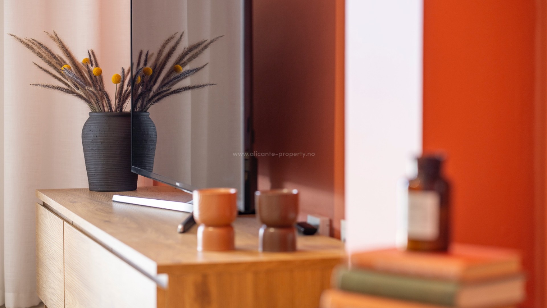 Charming top floor apartment located in the popular Albamar residential complex. The property has a built area of 79.27 m² and consists of two double bedrooms with fitted wardrobes and one family bathroom with shower. It also features a bright open-plan living and dining area with kitchen. From the living room there is direct access to a spacious west-facing balcony, perfect for enjoying the afternoon sun. The apartment is on the first floor with stair access and is sold fully furnished, ready to move into. From the balcony, an external staircase leads to a large private roof terrace with a storage room and built-in BBQ, offering views of the salt lakes of Torrevieja and La Mata. Includes a private parking space. The community offers several swimming pools, a children’s pool and well-maintained gardens. Located in Doña Pepa, within walking distance to amenities.