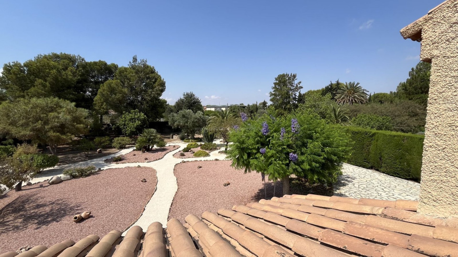 This two-storey detached villa offers 219 m² of built area on a spacious 2,000 m² plot, ideal for those seeking space and privacy. Inside, you'll find a large living room with fireplace, an open-plan kitchen with garden views, four bedrooms, two full bathrooms, and a private garage. The outdoor area features everything you need to enjoy your free time: barbecue area, mature garden, and large open spaces surrounded by trees and nature. Located in an exclusive residential area next to the Alicante Country Club, the property is just 10 minutes from Playa de San Juan and close to Alicante city centre, with its shops, restaurants, schools, and healthcare services. The villa is in La Almajada, a quiet neighbourhood in Mutxamel, a town with agricultural roots and a strong residential appeal. Over the last decades, it has become one of the most sought-after areas around Alicante, thanks to its excellent connections, green surroundings, and balance between urban life and natural setting. La Almajada offers a Mediterranean countryside feel with the convenience of nearby city life – perfect as a main home or holiday getaway. Looking for a spacious home near Alicante where you can unwind and enjoy the outdoors? Contact us today and discover this beautiful property designed for your lifestyle.