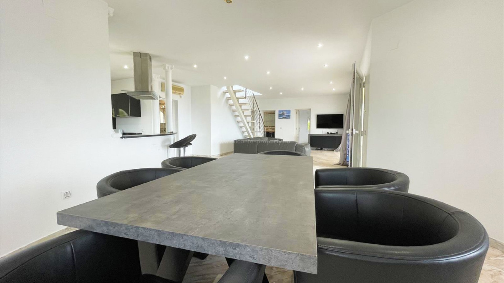 Luxury villa for sale in Calpe, Costa Blanca, with a 200 m2 infinity pool and 180° sea views, just 2 km from the beach. This 460 m2 villa, built on two levels plus a solarium with a tower, all connected by an interior staircase, sits on a 1,036 m2 south-facing plot, just 2 km from the beach, 400 m from restaurants, 1.7 km from the Aldi supermarket, and 3 km from the center of Calpe, with all the amenities the town offers. Distance to Alicante Airport: 74 km. The plot, which has fantastic views of the sea, the Ifach Rock, the Torre del Portet de Moraira, and the entire bay of Calpe, features a 200 m² private infinity pool with a waterfall, a barbecue area, several chill-out terraces, beautiful garden areas, parking for 3 vehicles, and a garage for 2 vehicles. The villa consists of 2 large living-dining rooms, 2 open-plan kitchens, 2 large covered terraces with panoramic sea views, 4 bedrooms, 4 bathrooms, 2 laundry rooms, and a 60 m² solarium. Extras included in the price: Inverter air conditioning Double glazing 180º views Elevated location Dead end street Call us for a viewing or more information. We work hard to help you find the home of your dreams. We'll show you this property if you're interested, or we'll search for you until we find what you're looking for. Then, we'll take care of all the necessary paperwork until the keys are handed over!