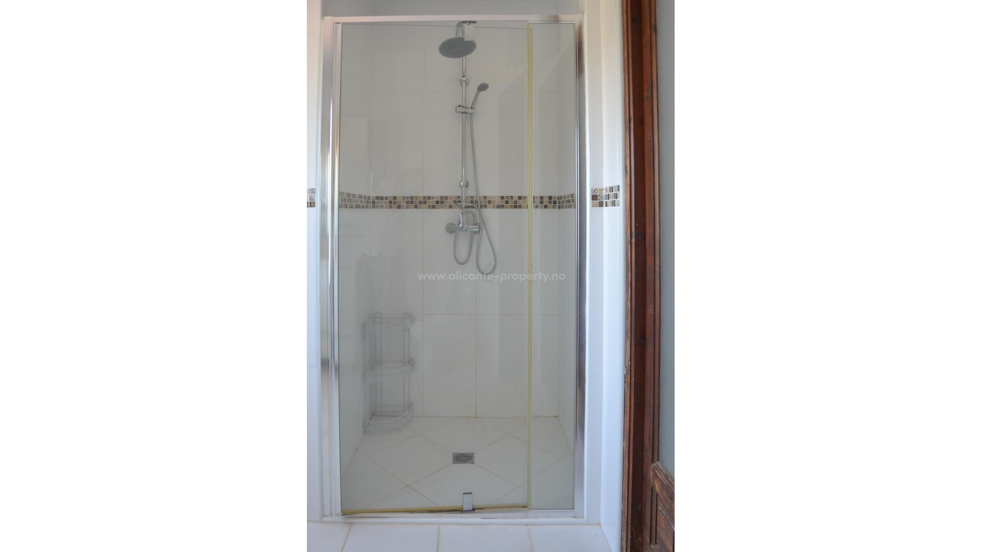 Splendid villa in Monte Pedreguer, with magnificent open views to the sea and valley. The property has a guest apartment, which could be rented on vacation, a great opportunity for investors. This beautiful villa is distributed over two floors. On the main floor, we find an entrance hall that leads to the fully equipped kitchen and open to the living / dining room. In said room we will see the fireplace and the great amplitude of this room and luminosity. From the spacious living room, we have direct access to the naya, where you can enjoy the magnificent views of the valley and the sea. A fantastic barbecue area to enjoy those summer nights. On the same floor we will see the three bedrooms, two bathrooms, both with shower. A laundry and storage room. If we continue to the ground floor, we will find the entrance hall, a large fully uncovered terrace, a spacious living/dining room with an open, fully equipped and functional kitchen. Three other bedrooms, one of them ensuite with a shower, as well as another family bathroom with a shower. On this floor, we will see another storage room, which could easily be converted into another bathroom. It should be noted that one of the bedrooms has access to a covered terrace, perfect for those sunsets. The property has a tourist license, therefore it is a good investment to be able to rent it. A large pool of about 12*6 meters, surrounded by large terraces. Nice barbecue area with summer kitchen and a covered bar. The villa enjoys a great tranquility and a lot of privacy. Located on a sloping plot.