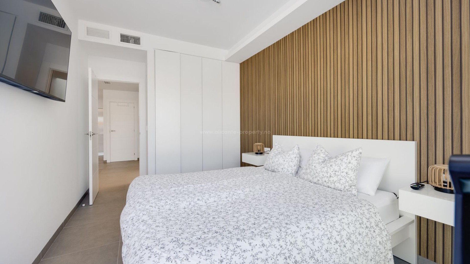 Unique opportunity. Modern new-build villa with private pool and views of the salt lakes for €349,900. Price reduced from €379,000 to €349,900. This exclusive new-build villa from 2024 is presented in Los Montesinos, Alicante, with south-facing orientation and open views of the salt lakes. A home with contemporary design, very bright, and finished with high-quality materials, ideal both as a permanent residence, second home, or investment. The property features three double bedrooms with excellent natural light and three full bathrooms with premium finishes. It has an open-plan kitchen integrated into the living-dining area, large windows that provide spaciousness and connection with the outdoors, and a modern layout designed to maximize comfort and functionality. Outside, it offers a private swimming pool, a low-maintenance garden, and a parking space within the plot. The property is equipped with air conditioning and electric shutters. Located in a quiet and well-connected residential area, with all services within short distance such as supermarkets, restaurants, leisure areas, and natural spaces. Just a few minutes by car from the beaches of Guardamar and Torrevieja, as well as several golf courses. Furniture is optional and not included in the price. It can be purchased for an additional amount of €10,000. An excellent opportunity to enjoy a modern home with privacy, open views, and very good value for money.