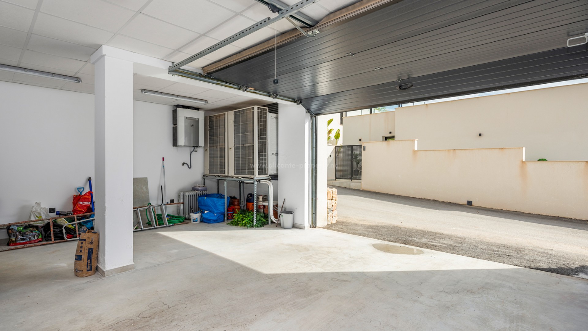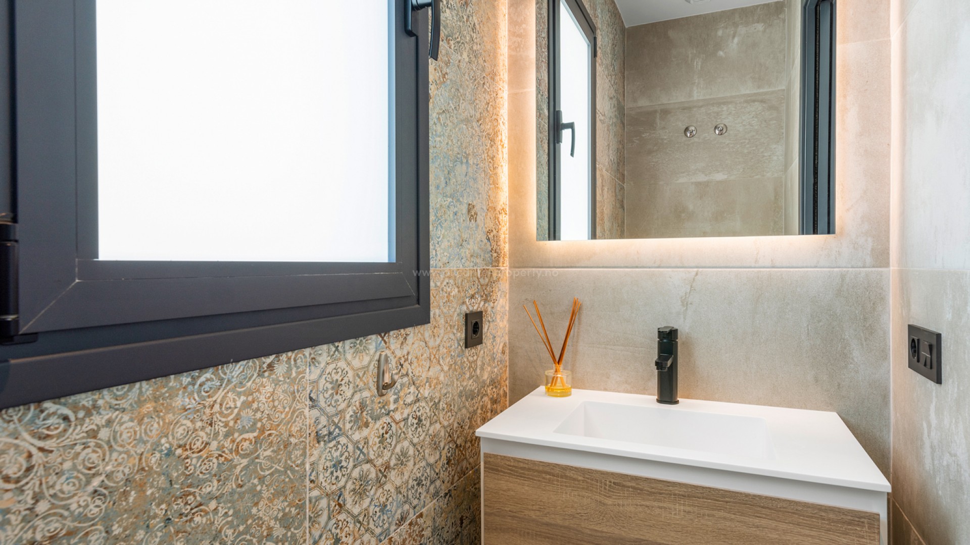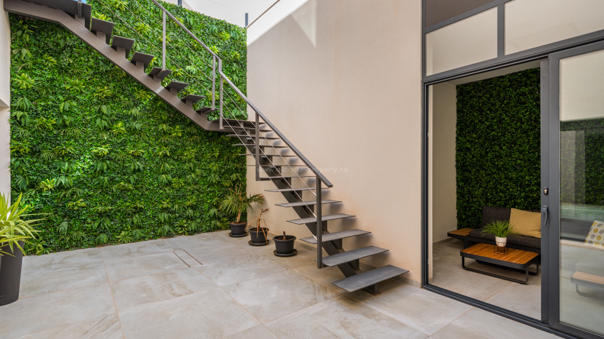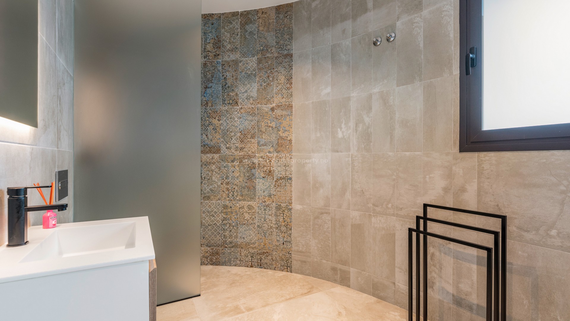 Luxury 5 bedroom / 6 bathroom villa with views in Ciudad Quesada. Beautiful luxury villa with a total living area of 333 m2 divided on two levels. It consists of a total of 5 double bedrooms, all of them with en-suite bathrooms, an additional bathroom and a guest toilet. The main floor consists of two bedrooms with en-suite bathrooms, a guest toilet, and a lovely open plan kitchen, living room and dining room. In the living area you have large sliding doors that opens up completely and gives a great indoor / outdoor living feature. The lower level consists of three bedrooms with en-suite bathrooms, a kitchen and utility room, a large living room, a bathroom, two storage rooms. The rooms in this level have access to a lovely patio. From the living room on this level you have direct access to the garage and techical room. The villa is equipped with central air condition (hot/cold), underfloor heating in the bathrooms, double glazes windows and security door. Outdoor areaThe villa is set on a lovely corner plot of 462 m2. The pool area is east facing, giving you amazing views over the surrounding area and to the sea. Around the pool you have a beautiful tiled area with space for several outdoor seating areas and sun beds. From the pool area you have external stairs leading you to the large roof terrace. Here you have one part that is tiled and the other part with artificial grass, both of them with a lot of space for outdoor entertainment and with amazing views. At the entrance to the house you have another lovely tiled garden area that faces west. This area is perfect to enjoy the afternoon / evening sun. At the lower level you can find a large tiled patio with an artificial vertical garden. This patio can be access from the garden through external stairs, and also from the living room and 2 of the bedrooms in the lower level.