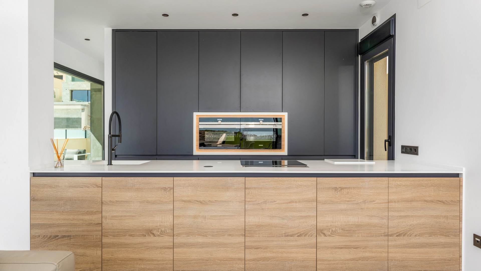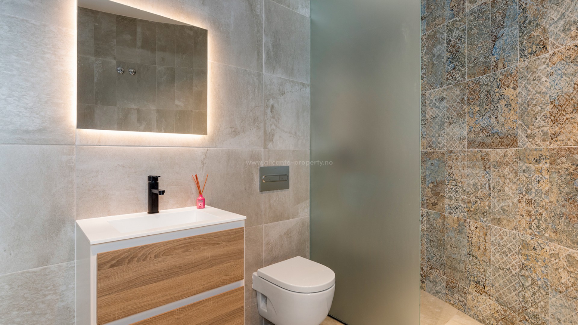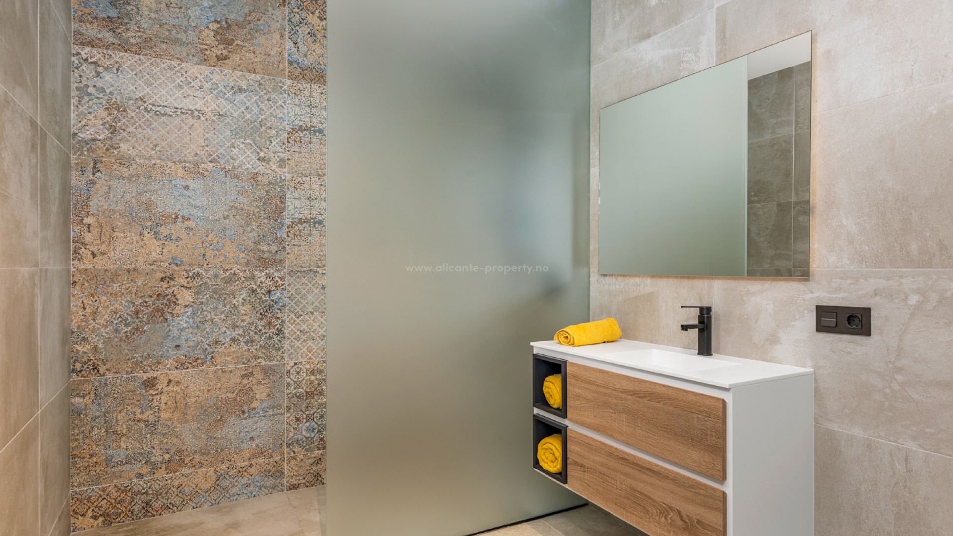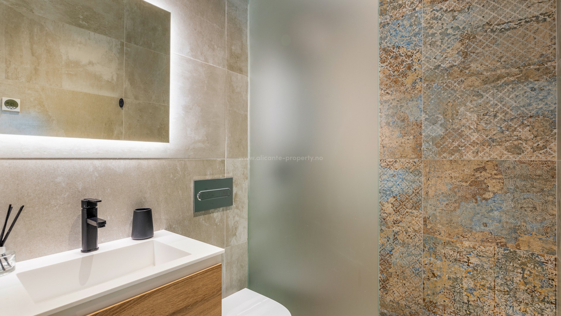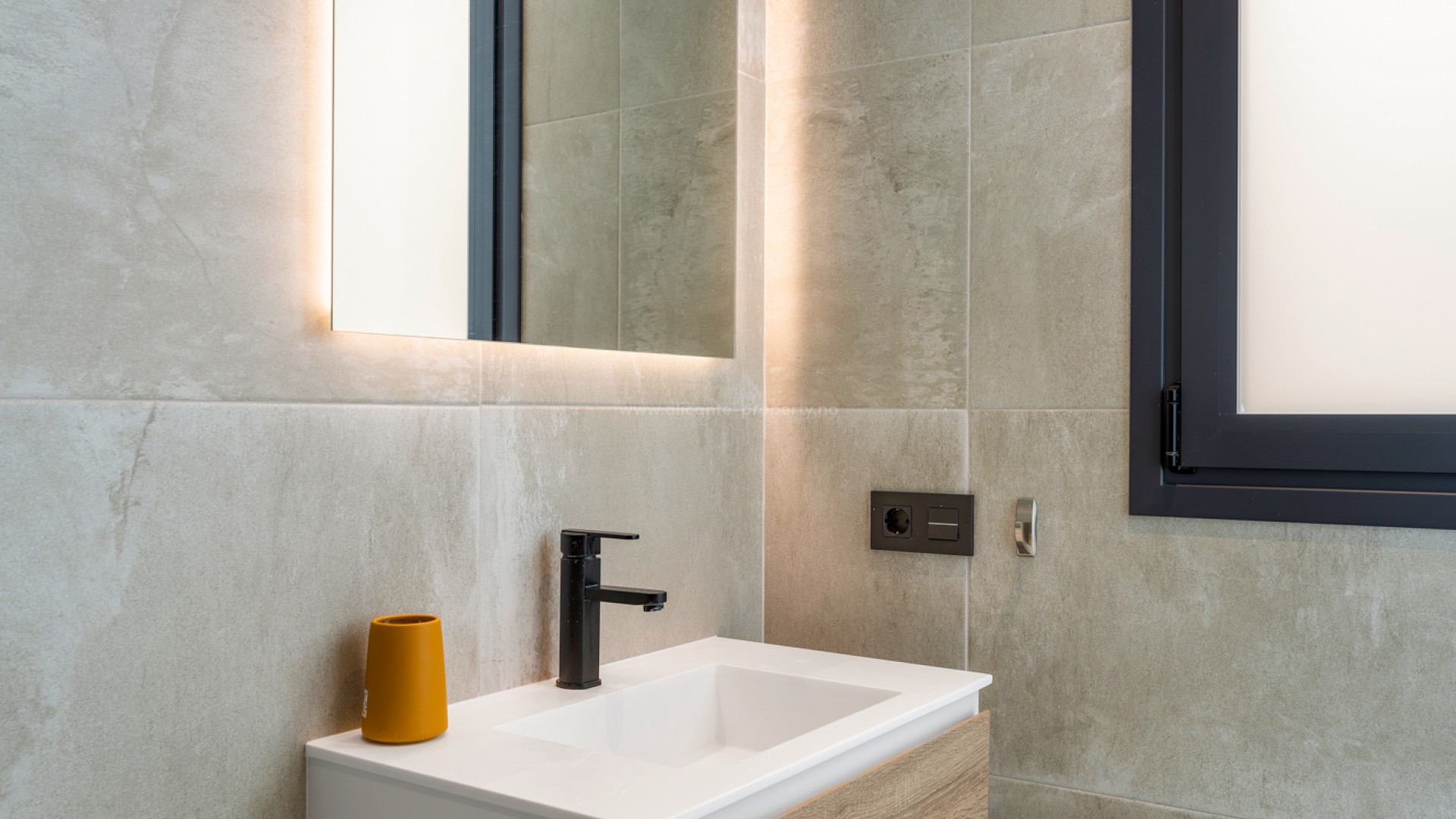 Luxury 5 bedroom / 6 bathroom villa with views in Ciudad Quesada. Beautiful luxury villa with a total living area of 333 m2 divided on two levels. It consists of a total of 5 double bedrooms, all of them with en-suite bathrooms, an additional bathroom and a guest toilet. The main floor consists of two bedrooms with en-suite bathrooms, a guest toilet, and a lovely open plan kitchen, living room and dining room. In the living area you have large sliding doors that opens up completely and gives a great indoor / outdoor living feature. The lower level consists of three bedrooms with en-suite bathrooms, a kitchen and utility room, a large living room, a bathroom, two storage rooms. The rooms in this level have access to a lovely patio. From the living room on this level you have direct access to the garage and techical room. The villa is equipped with central air condition (hot/cold), underfloor heating in the bathrooms, double glazes windows and security door. Outdoor areaThe villa is set on a lovely corner plot of 462 m2. The pool area is east facing, giving you amazing views over the surrounding area and to the sea. Around the pool you have a beautiful tiled area with space for several outdoor seating areas and sun beds. From the pool area you have external stairs leading you to the large roof terrace. Here you have one part that is tiled and the other part with artificial grass, both of them with a lot of space for outdoor entertainment and with amazing views. At the entrance to the house you have another lovely tiled garden area that faces west. This area is perfect to enjoy the afternoon / evening sun. At the lower level you can find a large tiled patio with an artificial vertical garden. This patio can be access from the garden through external stairs, and also from the living room and 2 of the bedrooms in the lower level.