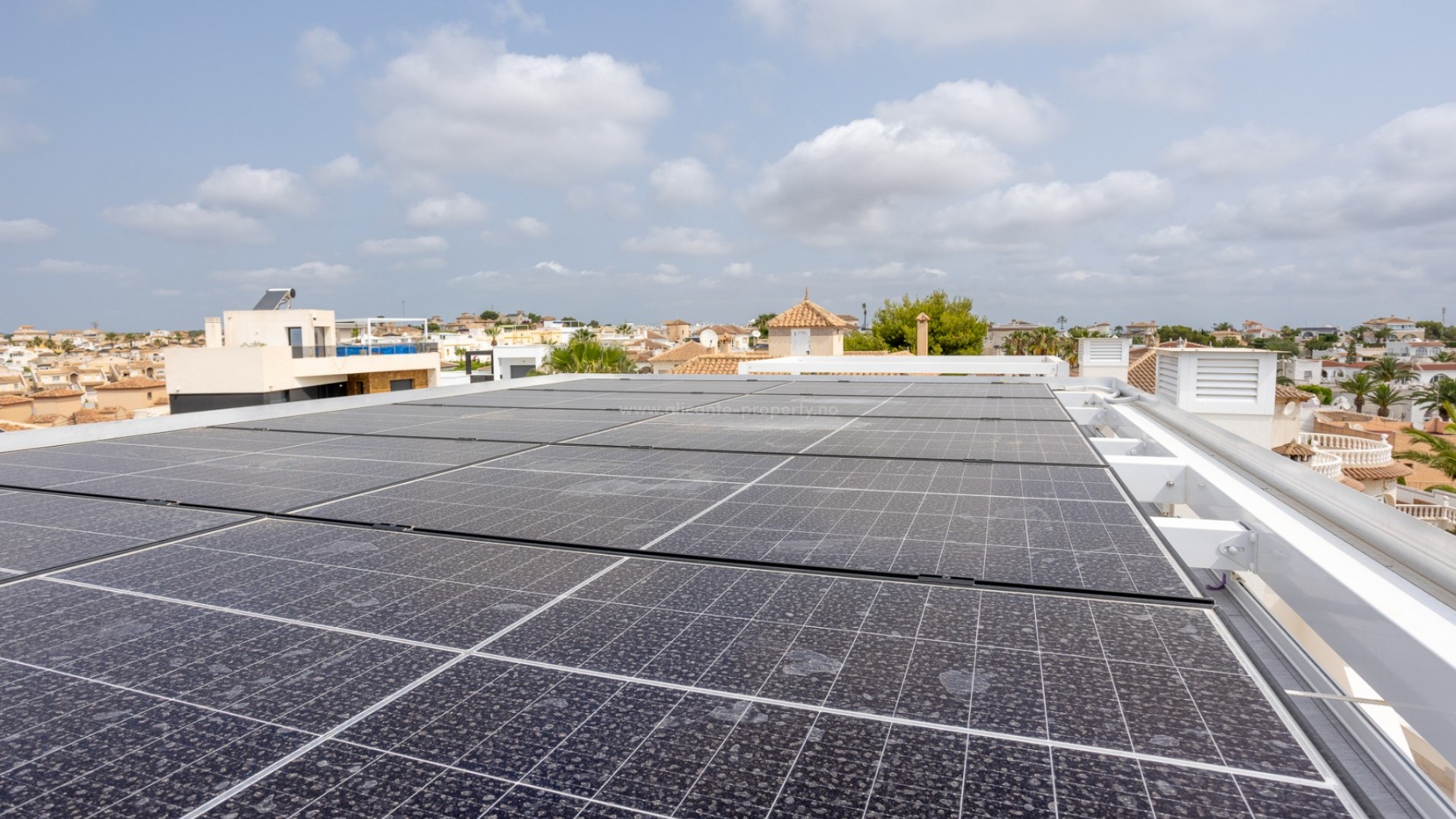 This excellent 2 bedroom, 2 bathroom apartment in San Miguel de Salinas - Blue Lagoon offers a comfortable living space of 80m2. The penthouse is located on the 1st floor and has a very nice communal swimming pool and a private underground parking space with a large lockable storage room. The apartment has an open kitchen, which is perfect for receiving your guests and is fully equipped with household appliances. The property has a beautiful solarium, from which you can also see the sea and has a beautiful, large and complete outdoor kitchen, which even has extra storage space! Naturally, the property has air conditioning, but an alarm and a reinforced door also provide extra security. The balcony, which is accessible from the living area, offers a wonderful place to enjoy the panoramic view. Conveniently located just 15 minutes from the beach, 45 minutes from the airport and 5 minutes from both amenities and golf courses, this apartment is ideal for those looking for a peaceful lifestyle with good connections. The communal pool, garage and intercom system add to the convenience and comfort of this property. With the added features of an awning, mosquito nets and an outdoor kitchen/BBQ area, this apartment offers a wonderful living experience. Don't miss the opportunity to view this beautiful property!