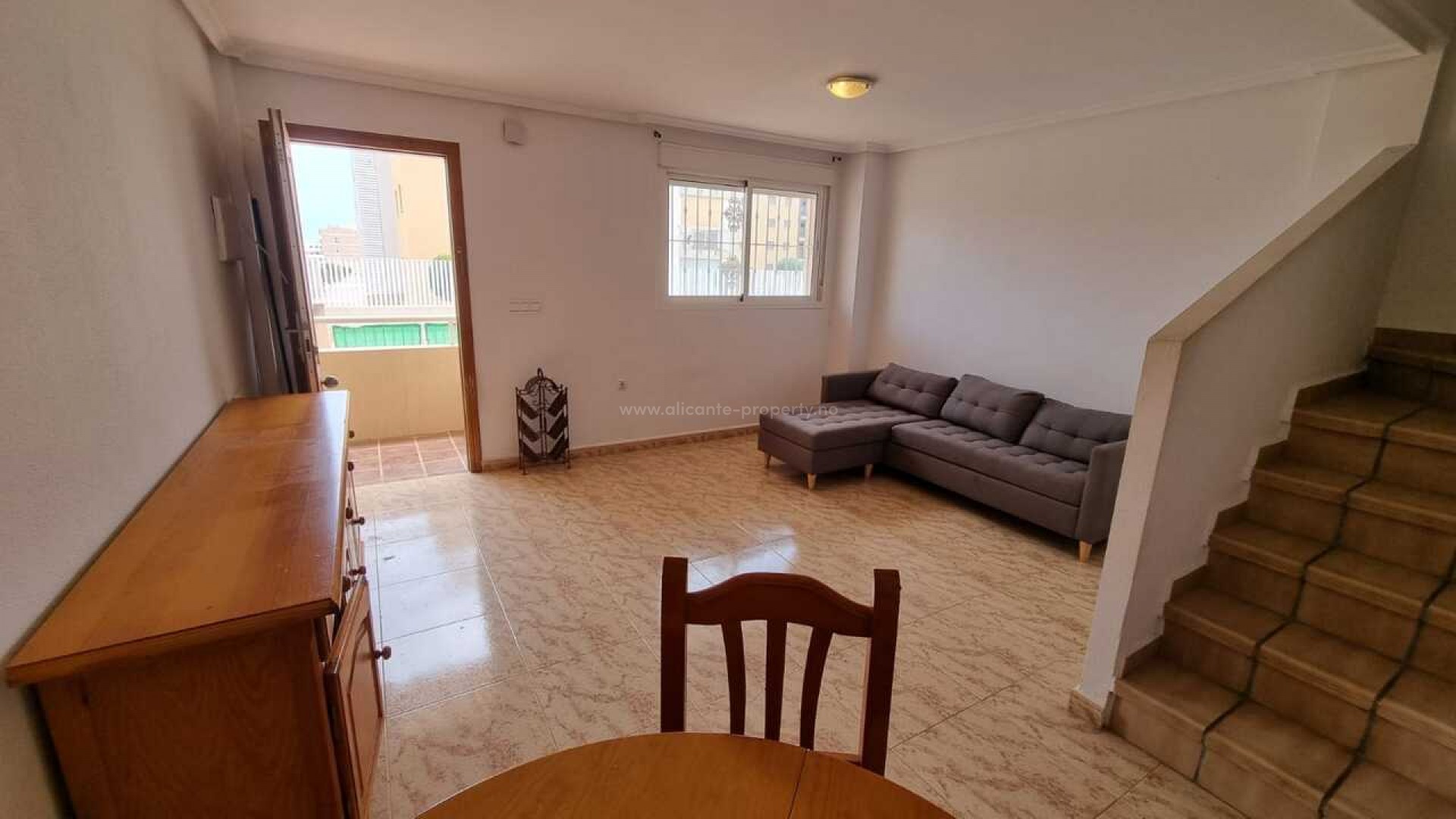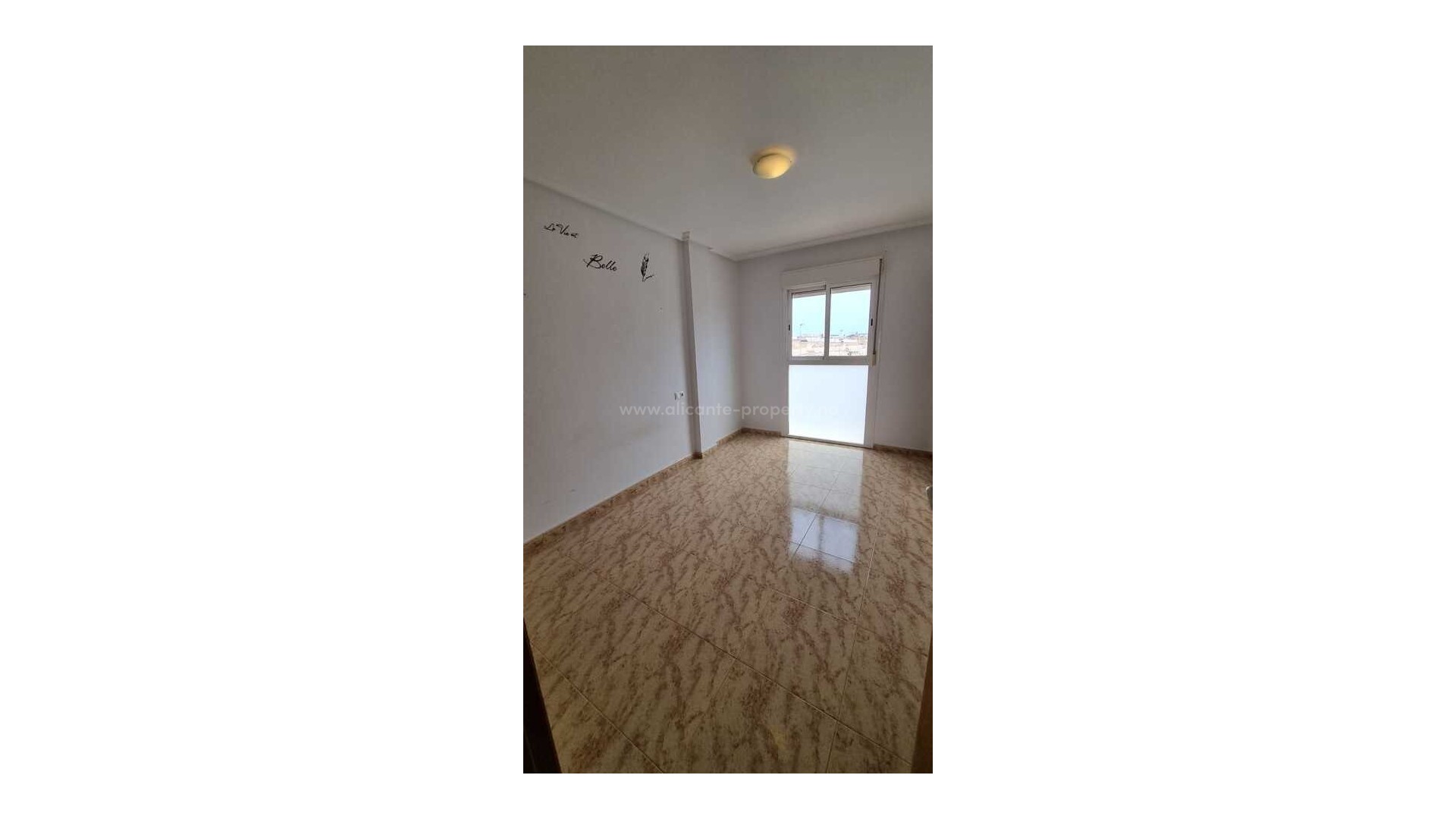 We present this townhouse triplex in Villamartín, Orihuela Costa, in a charming residential area consisting of only 9 homes. Enjoy a home with a privileged location, just 3 km from La Zenia Beach and 5 minutes from La Zenia Boulevard Shopping Center, surrounded by supermarkets, restaurants, and all the services you need.The property features a communal pool, which you can access directly from the back of the house. Its East-facing orientation ensures natural light and warmth throughout the day. Additionally, at the front of the house, a spacious patio allows you to park your vehicle or simply enjoy great moments with friends and family.Inside, upon entering, we find a cozy living room, a guest toilet, a small bedroom, and a practical open-plan kitchen equipped with access to the rear terrace. From here, you can reach the pool to enjoy the sun and tranquility.On the upper floor, we find two bedrooms: one with an en-suite bathroom and a walk-in closet, perfect for keeping everything organized. There is also another full bathroom with a bathtub. And on the highest floor, a solarium, ideal for sunbathing or simply relaxing.If you are looking for a perfect home to live in all year round or to enjoy your holidays, don't miss this opportunity. Contact us for more information and schedule your visit!