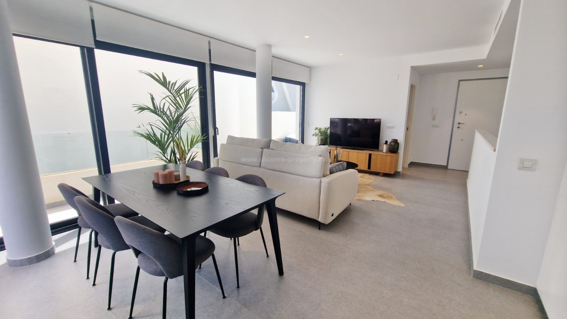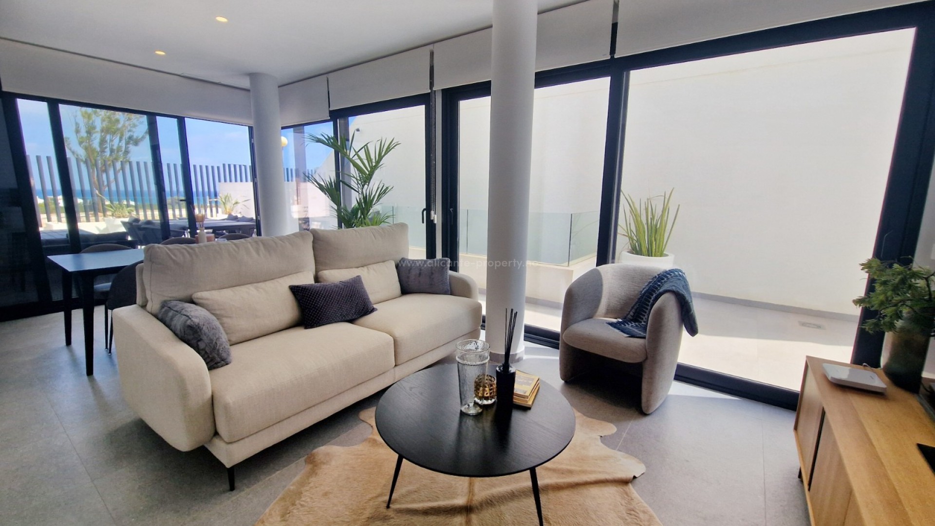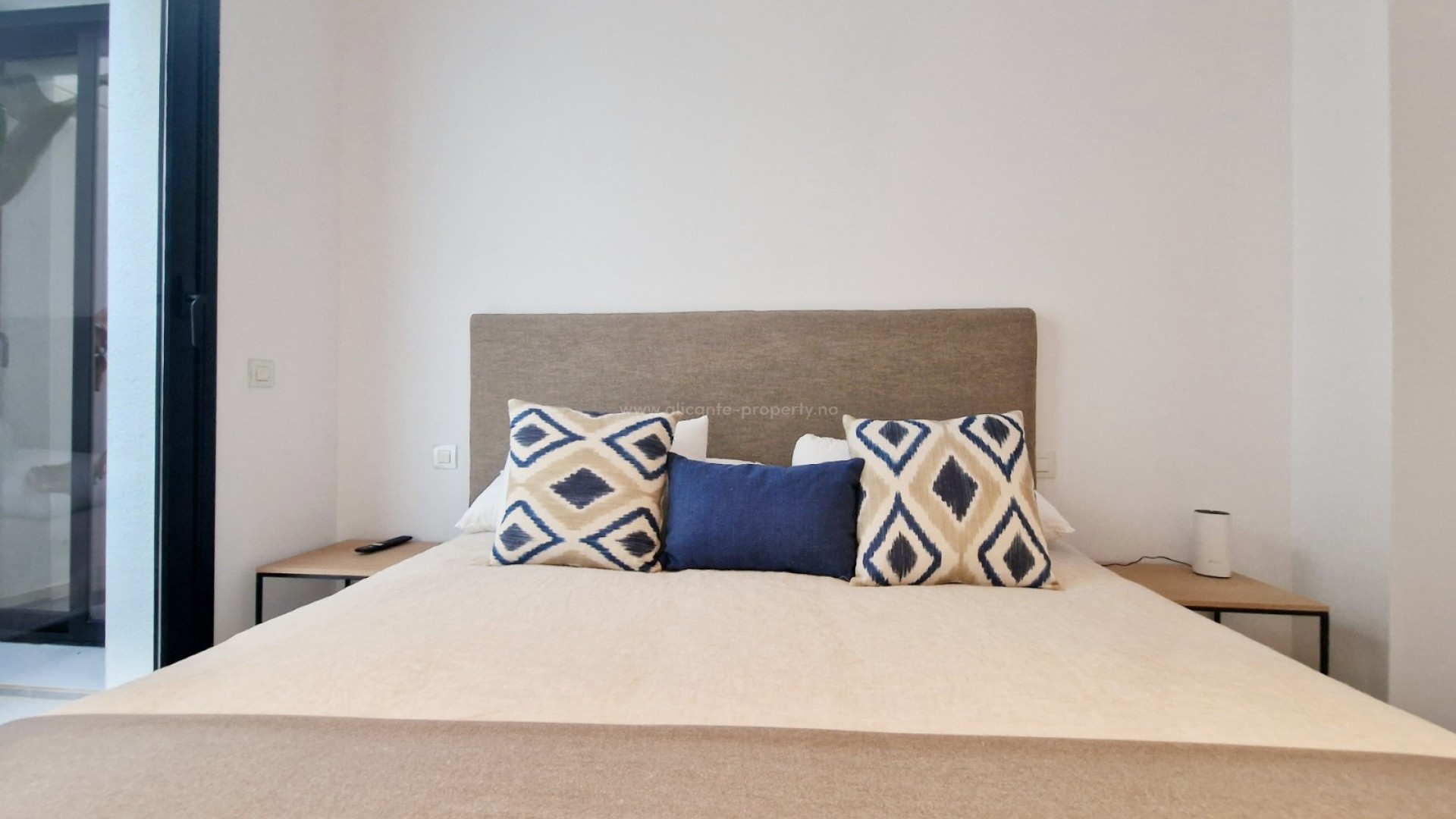 Welcome to this exceptional 4-bedroom modern villa for sale in Guardamar del Segura, ideally located in the exclusive residential community of Guardamar Hills. Just 800 metres from the golden beaches of the Costa Blanca and close to the vibrant town centre, this luxury home offers the perfect blend of Mediterranean lifestyle, convenience, and contemporary design. Whether you're searching for a key-ready villa with sea views or a spacious second home in a prime location, this property stands out as a unique opportunity within one of the most desirable areas of the South Costa Blanca. Contemporary Design Spacious Living Set on a private plot of approximately 210 m², the villa boasts a constructed area of 150 m² and is distributed across two bright and functional levels. The layout has been thoughtfully designed to maximise natural light, open space, and indoor-outdoor living. The main level features a stylish open-plan living and dining area, complemented by a modern fully equipped kitchen. Floor-to-ceiling windows connect the interior seamlessly with a 40 m² ground-floor terrace, ideal for alfresco dining, entertaining guests, or enjoying the Spanish sunshine with family and friends. Downstairs, the lower floor offers four spacious double bedrooms, including two en-suite bathrooms, plus a third full bathroom. The high ceilings, tasteful décor, and quality finishes throughout ensure comfort and practicality in every space. Private Rooftop Solarium with Pool Panoramic Views One of the most appealing features of this villa in Guardamar Hills is the stunning private rooftop solarium, complete with a private swimming pool and chill-out area. From here, enjoy panoramic sea views, sunsets over the mountains, and relaxing evenings under the stars. This exclusive space elevates the lifestyle appeal of the property and makes it perfect for both year-round living and holiday enjoyment. Key-Ready Fully Furnished This key-ready property is offered in excellent condition and comes fully furnished with high-end furniture and fittings mdash; ready for immediate occupancy or rental. The home is located within a secure gated community that offers peace of mind and a sense of privacy while being just a short walk from the beach, shops, cafés, and all local amenities. A private garage is included, providing secure parking and additional storage space. Prime Location on the Costa Blanca South Guardamar del Segura is one of the most charming towns on the Costa Blanca South, known for its blue flag beaches, sand dunes, pine forests, and relaxed coastal lifestyle. The Guardamar Hills area is especially popular among international buyers for its elevated sea views, modern homes, and quiet surroundings mdash; yet everything is within walking distance. With Alicante Airport just 30 minutes away and easy motorway access, this is an ideal base for exploring the region or commuting seasonally. ✅ Why Choose This Sea View Villa in Guardamar Hills? 4 spacious bedrooms 4 bathrooms Modern design with open-plan layout Private rooftop solarium with pool Sea views just 800m from the beach Fully furnished, key-ready condition Private garage large terraces Gated community in a prime location Whether you're searching for a modern villa for sale in Guardamar del Segura, a second home in Costa Blanca with sea views, or an investment-ready holiday property near the beach, this stunning home delivers on all fronts. Contact us today to arrange your viewing and take the next step toward your new lifestyle in the sun.