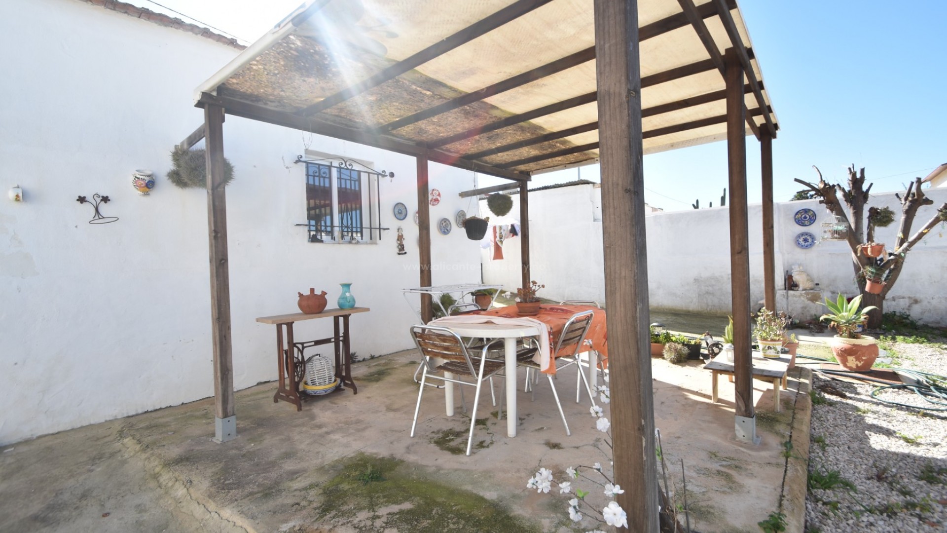 Estamos encantados de presentarles esta fabulosa propiedad rural, ubicada en una calle tranquila y encantadora, pero a poca distancia de la ciudad de Daya Nueva y a solo un corto trayecto en automóvil de la ciudad más grande de Dolores. Hermosamente ubicada a lo largo de la carretera y rodeada de campos de agricultores, la casa ofrece la oportunidad perfecta para que alguien disfrute de la vida tranquila y posiblemente cultive sus propios cultivos en las tierras de cultivo detrás de las cuales pertenece la casa. La villa cuenta con un encantador recibidor/comedor, desde donde se accede mediante escaleras a un enorme dormitorio principal en el entrepiso con vestidor. Desde el comedor se accede a la acogedora sala de estar, otro dormitorio y el baño familiar. Desde la cocina también se accede a un patio interior, perfecto tanto para los días de invierno como de verano, y a otro amplio dormitorio con mayor privacidad y entrada independiente. En la parte trasera de la villa se encuentra todo el jardín, su propia piscina privada, una encantadora pérgola para cenar a la sombra, dos trasteros y su parcela de verduras o de granja. ¡Contáctanos hoy y no pierdas esta maravillosa oportunidad de ser dueño de un pedazo de la campiña española!
