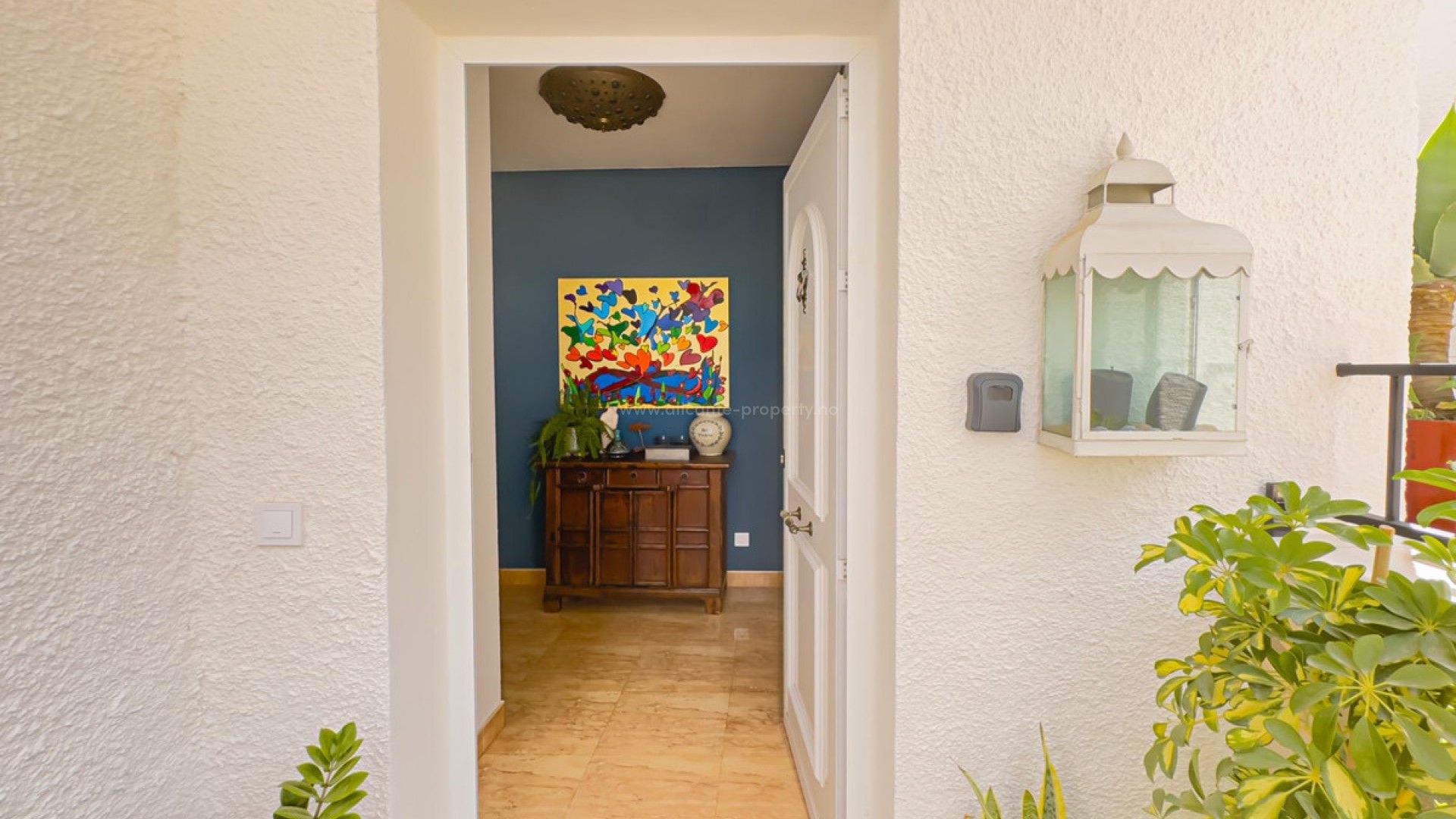 Este chalet reformado se encuentra a un paso de la naturaleza, en una zona tranquila y con vistas impresionantes. La casa está dividida en dos plantas no comunicadas entre sí, cada una con su propia entrada. En la planta principal se accede a un recibidor con un baño de cortesía. A continuación, se entra en una amplia sala con grandes ventanales, abundante luz natural y vistas al mar. El espacio es diáfano, pero está dividido en tres zonas: cocina americana, comedor y salón. Además, en esta planta, que ha sido completamente reformada, hay un dormitorio amplio con baño en suite. Desde el salón se accede a una terraza con una zona cubierta, perfecta para disfrutar de las vistas al mar y a la montaña, así como de la tranquilidad del entorno. En este nivel también se encuentra la piscina climatizada. Junto a la casa hay tres estancias pequeñas que se utilizan como trastero, una amplia lavandería y, en la parte trasera de la vivienda, dos dormitorios comunicados entre sí, cada uno con su propio baño. La parcela es llana en la parte superior, donde se sitúa la entrada a la planta principal, y desciende suavemente hacia abajo, donde hay un bonito jardín de fácil mantenimiento. En una esquina de la parcela hay un tipi con un diámetro de 6 metros. La casa es perfecta para una familia con niños adolescentes o para una pareja que recibe muchas visitas. Desde la vivienda hay acceso directo a un bosque que ofrece múltiples posibilidades para pasear. Además, Altea, Alfaz del Pi, La Nucía y el mar se encuentran a menos de 10 minutos en coche.