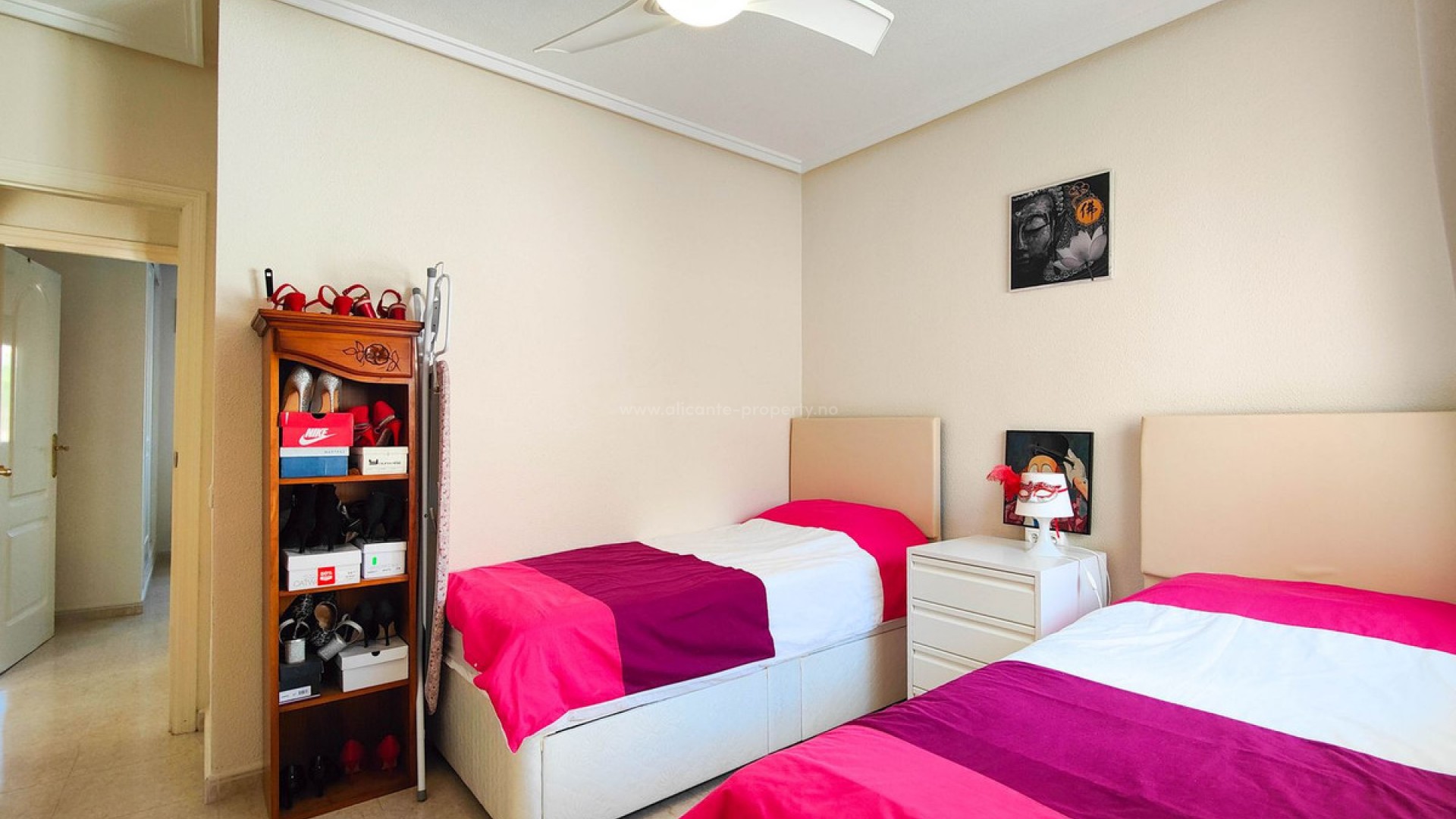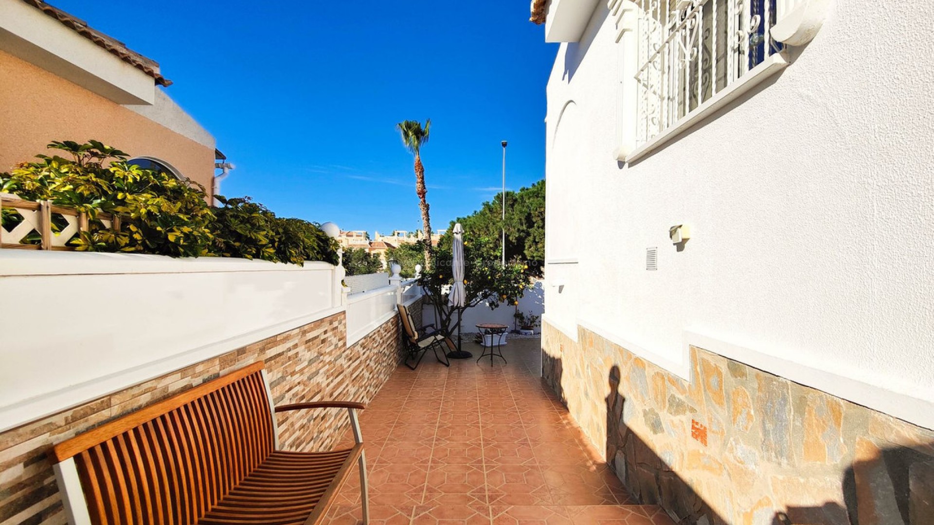 Se vende chalet pareado con solárium y jardín frente a zona verde en Ciudad Quesada Presentamos este precioso chalet pareado ubicado en una parcela de 200 m² en una zona tranquila y muy demandada de Ciudad Quesada, Rojales. La vivienda se encuentra justo enfrente de una amplia zona verde, lo que garantiza vistas totalmente despejadas, gran privacidad y una agradable sensación de amplitud difícil de encontrar. La propiedad está distribuida íntegramente en una sola planta y construida en altura con cámara de aire, lo que mejora el aislamiento y el confort durante todo el año. Cuenta con 2 dormitorios con armarios empotrados y 2 baños completos, uno de ellos en suite. El salón es amplio y muy luminoso gracias a su excelente orientación oeste, y dispone de aire acondicionado. Todas las estancias cuentan además con ventiladores de techo. La cocina es independiente y se entrega totalmente equipada. En el exterior destaca su jardín privado de aproximadamente 100 m², perfecto para disfrutar del clima de la Costa Blanca, así como un porche de unos 15 m² orientado al oeste con preciosas vistas abiertas a la zona verde. La propiedad también dispone de un solárium privado de 20 m² ideal como zona de relax, entrada para poder aparcar el coche dentro de la parcela y trastero con lavadora. La fachada y los muros exteriores han sido recientemente pintados y la vivienda se vende amueblada con electrodomésticos incluidos. La urbanización cuenta con piscina comunitaria y la vivienda se encuentra cerca del centro de Ciudad Quesada, con todos los servicios, supermercados, restaurantes y zonas de ocio a poca distancia. Una excelente oportunidad tanto como residencia habitual, vivienda vacacional o inversión en una de las zonas más consolidadas de la Costa Blanca Sur.