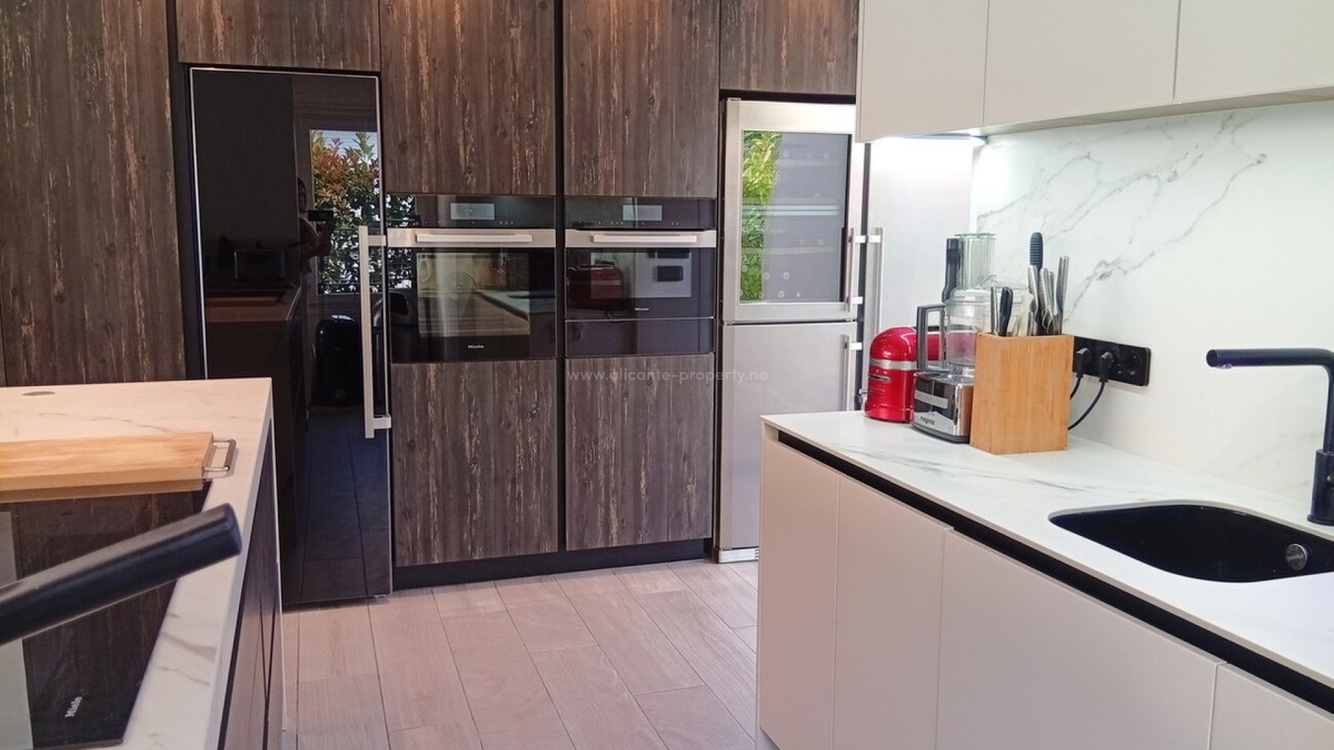 Esta exclusiva villa de reventa se encuentra en una parcela de 500 m² en la prestigiosa urbanización de La Finca Golf en Algorfa, uno de los resorts de golf más codiciados de la Costa Blanca. La propiedad combina comodidad, privacidad y materiales de alta calidad en un diseño elegante e inusual, ideal para aquellos que buscan algo único bajo el sol español.Distribución y espacio habitableLa villa cuenta con 2 amplios dormitorios (con la posibilidad de crear un tercer dormitorio, actualmente amueblado como vestidor/oficina), 2 baños modernos, un aseo de invitados separado y una sala de estar de planta abierta con mucha luz natural. Los baños tienen calefacción por suelo radiante para mayor comodidad.La cocina abierta está equipada con electrodomésticos de alta gama de marcas como Miele y Liebherr, lo que subraya inmediatamente la calidad de esta propiedad. El acabado en toda la casa es de alto nivel, utilizando materiales duraderos y lujosos.Vida al aire libre y confortDisfrute del Mediterráneo al aire libre en la terraza orientada al este, con vistas a un hermoso jardín lleno de palmeras, flores y árboles frutales. Hay una terraza cubierta con barbacoa de obra, perfecta para veladas acogedoras.La piscina privada con amplios escalones es ideal para relajarse, y además también tiene acceso a una piscina comunitaria dentro de la urbanización.Facilidades extras:- Sistema de domótica para iluminación, persianas y más- Persianas eléctricas- Climatización- Sistema de alarma- Punto de recarga para coches eléctricos- Televisión vía satélite- Toldo (sombrilla)Ubicación – La Finca Golf ResortEsta propiedad se encuentra en el corazón de La Finca Golf, un exclusivo resort de golf en Algorfa, conocido por su campo de golf de campeonato de 18 hoyos, hotel de lujo con spa, gimnasio, pistas de tenis y pádel. Aquí se vive en un entorno verde y bien cuidado con una mezcla ideal de tranquilidad e instalaciones.El complejo está a solo 15 minutos en coche de las playas de arena de Guardamar y a 35 minutos del aeropuerto de Alicante.ExtraEl mobiliario no está incluido, pero existe la posibilidad de toma de posesión.Déjate sorprender por esta villa única en una ubicación privilegiada en la Costa Blanca. Póngase en contacto con nosotros hoy mismo para concertar una visita o para obtener más información.