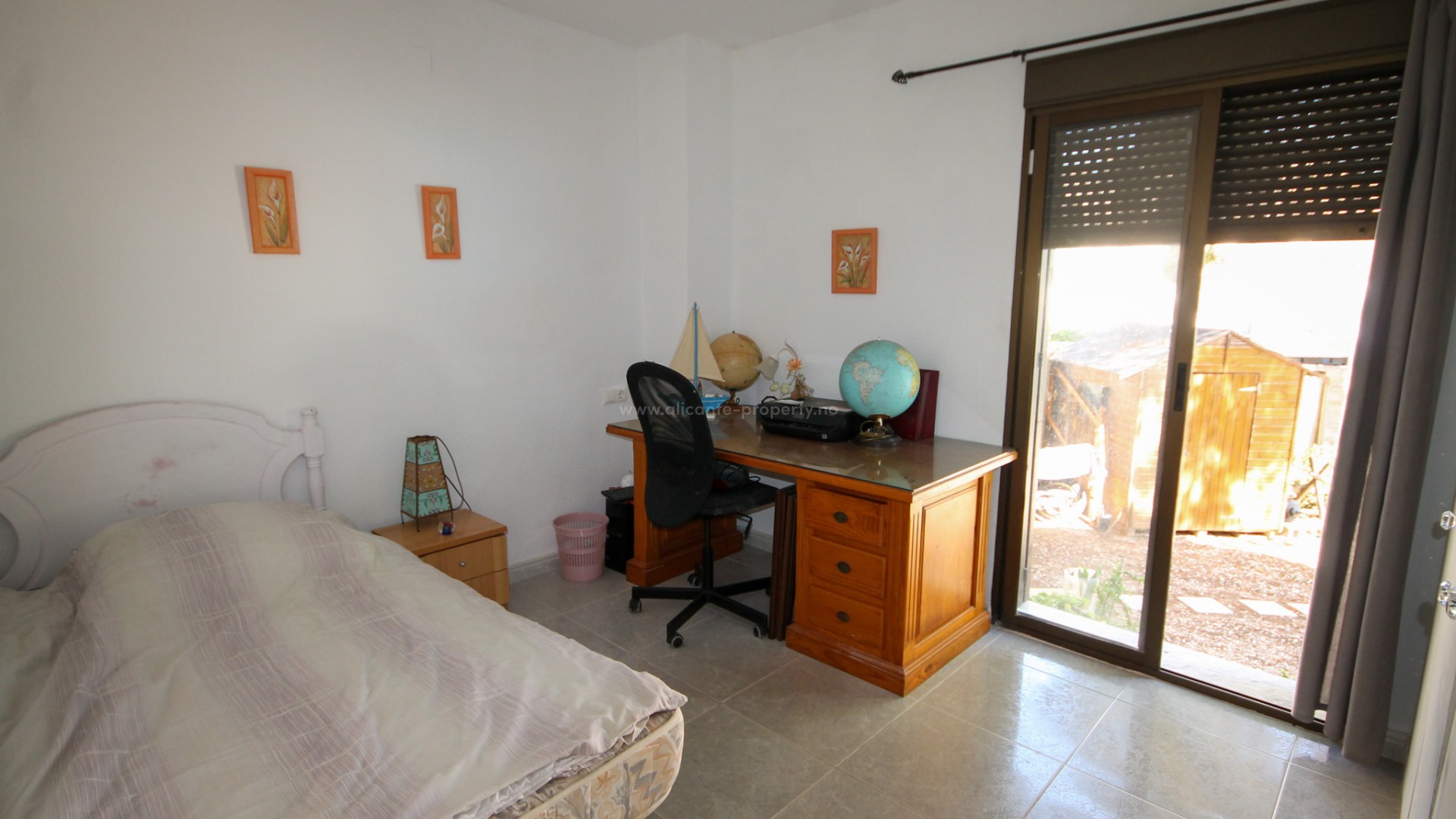 Situada en una calle tranquila, ofrecemos esta espaciosa villa con un alojamiento versátil. Esta villa, ya consolidada, ocupa una generosa parcela de 800 m², está rodeada de árboles y ofrece vistas a jardines paisajísticos. Al entrar al jardín, dos terrazas cubiertas a ambos lados de la casa ofrecen una agradable sombra y lugares para relajarse y entretenerse. Hay un amplio salón con estufa de leña que conduce al comedor, que se encuentra junto a una espaciosa cocina y lavadero. Junto al salón hay un pasillo. Esta sala circular, actualmente utilizada como zona de lectura, cuenta con un aseo. Dos escaleras parten de esta sala. Una conduce a la planta superior, al dormitorio principal con baño en suite. La otra escalera baja a un segundo gran salón con puertas que dan a la piscina. Justo al lado del salón hay un recibidor que da acceso a cuatro dormitorios dobles y dos baños. También hay una gran habitación, actualmente utilizada como sexto dormitorio. Esta habitación tiene acceso directo a un amplio trastero. En el exterior, en la parte trasera de la villa, hay un camino de entrada con espacio para aparcar varios coches. La piscina tiene espacio para tumbonas y muchos árboles maduros. Esta villa, que ya es bastante antigua, necesita algunas reformas, pero en nuestra opinión, la inversión merece la pena. También dispone de aire acondicionado parcial, alarma y calefacción central de gasóleo. Se vende amueblada. Está a poca distancia a pie de todos los servicios y a solo 10 minutos de las playas de Orihuela Costa. La Plaza de Villamartín está a 5 minutos en coche.