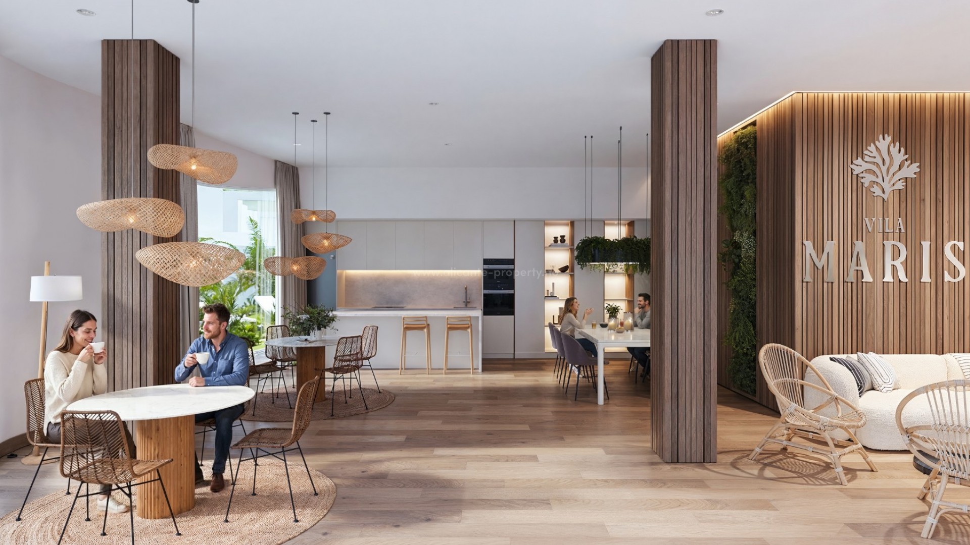 Vila Maris · Vivir frente al Mediterráneo Vila Maris es un exclusivo complejo residencial en primera línea de mar en Villajoyosa, uno de los enclaves más privilegiados de la Costa Blanca. Un proyecto donde la arquitectura contemporánea se integra con el entorno natural, creando hogares pensados para disfrutar de la luz, la brisa y la esencia mediterránea en cada rincón. Las viviendas, de 2, 3 y 4 dormitorios, se adaptan a diferentes estilos de vida: desde elegantes bajos con jardín privado y vista al mar, hasta espectaculares áticos con amplias terrazas panorámicas. Todas ellas han sido diseñadas para ofrecer confort, amplitud y bienestar, conectando interior y exterior de manera armoniosa. Un resort privado junto al mar Vivir en Vila Maris es disfrutar de un estilo de vida único, rodeado de comodidades pensadas para tu bienestar durante todo el año: Piscinas exteriores rodeadas de jardines mediterráneos. Piscina infinity en la cubierta del edificio, con impresionantes vistas al mar, accesible por ascensor. Gimnasio equipado con tecnología de última generación y wellness center con sauna. Espacio social gourmet con zonas ideales para teletrabajo. Áreas ajardinadas y senderos para pasear y relajarse. Zona de yoga y espacios destinados al bienestar. Zona infantil y espacios familiares seguros. Área para limpieza de mascotas, bicicletas y material de playa. Parking privado y trasteros para mayor comodidad. Cada espacio ha sido cuidadosamente diseñado para fomentar un estilo de vida activo, saludable y exclusivo, con el Mediterráneo como protagonista. Un hogar que habla de ti En Vila Maris, cada vivienda puede personalizarse para adaptarse a tu estilo. Ponemos a tu disposición un servicio de personalización de acabados con diferentes opciones en materiales, colores y texturas. Tu hogar reflejará tu personalidad, sin renunciar a la coherencia estética y la calidad que define todo el conjunto.