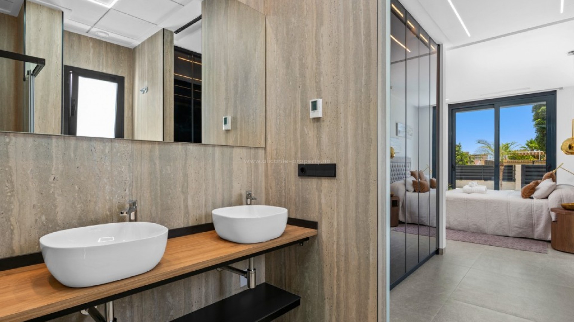 Esta villa de nueva construcción podría ser tu sueño hecho realidad: moderna y cerca de todos los servicios.Cuenta con tres amplios dormitorios con armarios empotrados, tres baños y una gran terraza. Todos los acabados son de alta calidad y presentan un diseño contemporáneo. La casa cuenta con puerta de seguridad, un jardín completamente cuidado con terraza, persianas eléctricas, ventanas de doble acristalamiento, calefacción por suelo radiante y mucho más.La villa tiene una ubicación ideal: el aeropuerto de Alicante está a solo 20 minutos en coche. Hay una zona comercial con bares y tiendas cerca, y todos los servicios necesarios están a 5 minutos en coche, incluyendo colegios, un centro médico y varias tiendas.Esta villa de 220 m² se encuentra en una parcela de 500 m². La construcción finalizó a mediados de 2024. La villa se encuentra en una hermosa parcela esquinera con orientación sureste.Las características adicionales de la villa incluyen garaje, paneles solares, trastero, un jardín de baldosas con palmeras, aire acondicionado, lavandería y vistas a la vegetación. La villa está completamente amueblada y cuenta con un amplio lavadero.