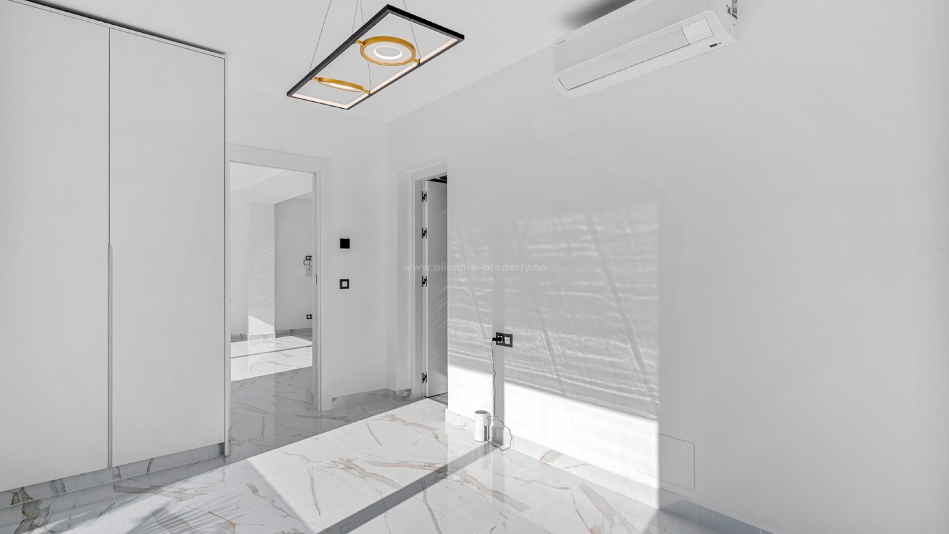Descubre la esencia del lujo mediterráneo en este espectacular chalet independiente totalmente reformado, ubicado en una de las calles más cotizadas de Ciudad Quesada, a un paso del centro y en una exclusiva parcela en esquina que garantiza privacidad, amplitud y un estilo de vida único. Esta propiedad combina diseño contemporáneo, eficiencia y confort absoluto: Vivienda 4 dormitorios amplios, todos con armarios hechos a medida y acabados premium.4 baños de diseño, 3 de ellos en suite, equipados con materiales de alta gama y una estética moderna impecable.Un gran salón-comedor diáfano que conecta con la cocina abierta de lujo, equipada con electrodomésticos BOSCH de última generación.Aire acondicionado individual por zonas, controlable desde el móvil mediante aplicación.Suelo radiante en toda la casa, ideal para el confort durante todo el año.Domótica integrada y persianas eléctricas para una experiencia de vida inteligente.Acabados exclusivos: azulejos, materiales y carpinterías de diseño, fusionando elegancia y funcionalidad. Exterior Impresionante piscina privada 5×10, con jacuzzi incorporado, perfecta para relajarse y disfrutar del clima excepcional de la Costa Blanca.Gran zona de lavandería independiente, totalmente equipada con lavadora y secadora.Un entorno exterior pensado para el ocio, la privacidad y la vida al aire libre. Este chalet representa una oportunidad única para quienes buscan una vivienda de alto nivel en uno de los enclaves más demandados de Quesada, combinando tecnología, estilo y comodidad en un entorno privilegiado.